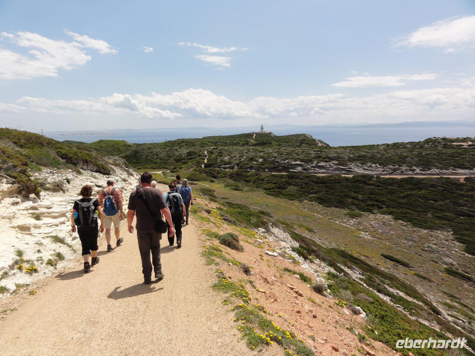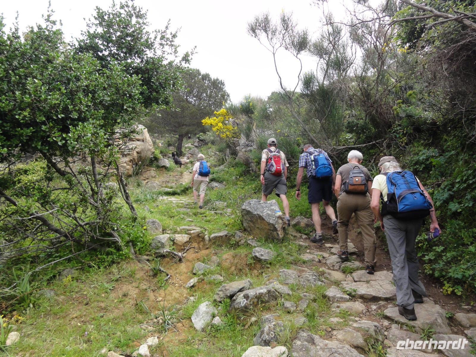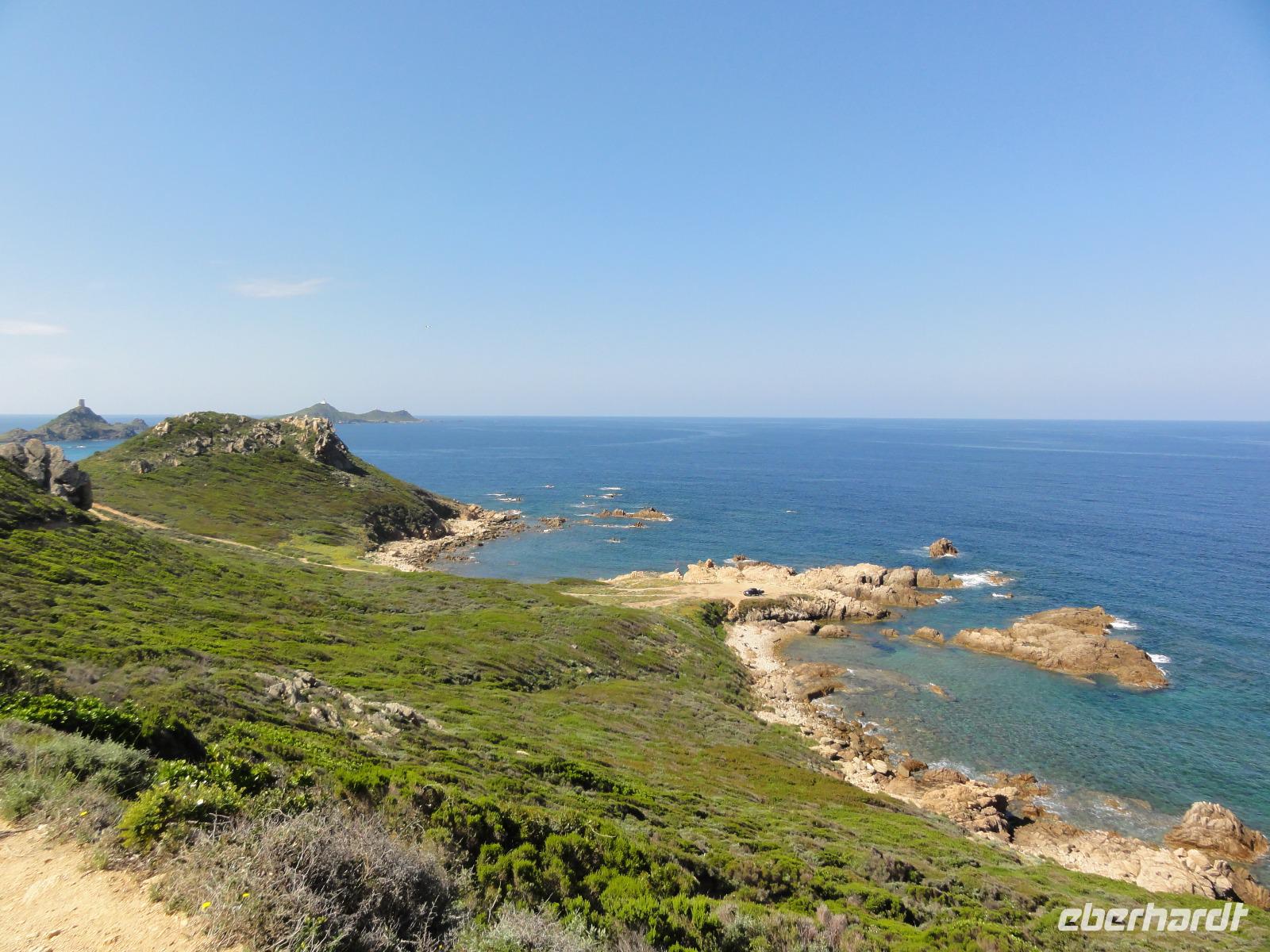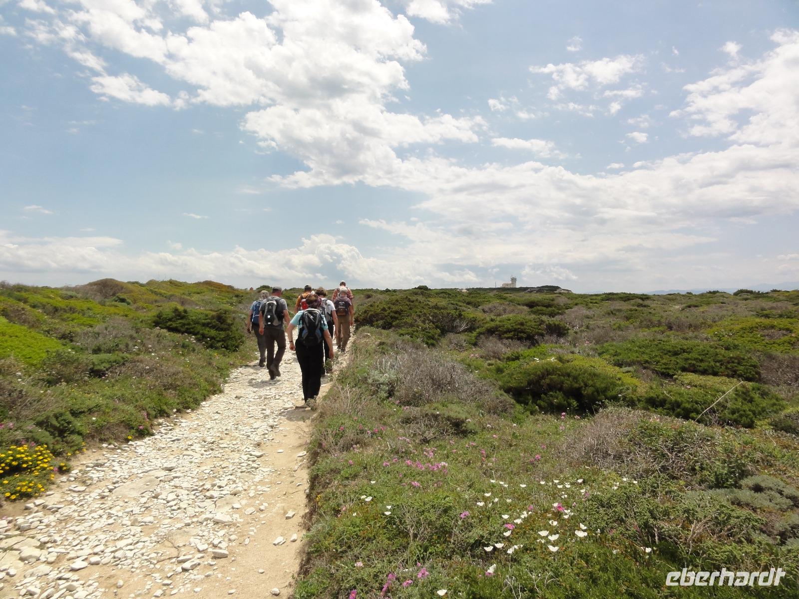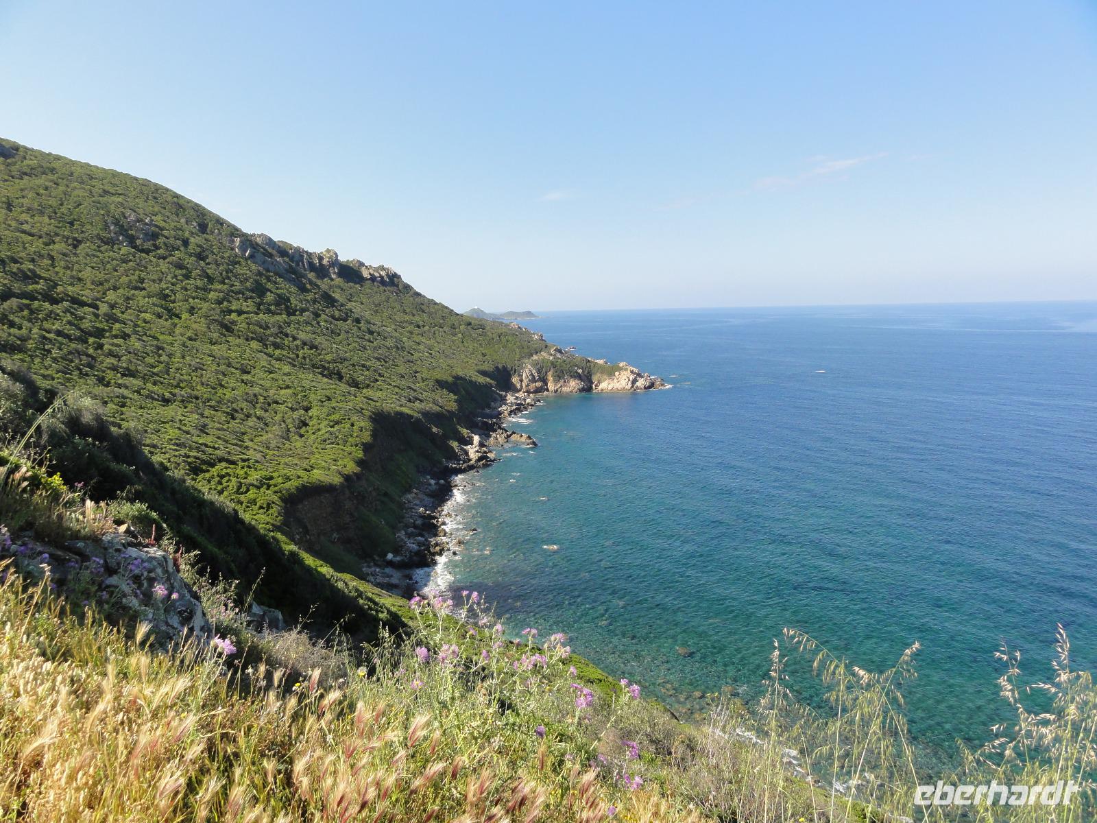 Der Tag beginnt heute um 07:00 Uhr bei einem Frühstück mit Blick auf das Meer. Wir stärken uns bei leckeren Croissants und frisch gepressten Orangensaft. Nun begrüßen wir unseren Yann, der uns die Insel in der kommenden Woche näher zeigen wird. Die Koffer sind gepackt und wir checken aus. Unser Busfahrer Eric holt uns 08:00 Uhr ab und Chantal wünscht uns eine schöne Wanderwoche. Nun fahren wir nach Calvi. Auf dem Weg dorthin halten wir an einem Supermarkt und decken uns mit Wasser, Brot und Obst ein. Angekommen in Calvi wandern wir die Küste entlang durch die duftende Macchia und haben einen fabelhaften Blick auf den Leuchtturm der „Revellata". Die dominierende Pflanze in der Macchia, vor allem in Küstennähe, ist im Mai die Zistrose. Sie blüht weiß und rosa, bringt das Buschwerk zum Leuchten und ist auch noch Namensgeber der Macchia. Denn Zistrose heißt auf korsisch „mucchiu". Die wohl prägendste Pflanze für den Geruch der Macchia ist die Immortelle, das "Currykraut". Durch das Trocknen dieser Pflanze behält sie ihre Farbe, duftet auch nach 10 Jahren noch und erhielt deshalb ihren Namen „Die Unsterbliche". Auch Mittelmeerstrohblume genannt, schmückt sie als goldene Sonne die Macchia. Nach unserer Wanderung haben wir noch knapp zwei Stunden für die Stadtbesichtigung mit der eindrucksvollen Zitadelle Calvis. Im Anschluss fahren wir mit dem Zug nach Algajola und beziehen unser Hotel „Serenada" für die nächsten zwei Nächte. Um 19:30 Uhr treffen wir uns zum Abendessen im Restaurant und lassen den ersten Wandertag bei einem Glas Wein ausklingen.