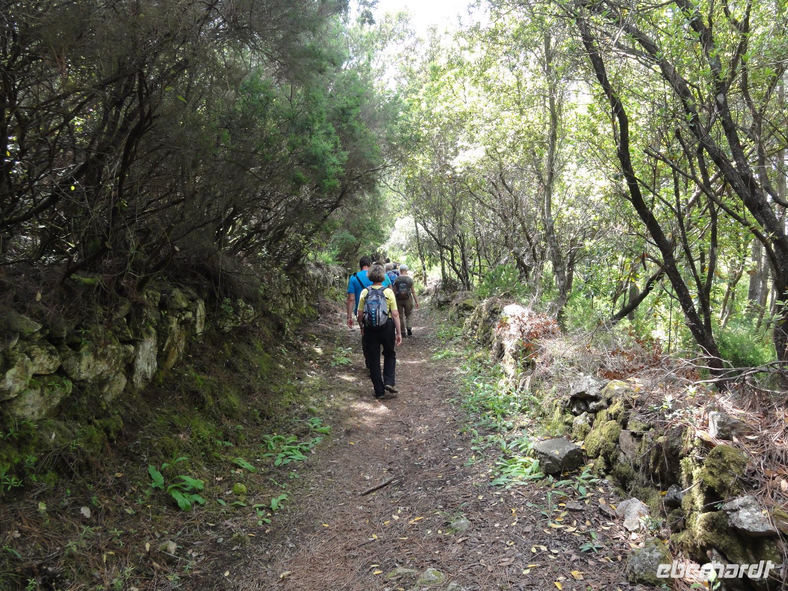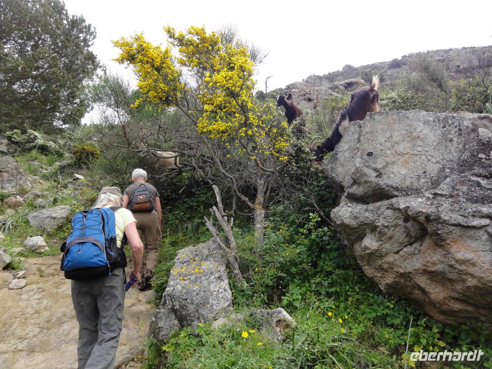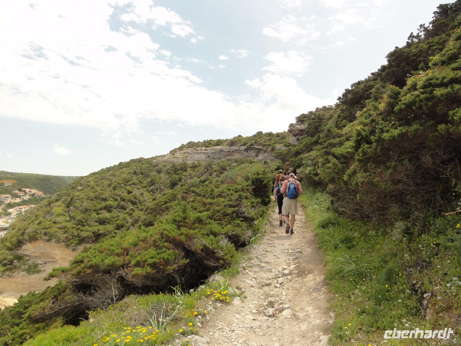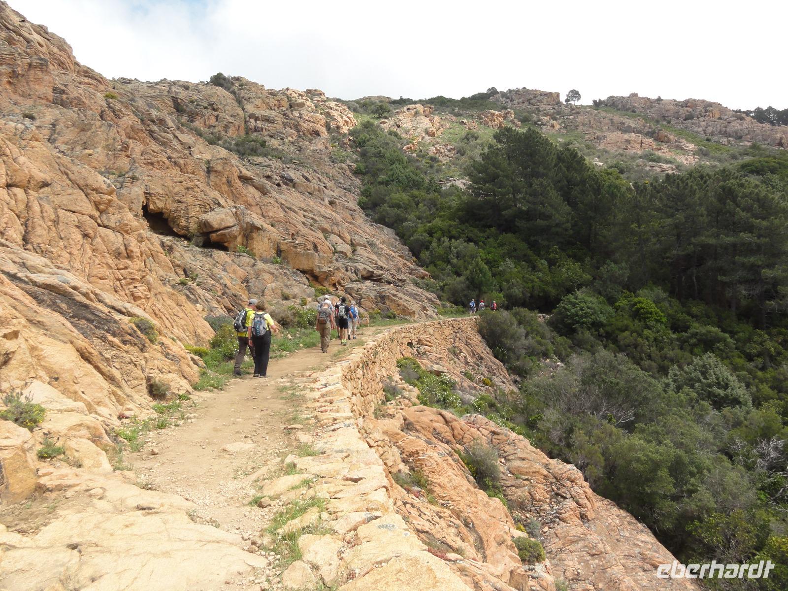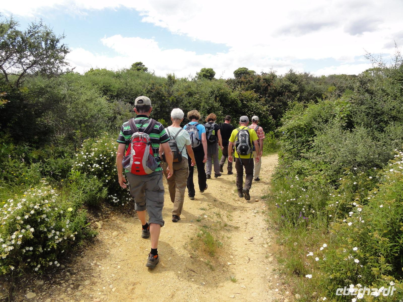 Der Tag beginnt heute um 07:00 Uhr bei einem Frühstück mit Blick auf das Meer. Wir stärken uns bei leckeren Croissants und frisch gepressten Orangensaft. Nun begrüßen wir unseren Yann, der uns die Insel in der kommenden Woche näher zeigen wird. Die Koffer sind gepackt und wir checken aus. Unser Busfahrer Eric holt uns 08:00 Uhr ab und Chantal wünscht uns eine schöne Wanderwoche. Nun fahren wir nach Calvi. Auf dem Weg dorthin halten wir an einem Supermarkt und decken uns mit Wasser, Brot und Obst ein. Angekommen in Calvi wandern wir die Küste entlang durch die duftende Macchia und haben einen fabelhaften Blick auf den Leuchtturm der „Revellata". Die dominierende Pflanze in der Macchia, vor allem in Küstennähe, ist im Mai die Zistrose. Sie blüht weiß und rosa, bringt das Buschwerk zum Leuchten und ist auch noch Namensgeber der Macchia. Denn Zistrose heißt auf korsisch „mucchiu". Die wohl prägendste Pflanze für den Geruch der Macchia ist die Immortelle, das "Currykraut". Durch das Trocknen dieser Pflanze behält sie ihre Farbe, duftet auch nach 10 Jahren noch und erhielt deshalb ihren Namen „Die Unsterbliche". Auch Mittelmeerstrohblume genannt, schmückt sie als goldene Sonne die Macchia. Nach unserer Wanderung haben wir noch knapp zwei Stunden für die Stadtbesichtigung mit der eindrucksvollen Zitadelle Calvis. Im Anschluss fahren wir mit dem Zug nach Algajola und beziehen unser Hotel „Serenada" für die nächsten zwei Nächte. Um 19:30 Uhr treffen wir uns zum Abendessen im Restaurant und lassen den ersten Wandertag bei einem Glas Wein ausklingen.