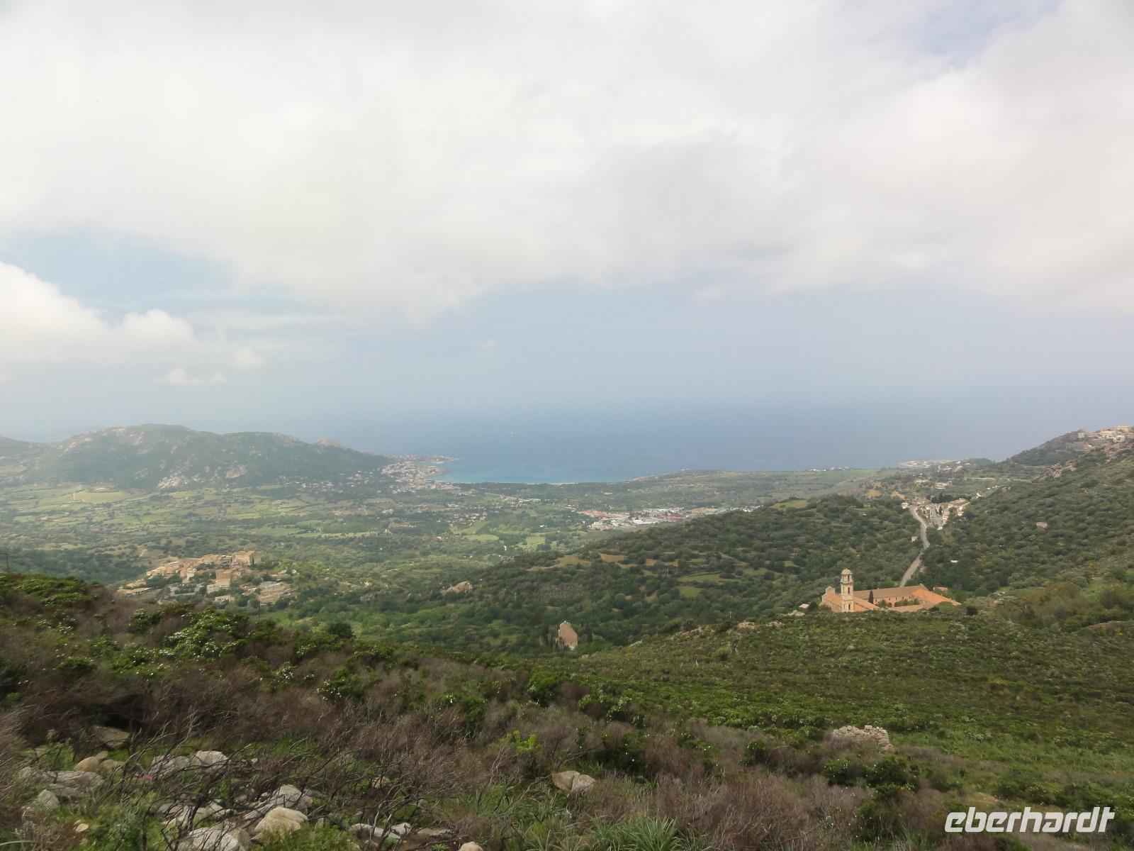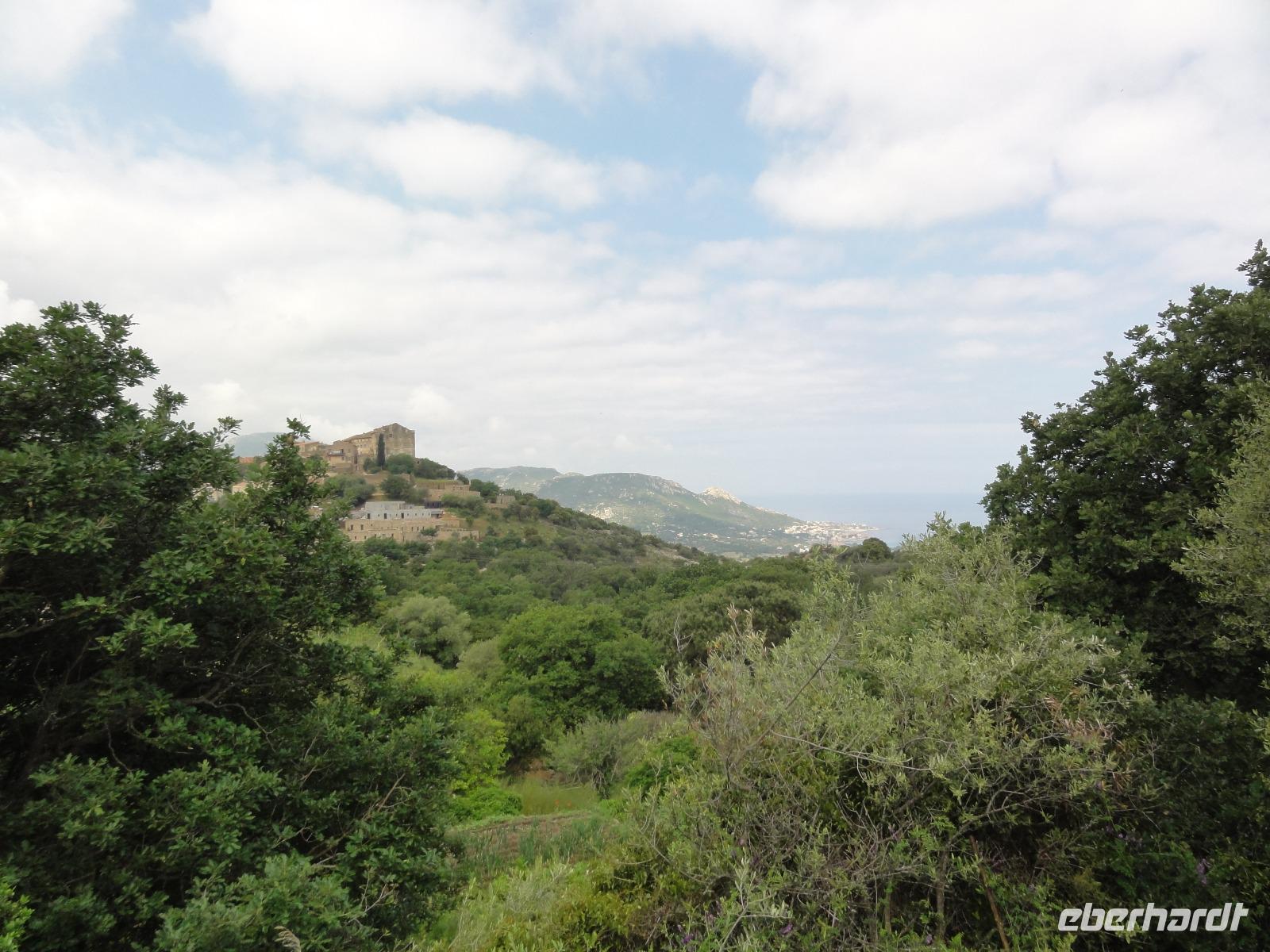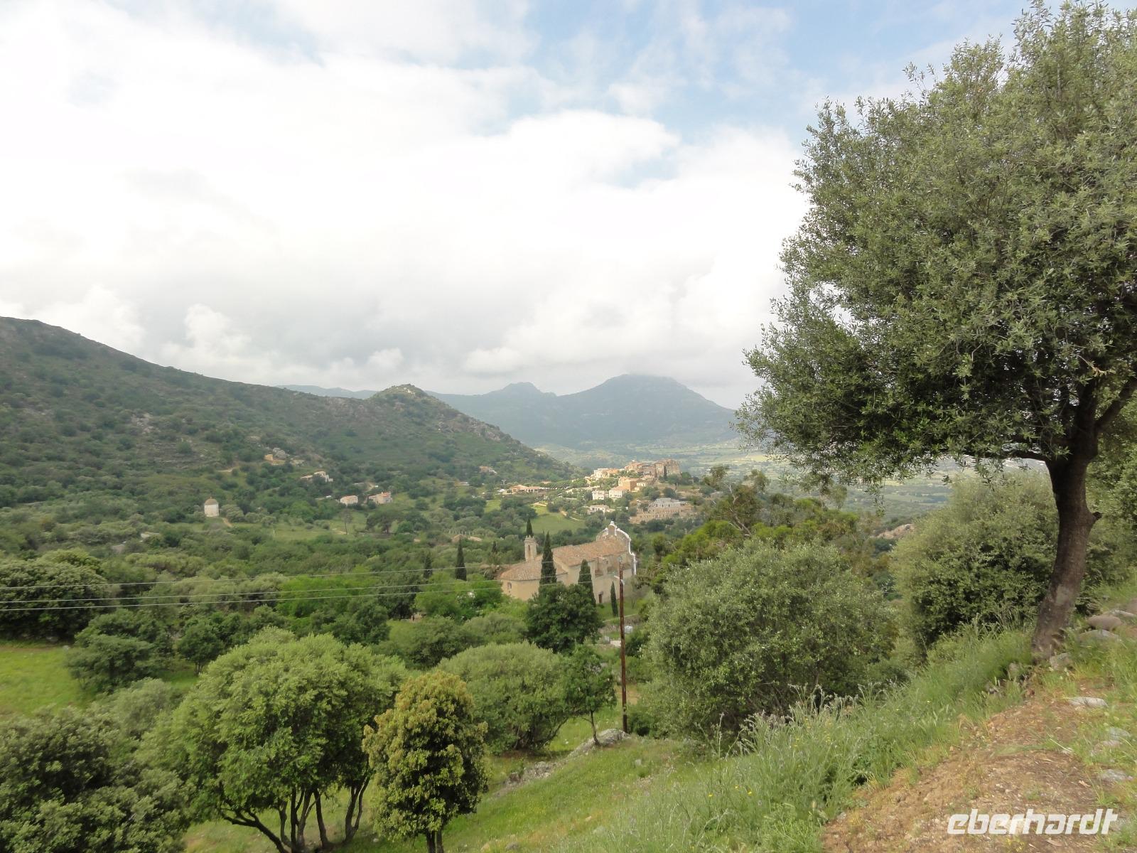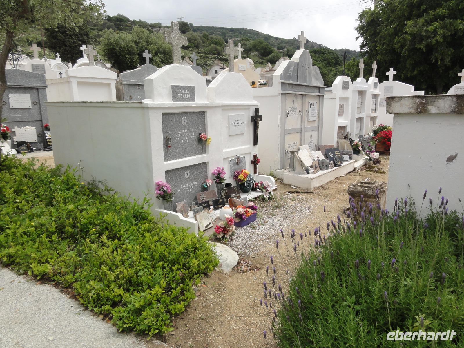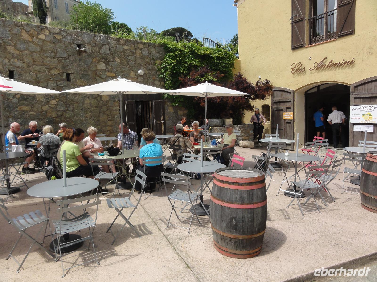 Nach dem Frühstück fahren wir hinauf zum Dorf Corbara, füllen unsere Wasservorräte an einer der vielen Quellen auf und wandern nach Pigna, von dort aus haben wir einen wundervollen Panoramablick auf die Bucht und die „Revellata" mit Leuchtturm. Nach einem kurzen Stadtspaziergang in Pigna wandern wir hinauf zum „Adlernest" Sant'Antonino vorbei an „Notre-Dame de Lazio" und dem Nonnenkloster „Couvent de Corbara" genießen wir eine Limonade aus frisch gepressten Zitronen bei Clos Antonini. Ganz schon sauer... Aber sauer macht ja bekanntlich lustig... :-) Nach dem Mittag fährt uns Eric nach L'Île-Rousse, mit einem kurzen Zwischenstopp am Friedhof in Aregno.