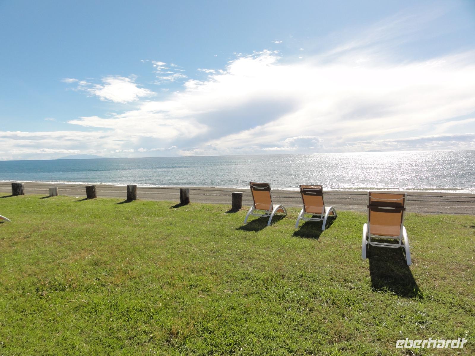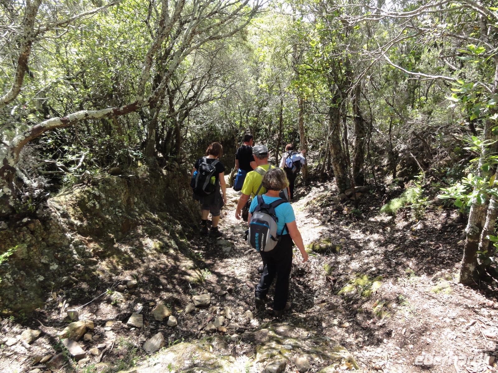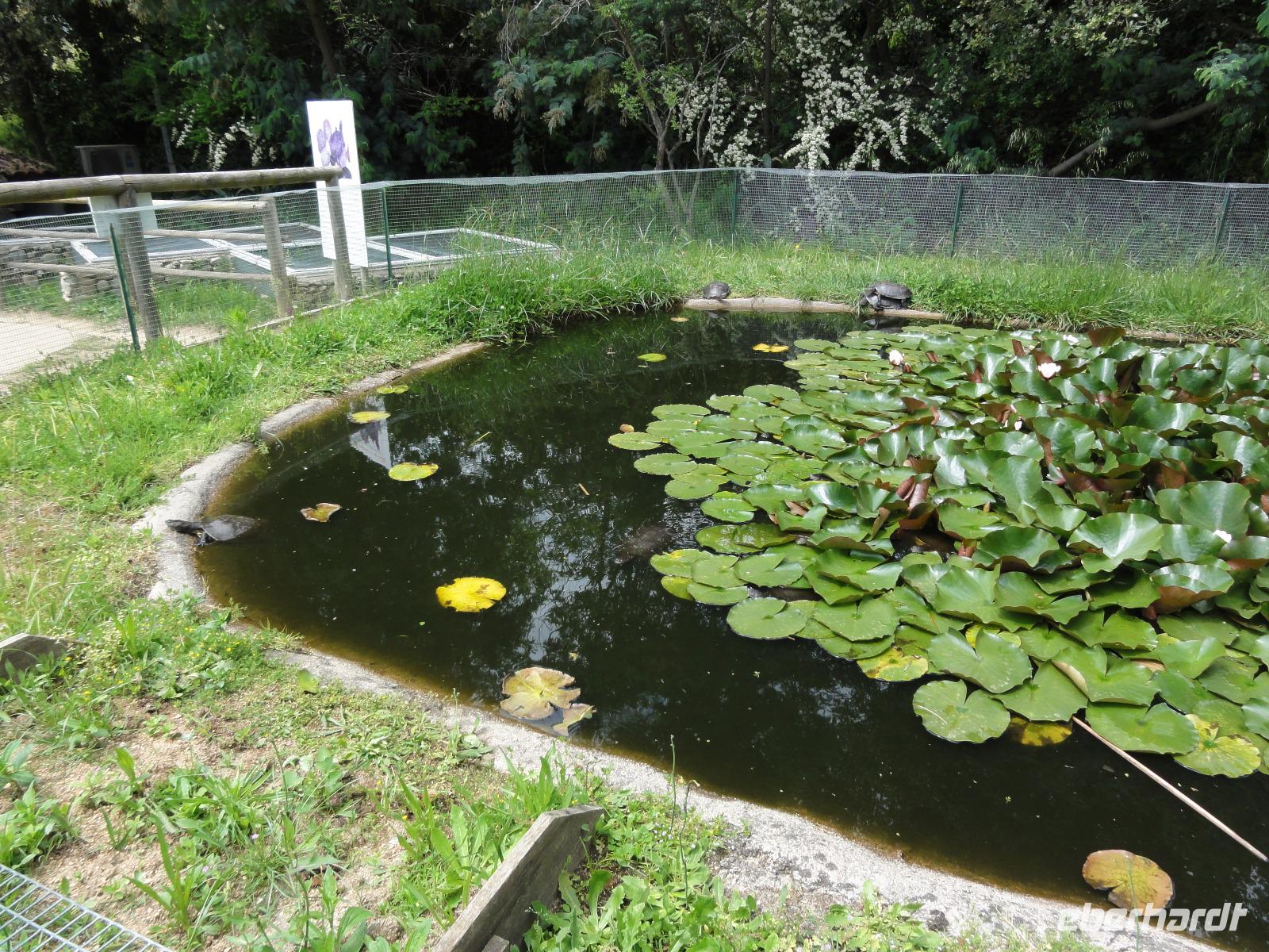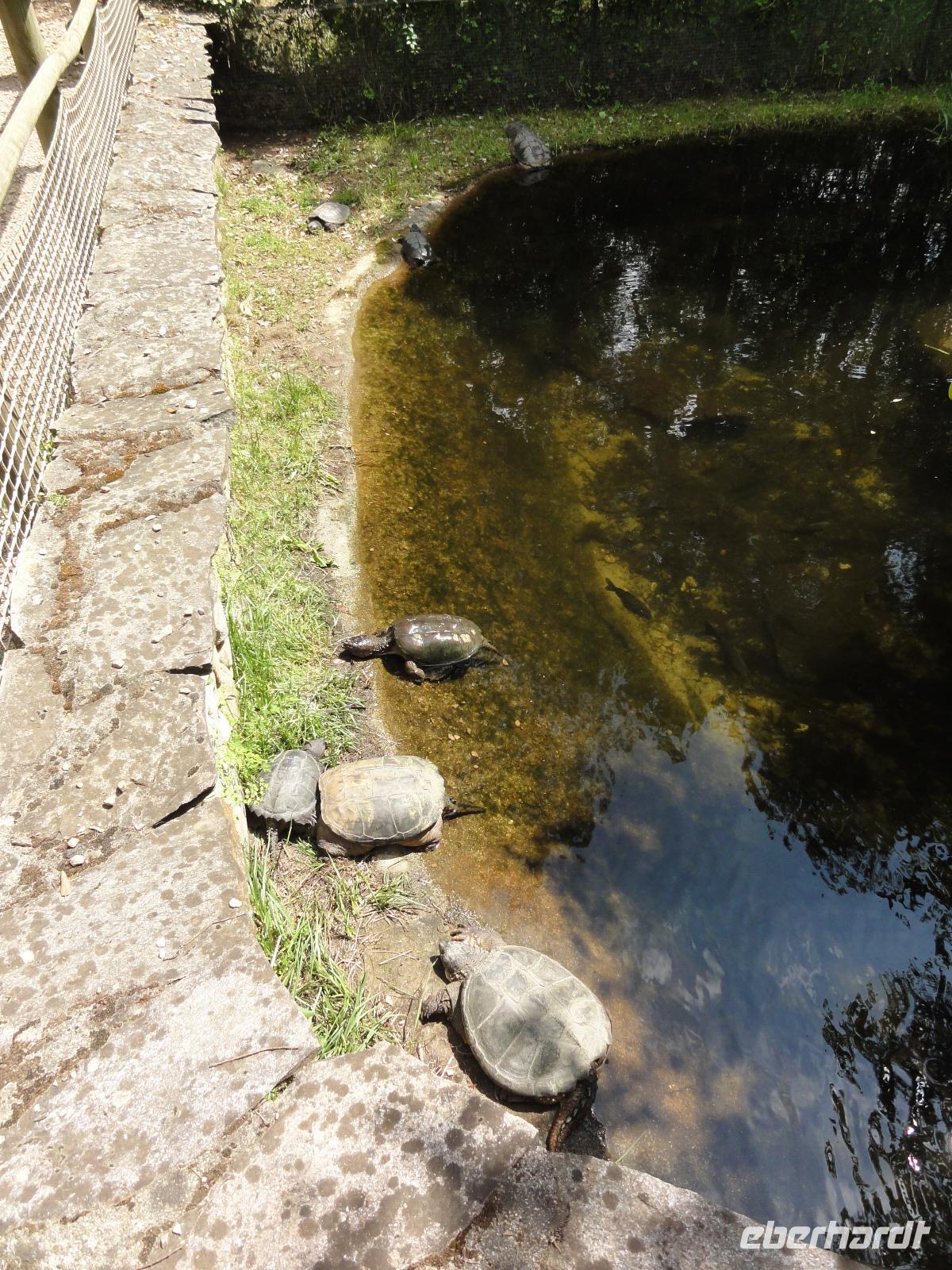 Nach dem Frühstück fahren wir ein kurzes Stück in eine Bucht Ajaccios und beginnen am Strand die Wanderung zum „Tour de la Parata". Ziel ist der Wachturm mit Blick auf die „Îles Sanguinaires", die vier Blutinseln, am nördlichen Ende des Golf von Ajaccio. Der Name rührt von den farbenprächtigen Sonnenuntergängen her. Oft verschwindet die Sonne als blutroter Ball im Meer und taucht die bereits rötlichen Felsen in ein tiefes Rot, das die Inseln von der Küste aus wie Blutstropfen im Meer erscheinen lässt. Am Ende der Wanderung um 12:00 Uhr machen wir ein ausgedehntes Picknick im Pinienwald. Die gebogen Stämme der Bäume bieten uns einen fabelhaften Sitzplatz und Schatten zugleich. Im Anschluss holt uns Eric ab und fährt uns in den Schildkrötenpark „A Cupulatta", hier sind über 150 verschiedene Schildkrötenarten untergebracht und man trifft auf exotische Bewohner wie die Riesenschildkröten von den Seychellen und Galapagos-Inseln. Das „wilde Treiben" der Schildis treibt uns ein Lächeln ins Gesicht :-)