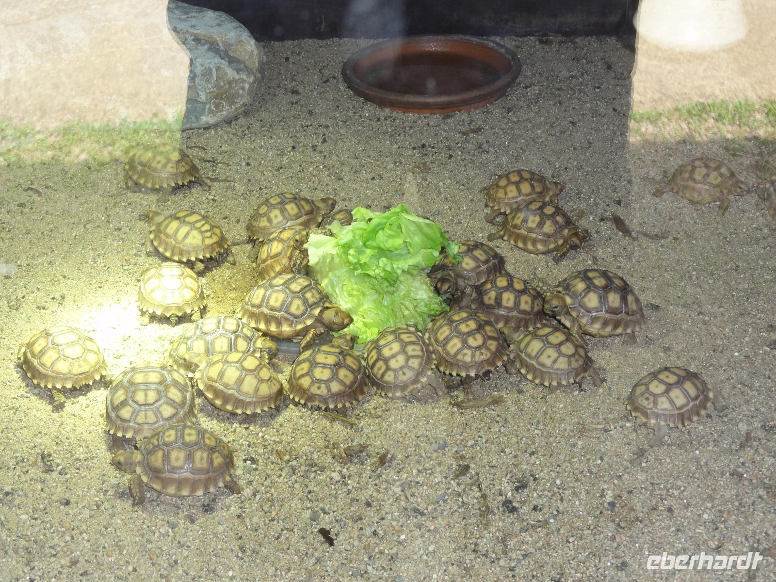 Ein besonderes Highlight ist die eigene Aufzuchtstation des Parks, hier können wir hinter Glas die nur wenigen Tage alten Schildkröten aus nächster Nähe betrachten.