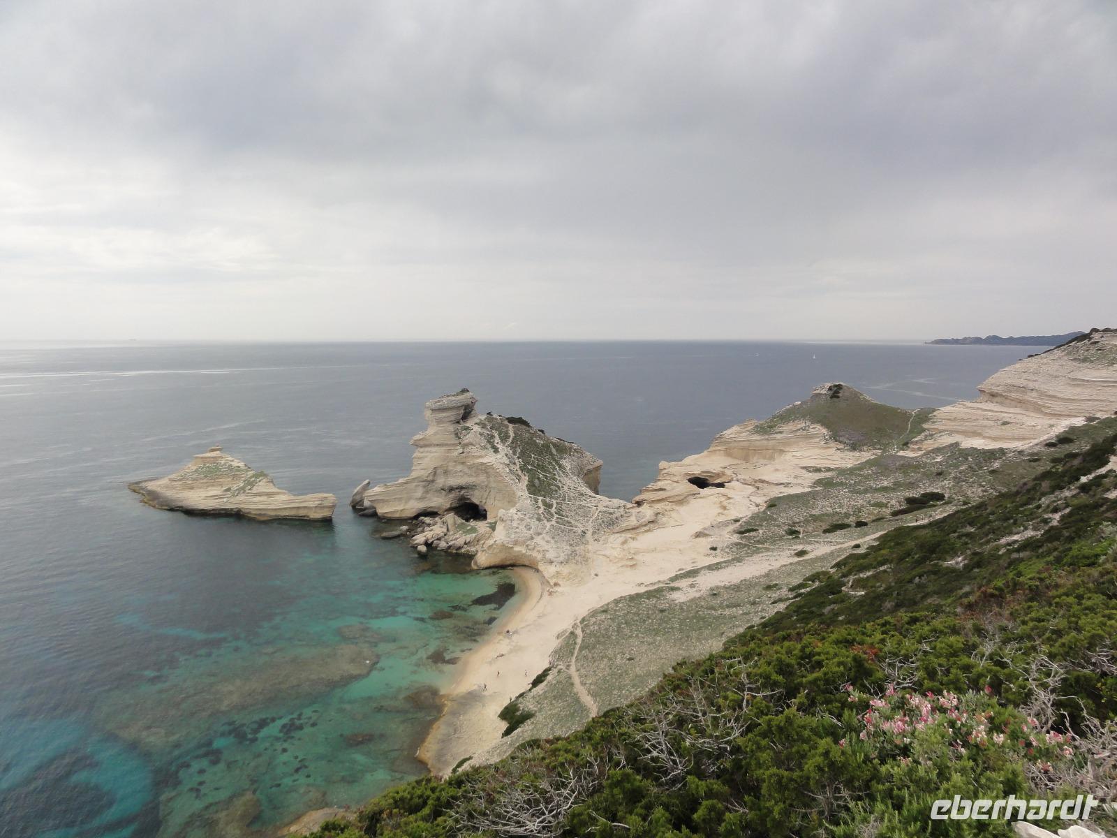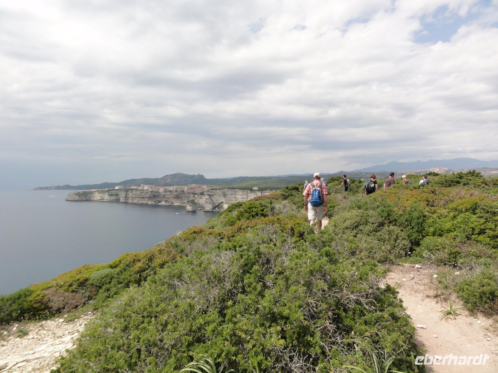 Heute heißt es wieder Koffer packen und auschecken. Wir verlassen Ajaccio und fahren an die Südspitze Korsikas, nach Bonifacio, bekannt für seinen viel befahrenen Hafen und die auf einem Felsen gelegene mittelalterliche Zitadelle. Auf dem Weg dahin lassen wir uns von korsischer Musik verzaubern und machen einen kurzen Fotostopp in „Roccapina". Hier bestaunen wir die Felsen der Natur, welche aussehen wie ein Löwe mit Krone „der König der Löwen", ein Elefant oder ein Drache. In Bonifacio angekommen starten wir unsere Wanderung auf den 80 m hohen Kalkfelsen entlang der Steilküste bis hin zum „Capo Pertusato". Von hier aus können wir Sardinien sehen, aber auch wie sich der Himmel immer weiter zuzieht und es schon über dem Meer regnet. Wir beenden unser Picknick und machen uns auf den Rückweg in die Zitadelle Bonifacios. Leider meint es das Wetter heute gar nicht gut mit uns, und es fängt an zu regnen. Wir werfen uns in regensichere Kleidung und haben noch zwei gute Stunden für die Stadtbesichtigung in Bonifacio. Danach fahren wir nach Porto-Vecchio und checken ins „Best Western Hotel Alcyon" ein. Nach einem kurzen Spaziergang hinauf zur Kirche, nehmen wir Platz im Restaurant „Le Shanka" wo wir zu Abend essen.