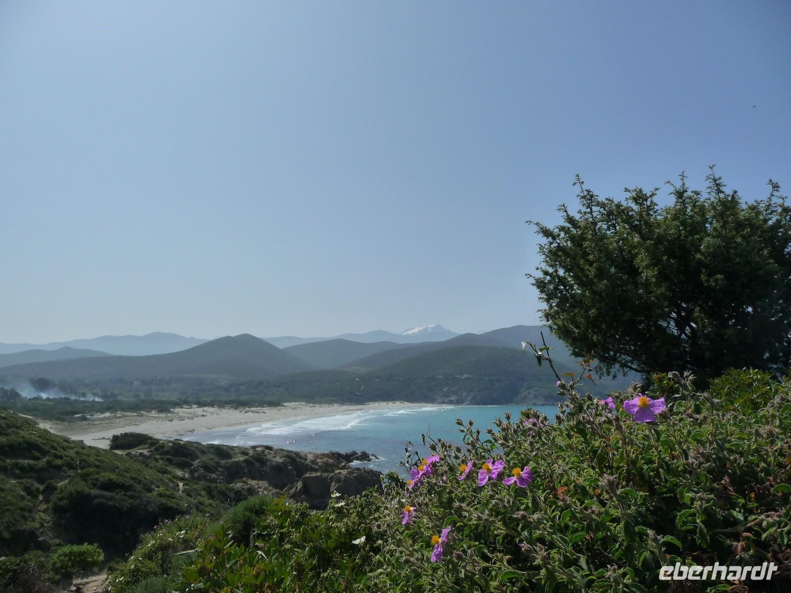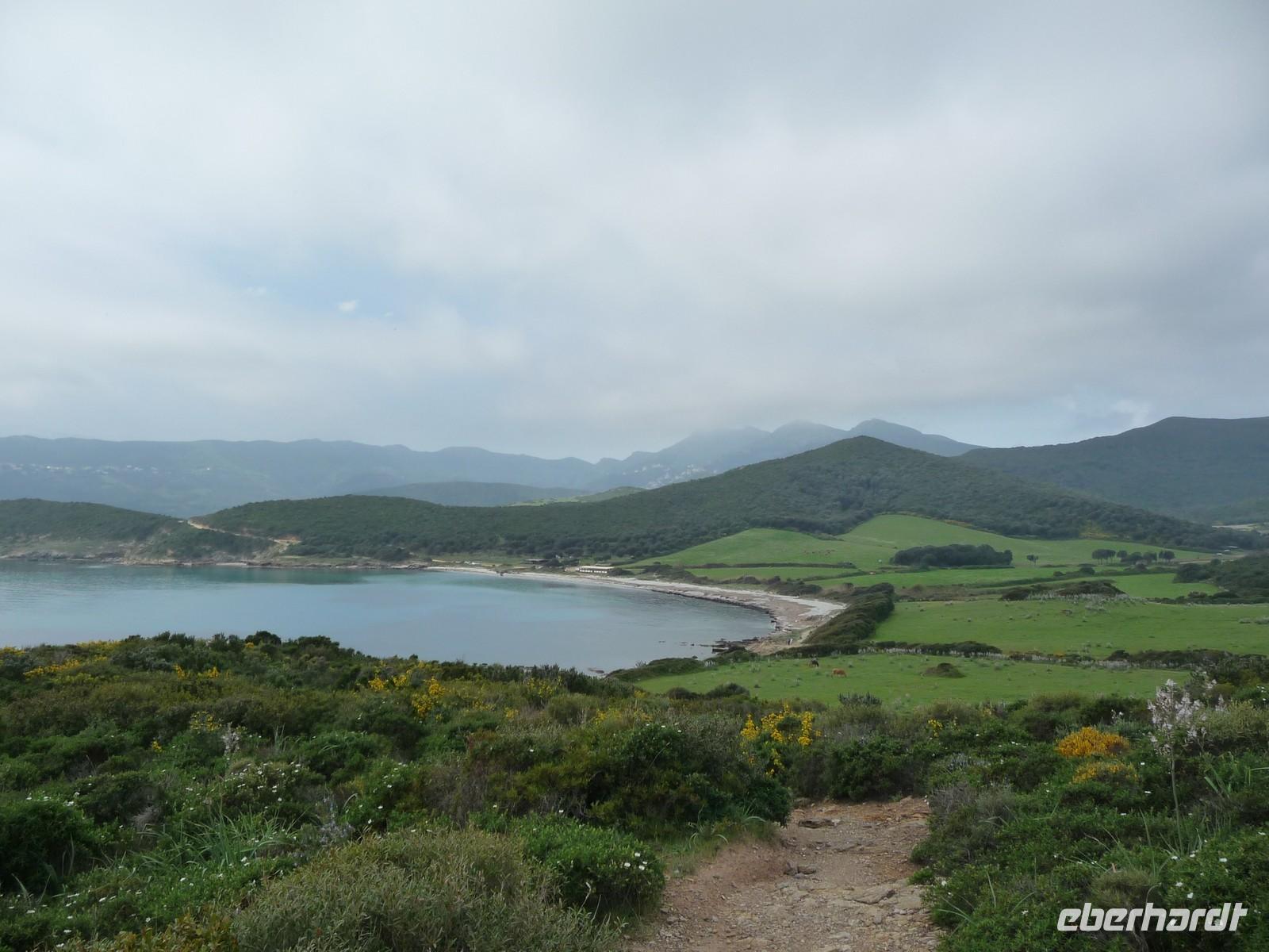 Nach dem Frühstück verlassen wir das Hotel gegen 08:00 Uhr, fahren über Bastia hinauf in die Berge bis zum Col de Teghime. Hier lohnt ein kurzer Fotostopp! Unsere Wanderung beginnt nahe Oligastro - zunächst geht es entlang von Weiden und schattigen Feldwegen bis zu einer verlassenen Höhlenwohnung, dann weiter über das nackte Gestein und durch Macchiengelände. Schließlich erreichen wir den atemberaubend schönen und unverbauten Strand von Ostriconi. Unsere Wanderung führt uns weiter entlang der Küste Richtung Norden. In einer ruhigen und menschenleeren Bucht machen wir unser Mittagspicknick. In einem kleinen Bogen geht es wieder ein Stück ins Landesinnere zu einer Hausruine, in der früher vermutlich eine Schäferfamilie lebte. Der Rückweg geht zunächst eine steile Sanddüne hinauf und dann wieder hinab entlang der Küste bis zum Ostriconi-Strand. Eine gute halbe Stunde später erreichen wir unseren Begleitbus und gönnen uns eine kleine Kaffeepause. Auf der "Heimreise" zu unserem Hotel legen wir noch eine Pause im hübschen Örtchen St. Florent ein.