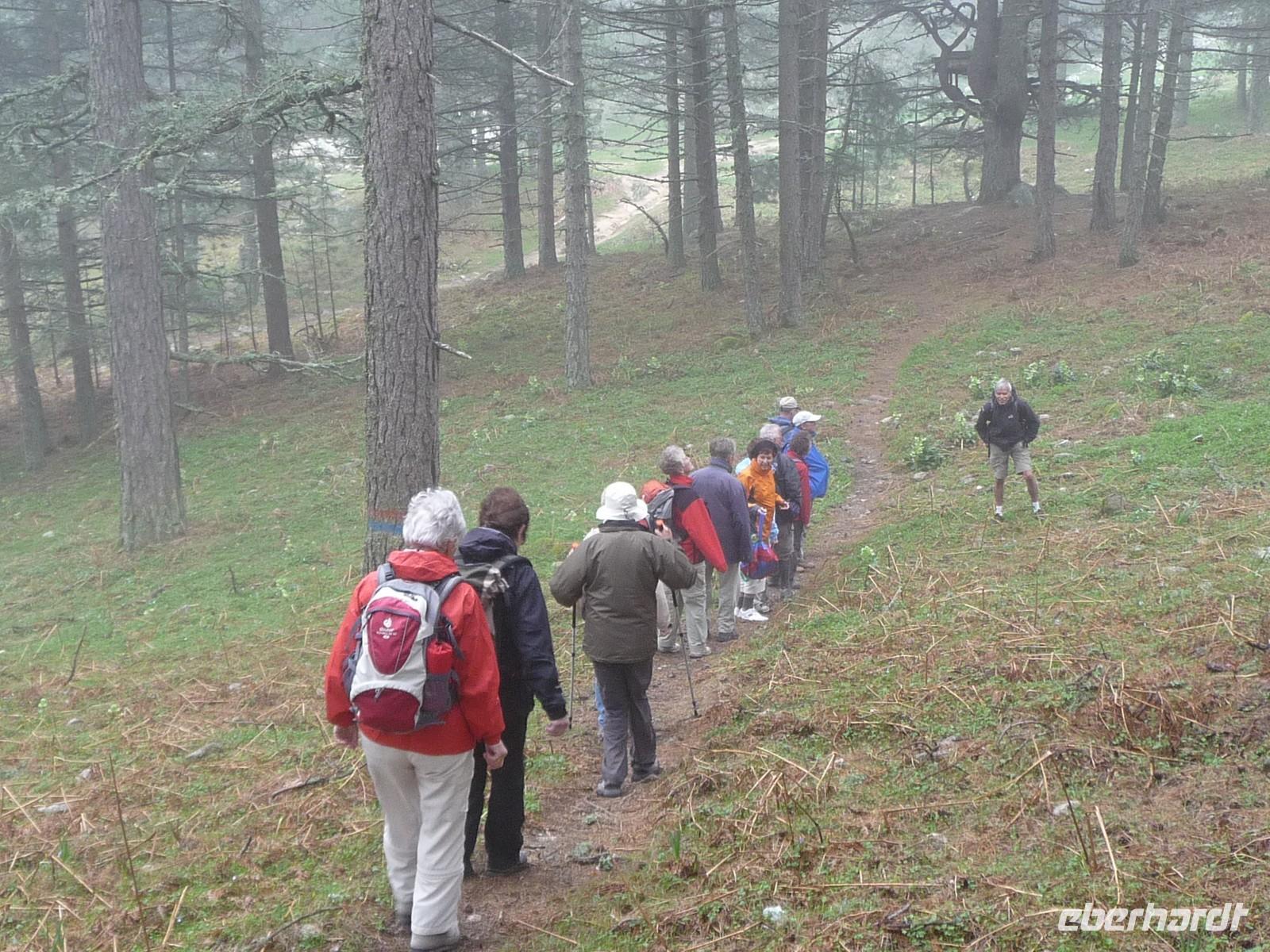 ca. 1240 m Höhe. Die Wolken hängen tief, es ist nebelig und mit nicht