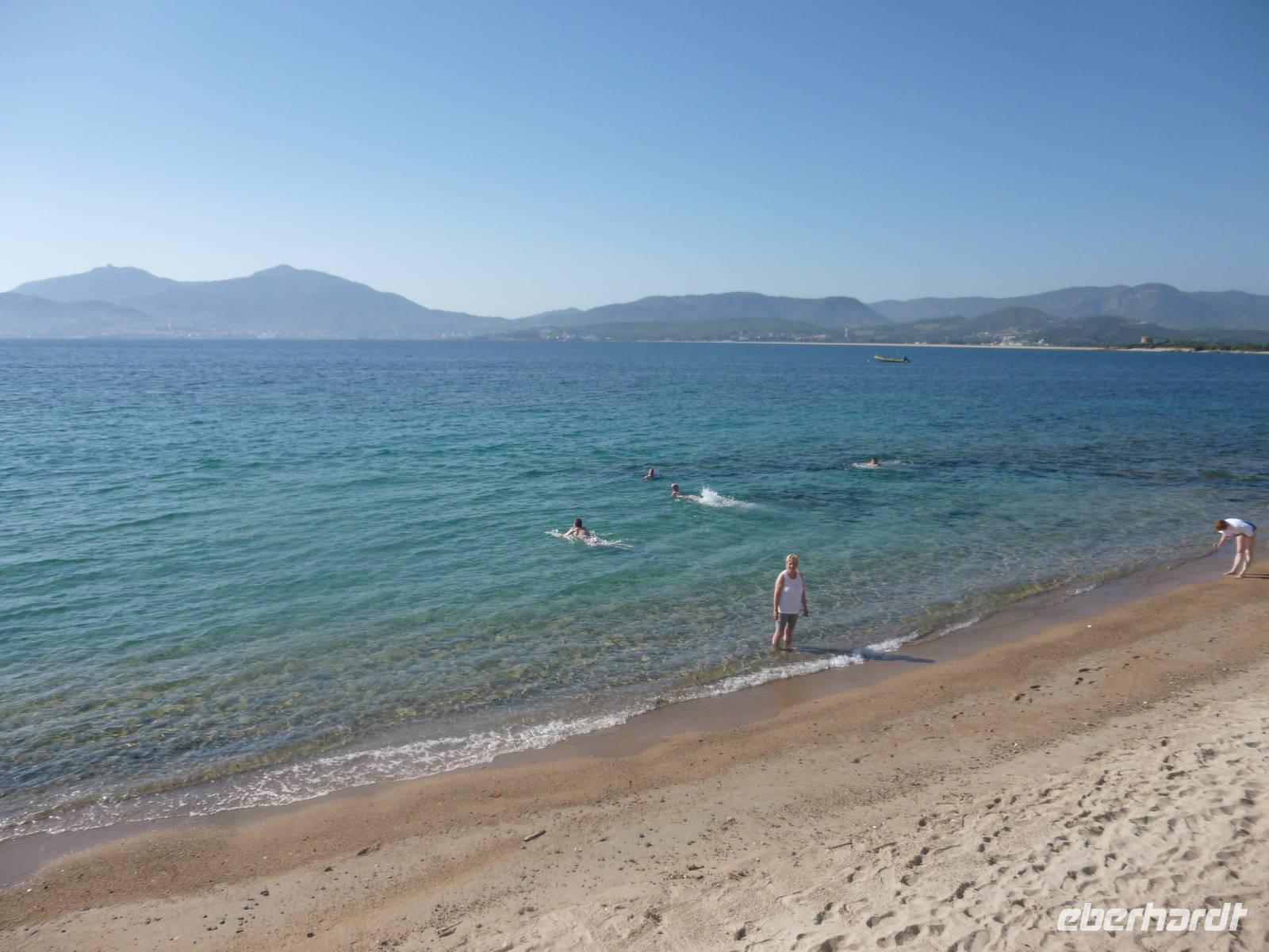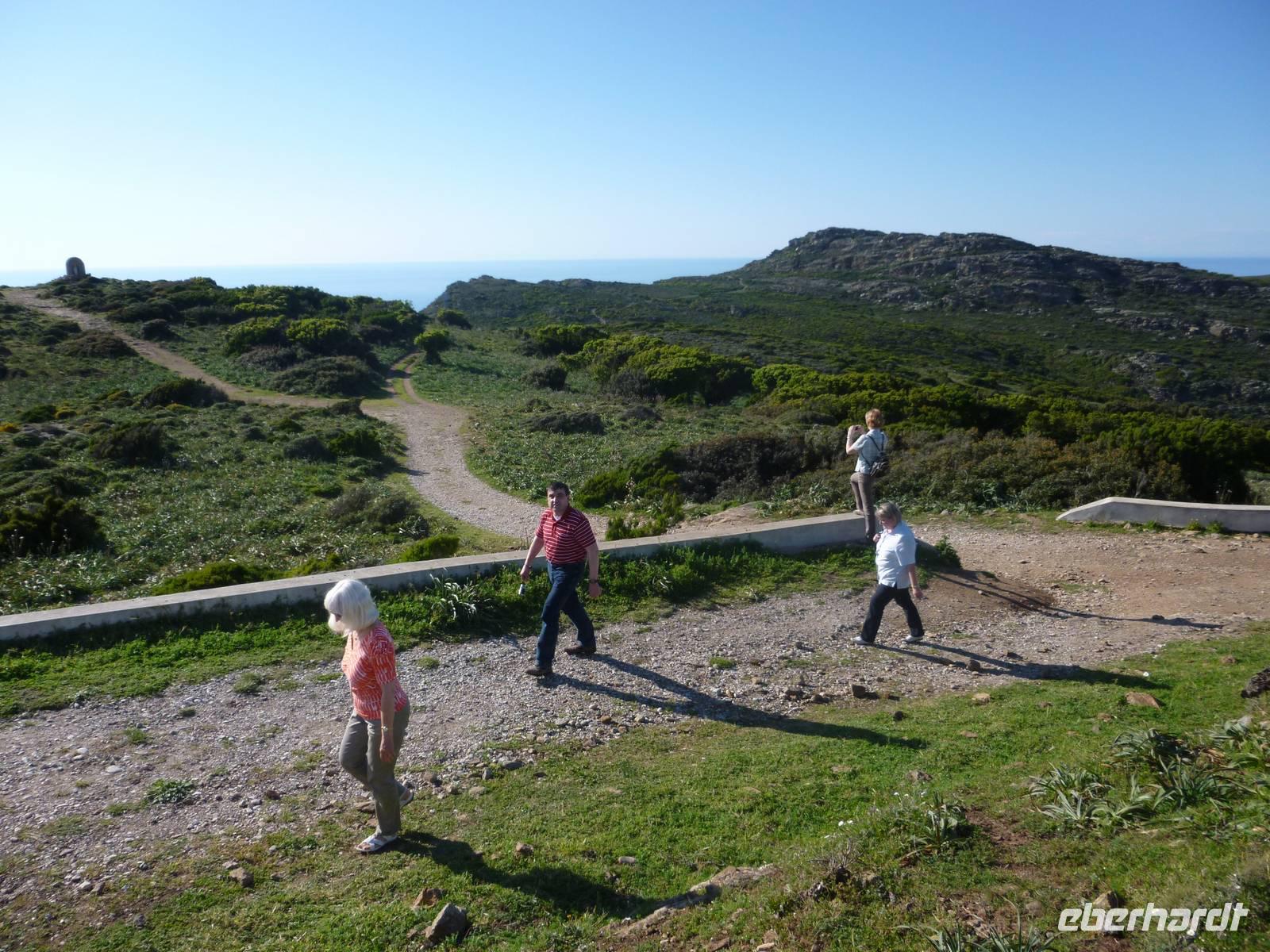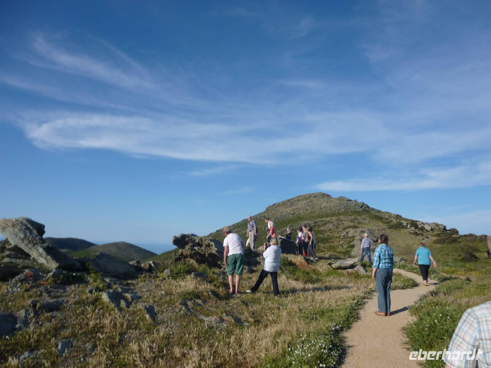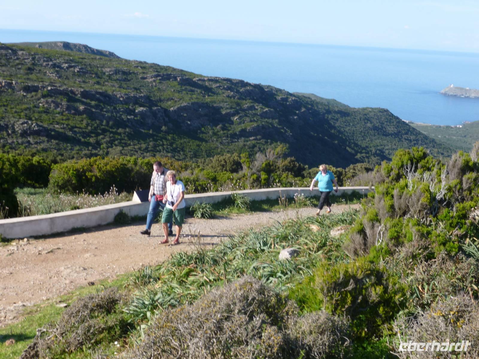 Nachdem sich alle Wasser und eine Kleinigkeit zu Essen im Supermarkt geholt hatten, starteten wir vormittags unsere erste Wanderung entlang des „Sentier des douaniers", eine wunderschöne Wanderstrecke im Norden des Cap Corse. Der gesamte alte „Zöllnerweg" verläuft von Macinaggio bis Centuri, also am äußersten Rand von Korsika. Wir liefen bis zur Kapelle Saint Marie und wieder zurück über Strände, vorbei an den „wilden Fenchel-Inseln", begleitet von unzähligen Macchia-Sträuchern und Resten kleiner antiker Bauten und einer traumhaften Aussicht. Am Nachmittag verkosteten wir zunächst eine typische korsische „charcuterie" (Wurstaufschnitt) und besuchten danach eine familiengeführte Käserei in Rogliano, wo uns die Schäferin Sandrine voller Stolz Ihre Schäferei und ihre Käserei präsentierte. Danach verwöhnte sie uns mit korsischem Käse und Wein und es herrschte tolle Stimmung.