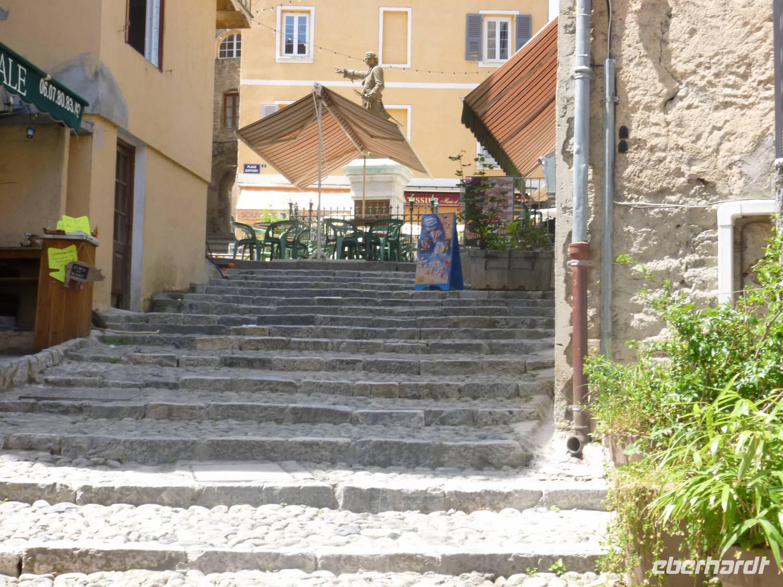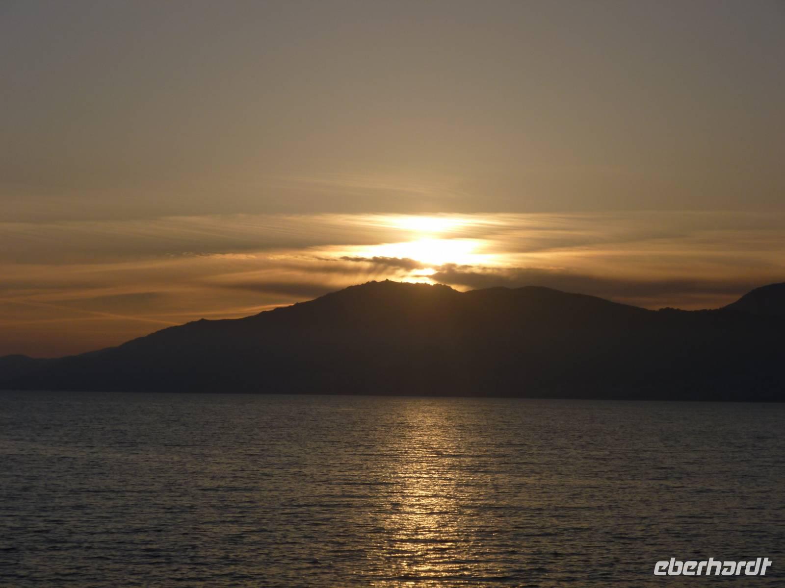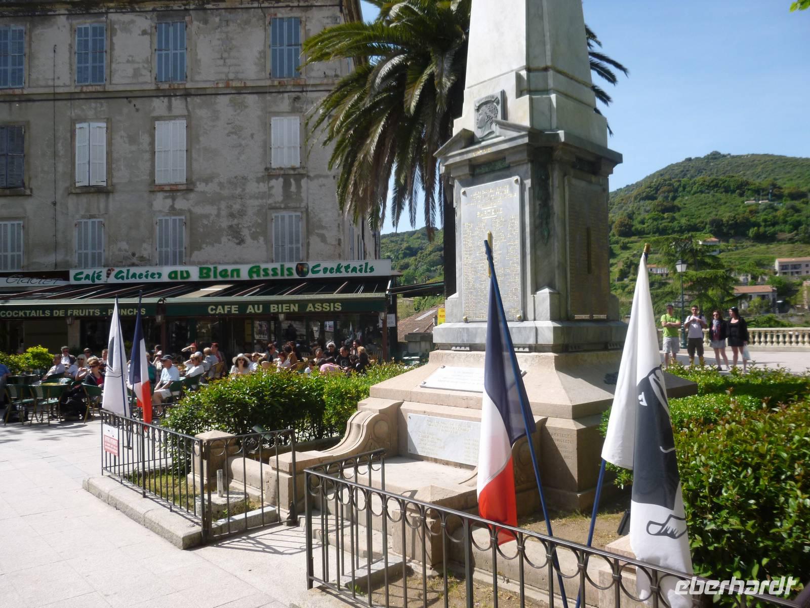 Erste Station der heutigen Strecke war Sartène, die „korsischste Stadt Korsikas". Typisch sind die engen verwinkelten Gassen der Altstadt mit schmalen und steilen Treppen sowie die hohen Häuser mit verwitterten Fassaden, die kleinen Festungen gleichen. Das Zentrum von Sartène ist der "Place de la Libération", wo Jahrhunderte lang blutige Kämpfe zwischen den einzelnen Stadtvierteln und den sich befehdenden Familien ausgetragen wurden. Der düstere Charakter der Altstadt verleiht dem Ort noch heute eine mittelalterliche Atmosphäre. Da heute der Tag des Sieges war, fand dort eine Gedenkfeier statt, der wir kurz beiwohnten. Weiter auf dem Weg besichtigten wir zunächst eine Weinkellerei, wo uns Melissa alles zeigte und wir leckeren korsischen Wein und andere Leckereien verkosteten, ehe wir Ajaccio, die Hauptstadt von Korsika entdeckten. Bei einer kleinen Busrundfahrt sahen wir die Statue des bedeutenden Sohn der Stadt, Napoléon Bonaparte, die schönen umgebenden Strände und Bergkette und die Inseln Sanguinaires. Aufgrund des Feiertages waren heute viele Geschäfte, Restaurants und Institutionen geschlossen, dennoch liefen wir zu Fuß noch ein wenig in die Altstadt. Am frühen Nachmittag erreichten wir das „Paradies" in Porticcio und quartierten uns dort ein. Das Meer, der Strand und ein wunderschöner Sonnenuntergang rundeten den Tag ab.