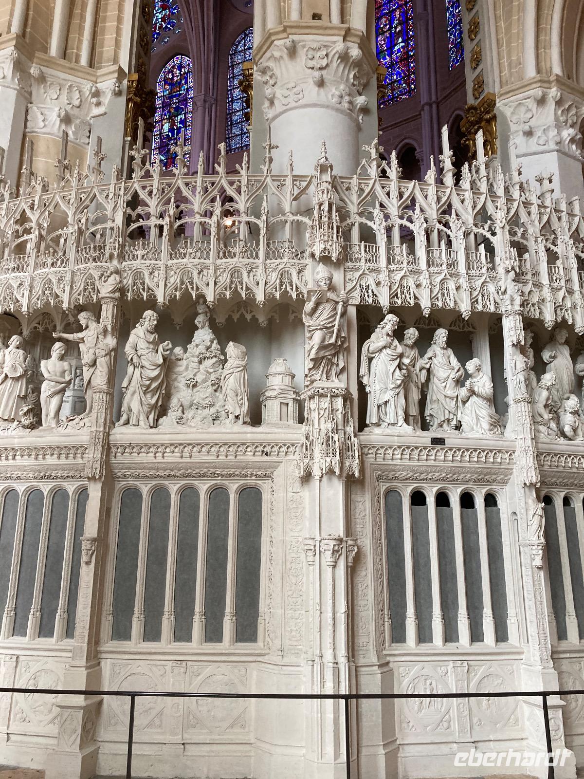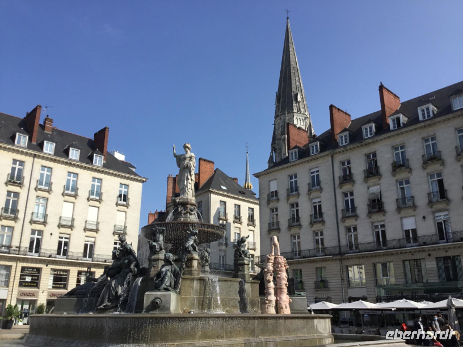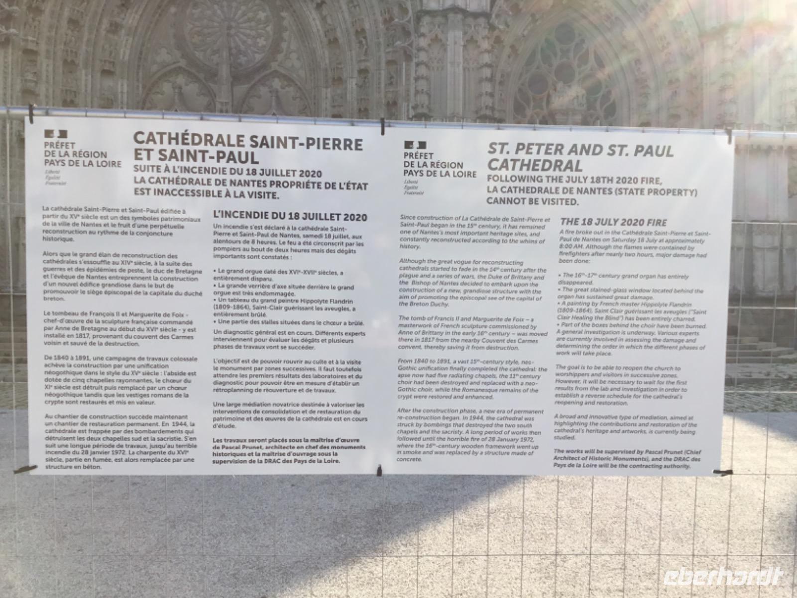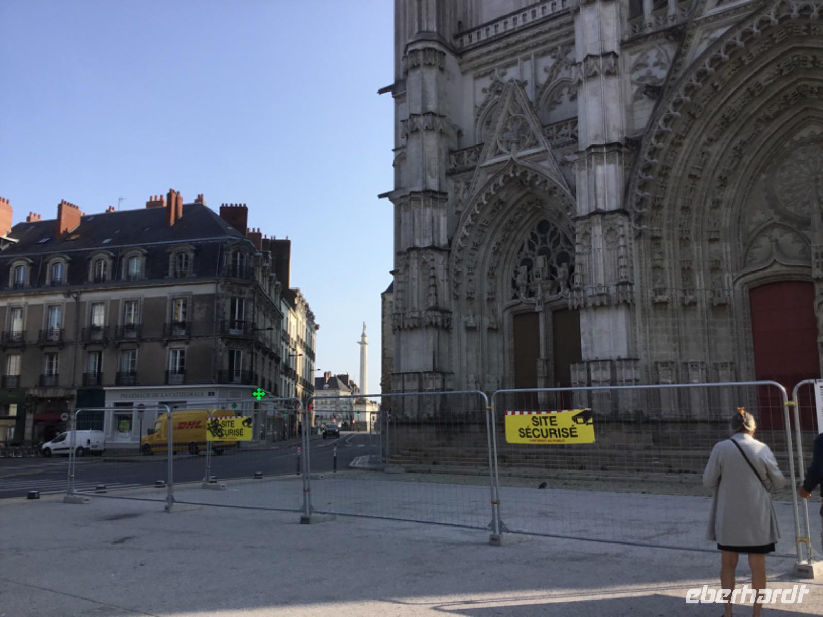 Der Himmel ist blau und die vorhergesagten Temperaturen verheißen einen Sommertag. Für uns beginnt aber gleich ein sportlicher Akt. Da die gesamte Île de France als Risikogebiet ausgewiesen ist, können wir dort nicht halten. Nun heißt es Daumendrücken, damit wir ohne größere Staus durch den Verkehr kommen. Und es glingt tatsächlich. Zwar wird der Verkehr im Großraum Paris immer dichter, wir kommen aber nie zum Stehen. Und das, obwohl es immer noch etliche Baustellen gibt. In der Ferne können wir den Eiffelturm und den Tour de Montparnasse entdecken und dann dauert es auch gar nicht mehr so lang und wir können eine Pause einlegen. Mein Blick auf die Uhr sagt mir, ja es passt! Wir können unsere Mittagspause mit einem kleinen Rundgang in Chartres zur Kathedrale verbinden. Sie gilt als das architektonische Modell einer gotischen Kathedrale in Frankreich und beeindruckt immer wieder aufs Neue. Nach ein wenig Bewegung an der frischen Luft ohne Mund-Nase-Bedeckung im Freien, setzen wir unsere Fahrt in Richtung Nantes fort.