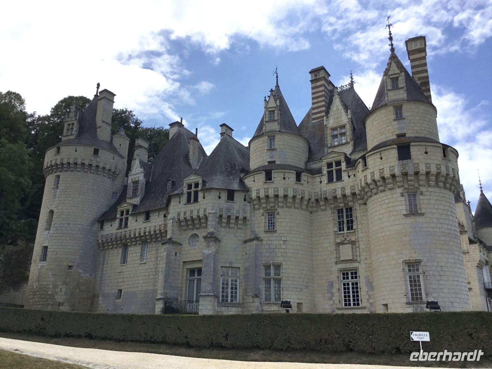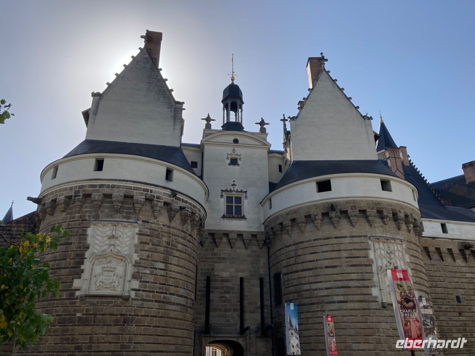 Da wir nur bis Ancenis mit dem Schiff fahren können, müssen wir schon früh zu unserer Schlössertour starten. Ein Wasserschloss haben wir im Rahmen des Vorprogramms schon kennengelernt, ein weiteres wird nun folgen. Azay-le-Rideau ist ein Schmuckstück! Hier ist es der Fluss Indre, der umgelenkt wurde, damit mittels Pfahlgründung dieses Schloss erbaut werden konnte. Nach unserem Mittagessen im netten Städtchen führt unser Weg uns am Indre entlang bis zum Schloss Ussé. Während Azay-le-Rideau zu den Nationalen Monumenten zählt, ist das Schloss Ussé in Privatbesitz. Mit seinen vielen Türmchen ist es nicht nur in Frankreich ein Inbegriff des Märchenschlosses. Die französische Version von Dornröschen fand dann auch hier ihre Heimstatt. Allerdings ist die Lage direkt am Wald mit einem weitenBlick über das Loiretal weniger zauberhaften Geschichten, sondern militärischer Strategie geschuldet. Feinde konnten schon weit im Voraus erblick werden. Für unseren Rückweg zum Schiff wählen wir zunächst nicht die Autobahn, sondern fahren bis zur Loire, um noch einen Blick auf Saumur zu werfen. Und dann verabschieden wir uns von diesem Stück der Loire und fahren nach Nantes zurück, wo unsere letzte Nacht auf dem Schiff beginnt.