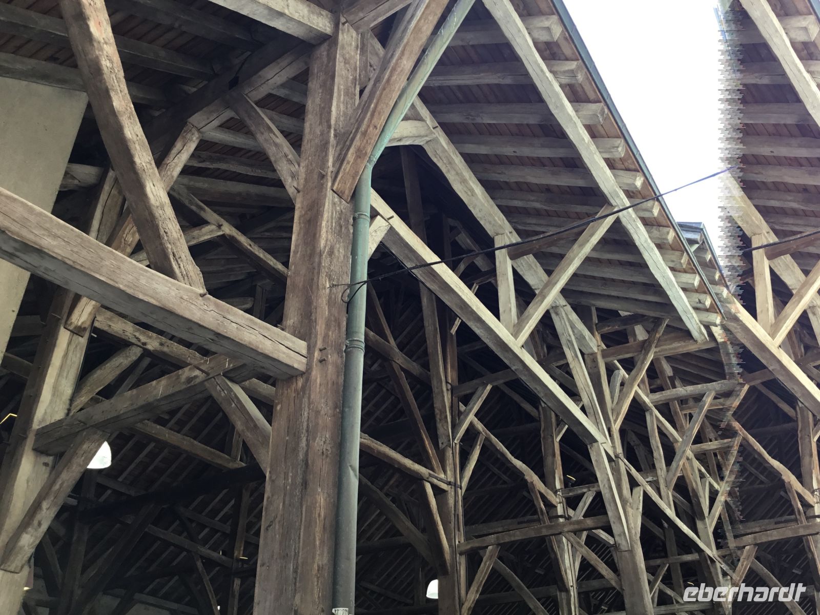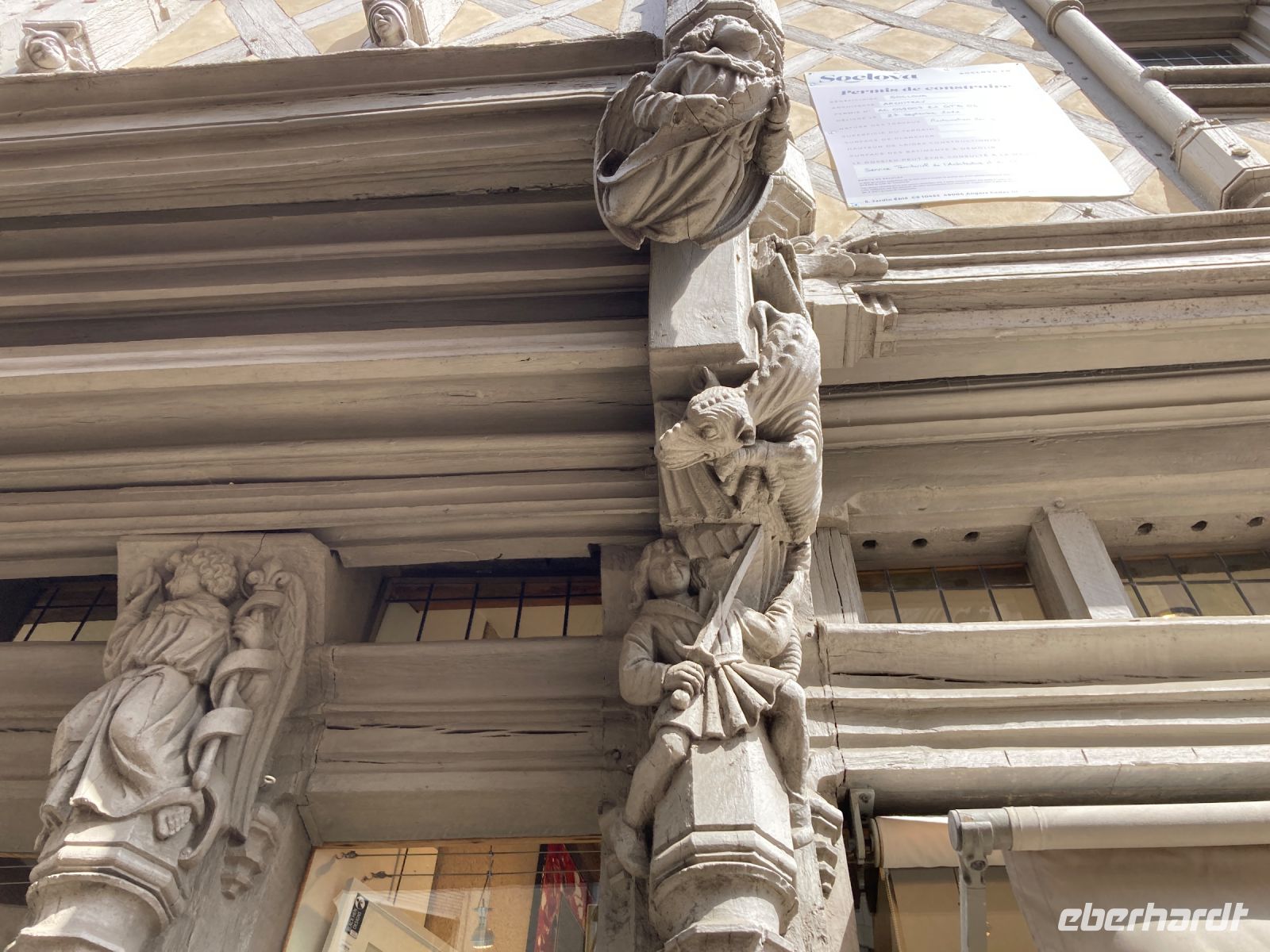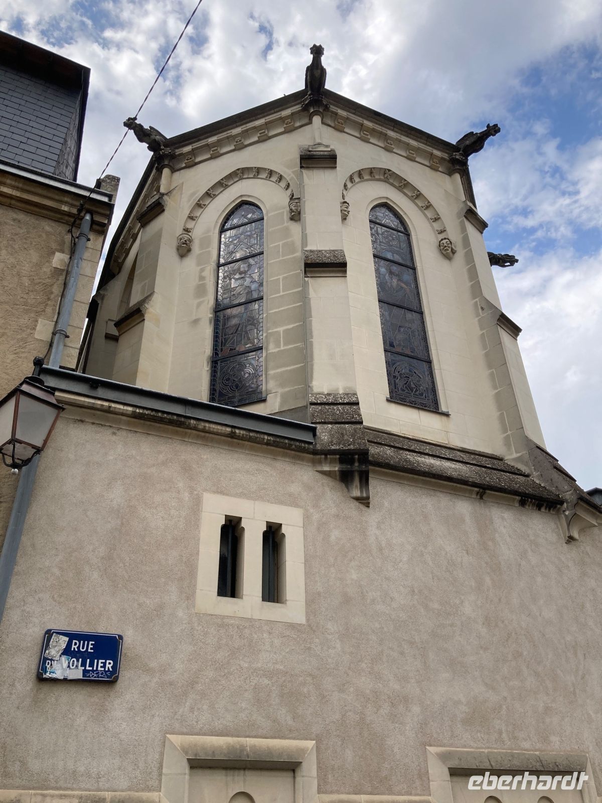Wieder unten angekommen fahren wir in Richtung Schloss und Kathedrale. Letztere können wir leider nur von außen besichtigen, da diese vor genau zwei Jahren einer Brandstiftung zum Opfer fiel. Auch hier gestalten sich die Restaurierungsarbeiten wegen der Bleibelastung schwierig. Der Schaden ist dramatisch: Die große Rosette der Hauptfassade wurde ebenso zerstört wie die wundervolle Orgel. Wann wir wieder in das Innere dürfen, ist noch nicht absehbar.