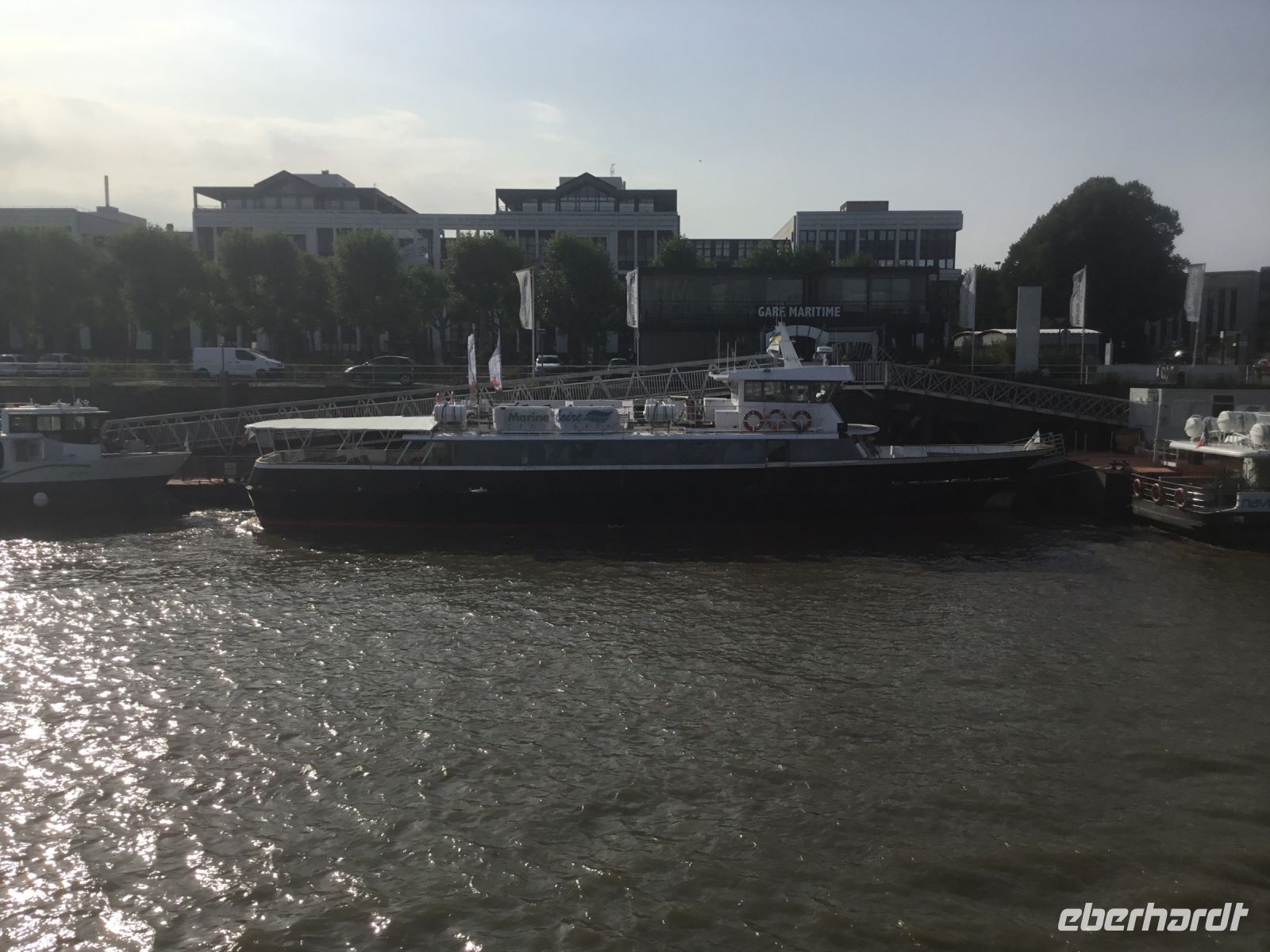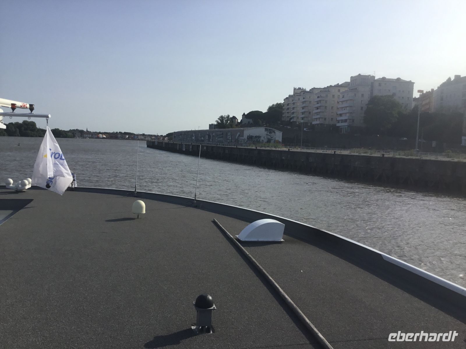 Nach dieser Stärkung nehmen wir nun die letzte Etappe in Angriff und fahren nach Nantes. Die Crew erwartet uns für das Einschiffen. Nachdem alle ihre Kabine bezogen haben, stellt sich die Crew bei einem Willkommensgetränk vor. Während wir unser erstes Abendessen auf dem Schiff genießen, legt die Loire Princesse auch schon in Richtung Loiremündung ab, geplante Ankunftszeit 1 Uhr.