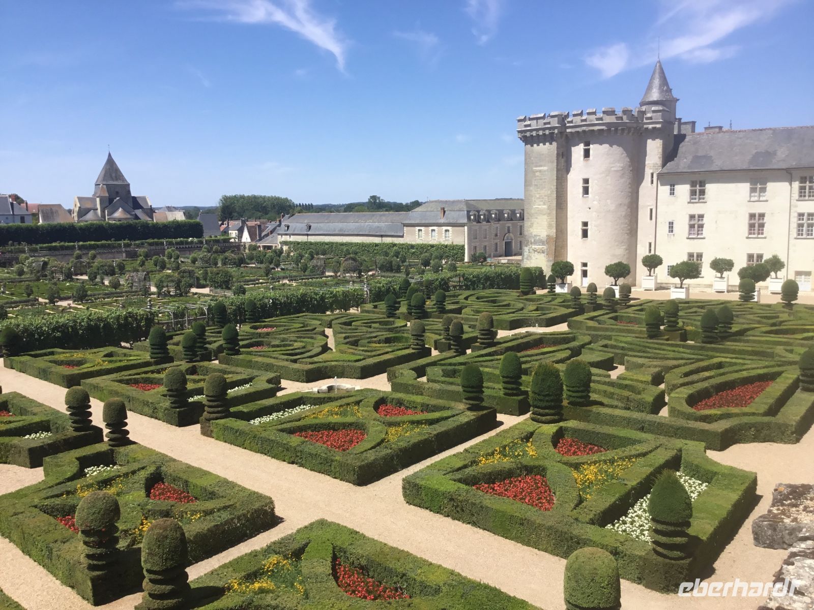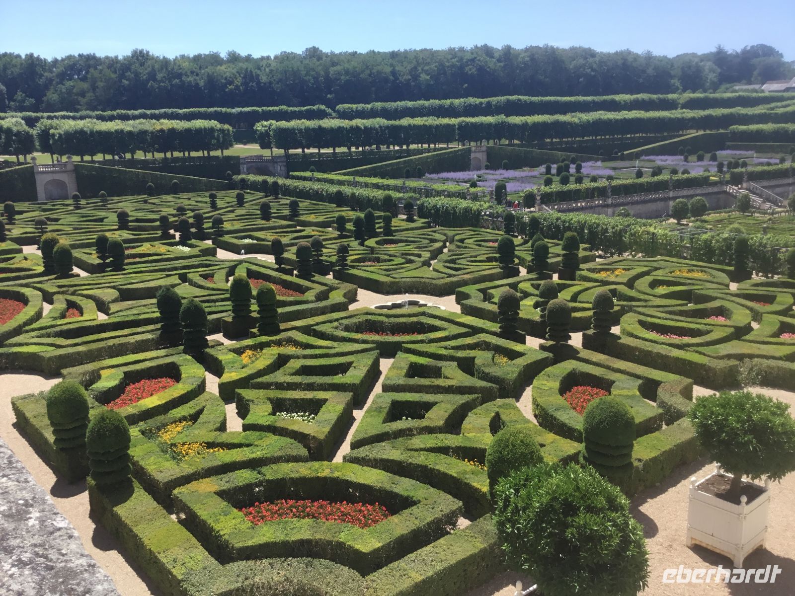 Um jedoch nicht nur dem Magen etwas zu bieten, sondern auch dem Auge besuchen wir das zweite Privatschloss an diesem Tag - Villandry. Diese Anlage kann man wegen des Schlosses besuchen. Wer jedoch Freude an Pflanzen und Gartenarchitektur kommt wegen der Gärten hierher. Bevor wir zu unserem Picknickplatz gehen, haben wir noch Zeit die Renaissance-Anlage zu bewundern. Die Mischung aus Zier-und Nutzgarten ist wahrhaft ein Fest für die Augen. Ein kleines Fest für unseren Magen finden wir dann unter Bäumen in unseren Picknick-Körben.
