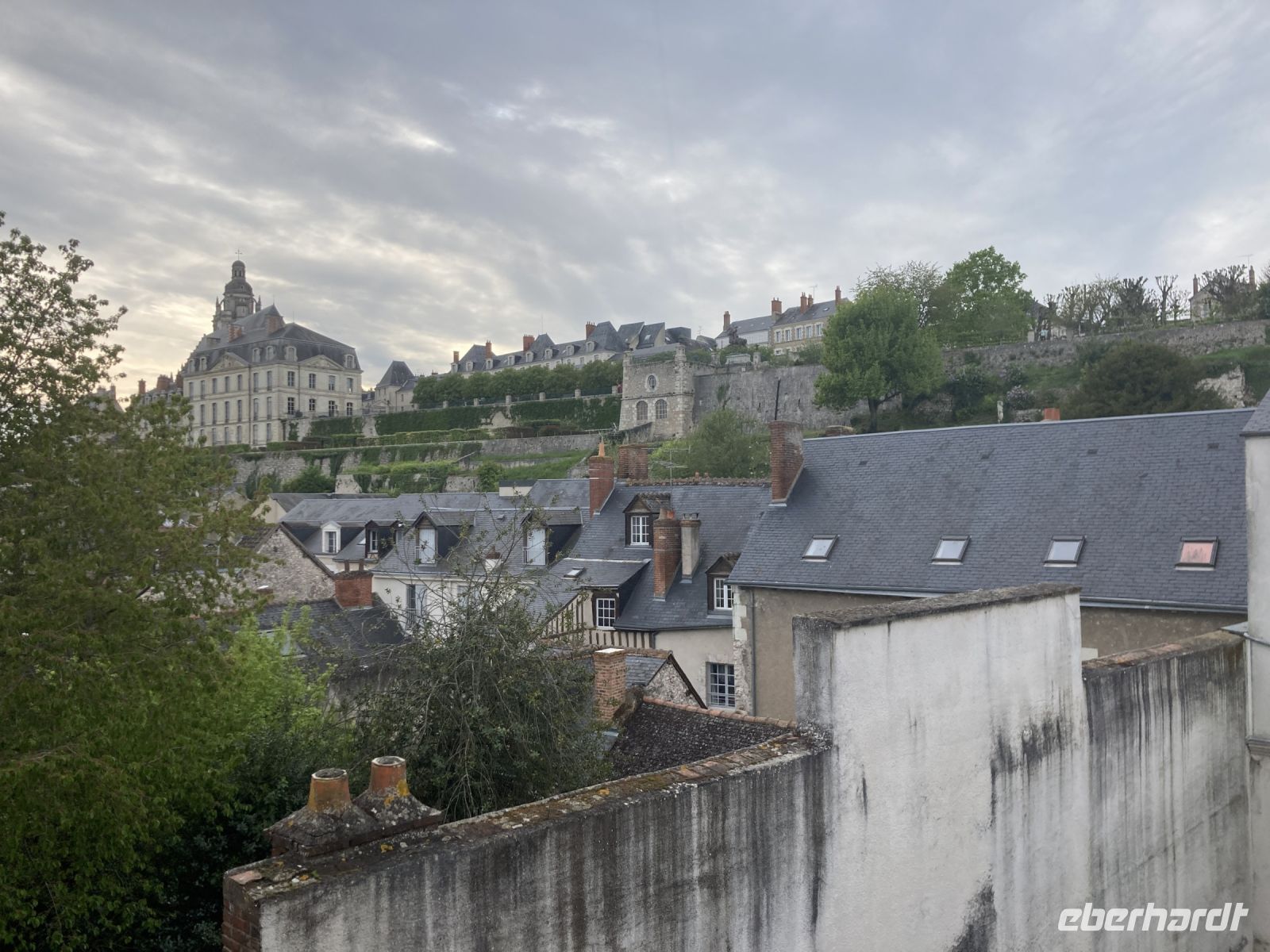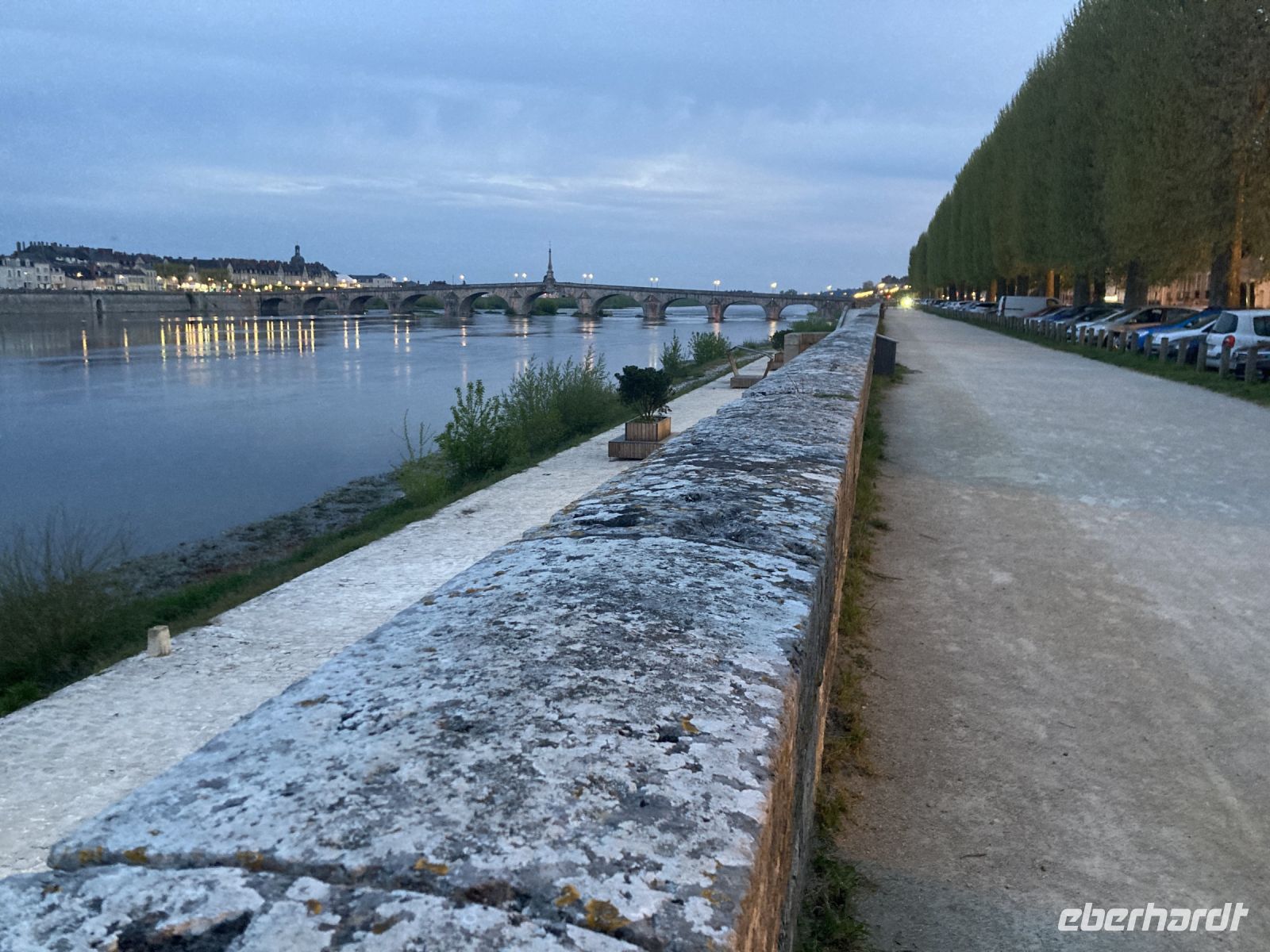 Unser Weg für uns heute über Troyes in Richtung Orleans und dann über die Loire weiter zur Domaine Chambord. Wir hätten einige Male anhalten können, um kleine Besichtigungstouren zu starten. Auf unserem Plan steht allerdings Loireregion und zugegeben, wollten wir jeden Tag ein Schloss besuchen, würden wir über ein Jahr benötigen. Schließlich reden wir von über 400 Schlössern, da sind die Herrenhäuser noch nicht mitgezählt. Diese Konzentration der architektonischen Vielfalt im Loiretal, das seit dem Jahr 2000 zum Weltkulturerbe zählt, bietet viel. Von Sully-sur-Loire bis nach Chalonnes-sur-Loire, 280 Kilometer angefüllt mit Schlössern, deren HerrscherInnen Geschichte schrieben. Wir steigen heute auch gleich mit einem Superlativ ein: Château Chambord. Es gibt gute Gründe, warum dieses Schloss zu den meist besuchten im Loiretal zählt. Franz I. entschließt sich 1515 zum Bau dieses Schlosses. Wir können immer wieder lesen, es sei als Jagdschloss erbaut worden. Diesen Zweck erfüllte es auch. Aber tatsächlich manifestierte sich in diesem Bau vor allem die Macht Franz I. Er wollte hier keine neue Residenz errichten, nur um die 50 Tage logierte er hier, sondern wollte ein Zeichen seiner Herrschaft, seines Weitblicks und seiner Modernität setzen. Letztere wollte er durch Ideen Leonardo da Vincis unterstrichen, der so manche Innovation hier umsetzte. Beleg ist die Doppelwendeltreppe. Die zwei ineinander verschränkten Spiralen ermöglichen es zwei Personen gleichzeitig hinauf- und hinab zuschreiten, ohne sich zu begegnen: ein vergnügliches Treppensteigen. Doch damit nicht genug: Über 400 Zimmer, 282 Kamine, deren Sanierung auch in diesem Frühjahr noch nicht abgeschlossen ist. Die Hoffnung auf Fotos ohne Gerüste geht einmal mehr in Rauch auf. Von den vielen Zimmern sind um die 60 zu besichtigen. Dank des Histopads können wir sogar eine visuelle Zeitreise antreten. Sehenswert ist auch der Garten des Schlosses, der seit 2017 neu oder besser gesagt, wie zur Zeit Ludwig XIV aussieht. Und auch hier geht es nicht ohne Superlative: 18874 qm Rasenfläche, 600 Bäume, 800 Sträucher und, und, und. Und wäre dies nicht schon genug, das Ganze ist auch noch gleich so groß wie Paris mit seinen 20 Arrondissements. Voilà, das ist Chambord. Nun wundert es niemanden, dass ein Besuch hier durchaus erschöpft. Deshalb haben wir es auch gar nicht mehr weit zu unserer nächsten Übernachtung. Wir haben uns für ein Hotel in Blois entschieden und die meisten Gäste nutzen denn auch die Möglichkeit vor oder nach dem Essen einen Spaziergang entlang der Loire bis zum Schloss von Blois zu unternehmen und das charmante Städtchen entdecken.