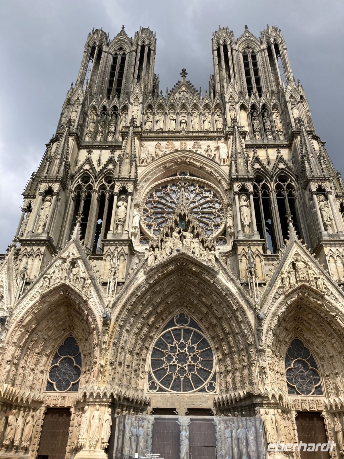 Um 8:45 verlassen wir Nantes. Von den angekündigten Demonstrationen bekommen wir zum Glück noch nichts mit. Vorbei an Le Mans und Paris nehmen wir Kurs auf Reims. Der Kathedrale und der Innenstadt der Hochburg des Champagners wollen wir noch ein wenig Zeit widmen. Die Kathedrale ist mit ihren 2303 Skulpturen seit 1991 auf der UNESCO - Weltkulturerbeliste zu finden. Sie ist eines der bemerkenswertesten Beispiele der Gotik und ein besonderes Symbol für die Franzosen. Die Mehrzahl der französischen Könige wurden hier gekrönt. Dies war wohl auch einer der Gründe, warum die Kathedrale im Ersten Weltkrieg durch die Deutschen unter Beschuss genommen wurde. Man wollte die Franzosen in ihrem Selbstverständnis treffen. Es sollte bis 1938 dauern, bis die Wunde im Herzen der Stadt geheilt werden konnten. Die Verletzungen zweier Weltkriege sollte das Verhältnis der Franzosen und Deutschen noch viele Jahre trüben. Robert Schuman ebnete mit der Montanunion 1950 den Weg, der sich 1963 mit der Gründung des Deutsch-Französischen Jugendwerks fortsetzte. Beeindruckend ist die Kathedrale jedoch nicht nur von außen, sondern auch von innen. Mit einem Abendessen in einer Brasserie geht unsere Frankreichreise ihrem Ende zu. Für uns bricht die letzte Nacht en France an.