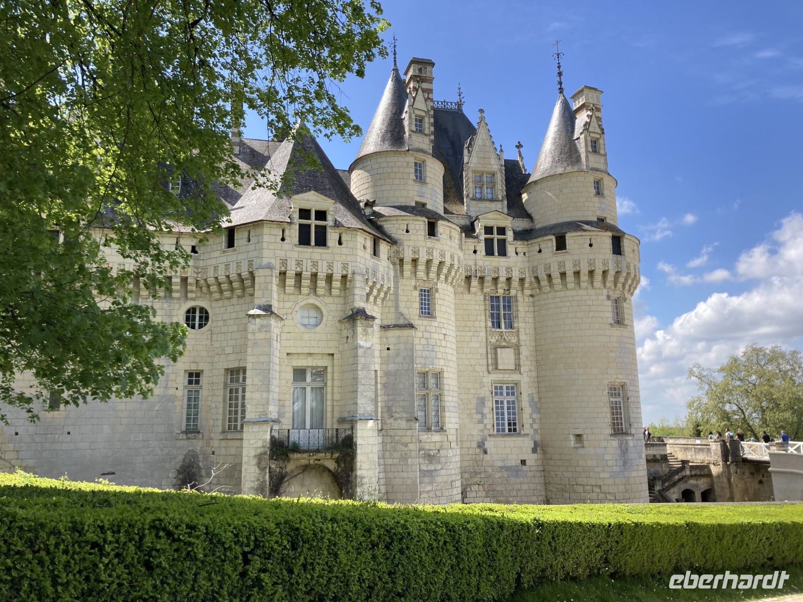 Ein Wasserschloss haben wir im Rahmen des Vorprogramms schon kennengelernt, ein weiteres wird nun folgen. Azay-le-Rideau ist ein Schmuckstück! Hier ist es der Fluss Indre, der umgelenkt wurde, damit mittels Pfahlgründung dieses Schloss erbaut werden konnte. Azay-le-Rideau ist ein Renaissanceschloss, welches in den vergangen Jahren komplett restauriert wurde. Es ist eines der wenigen Schlösser, wo kein Gerüst das Fotomotiv stört. Nach dem Mittagessen geht der Weg am Indre entlang bis zum Schloss Ussé. Während Azay-le-Rideau zu den Nationalen Monumenten zählt, ist dieses Schloss in Privatbesitz. Mit seinen vielen Türmchen erhebt es sich vor einem Wald und bietet einen schönen Blick über das Loiretal. Bei unserem Nachbarn ist es der Inbegriff eines Märchenschlosses. Die französische Version von Dornröschen fand hier ihre Heimstatt. Für unseren Rückweg zum Schiff wählen wir zunächst nicht die Autobahn, sondern fahren bis zur Loire um noch einen Blick auf Saumur zu werfen. Und dann verabschieden wir uns von diesem Stück der Loire und fahren nach Ancenis zurück. Mit dem Schiff geht es nun weiter flussabwärts zu unserem Ausgangshafen Nantes.