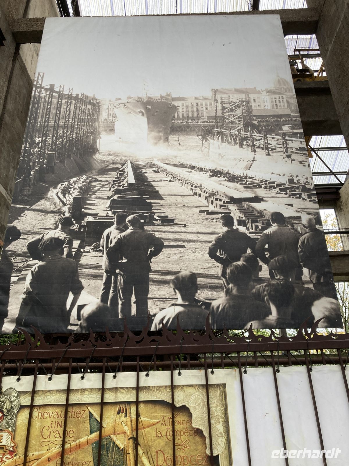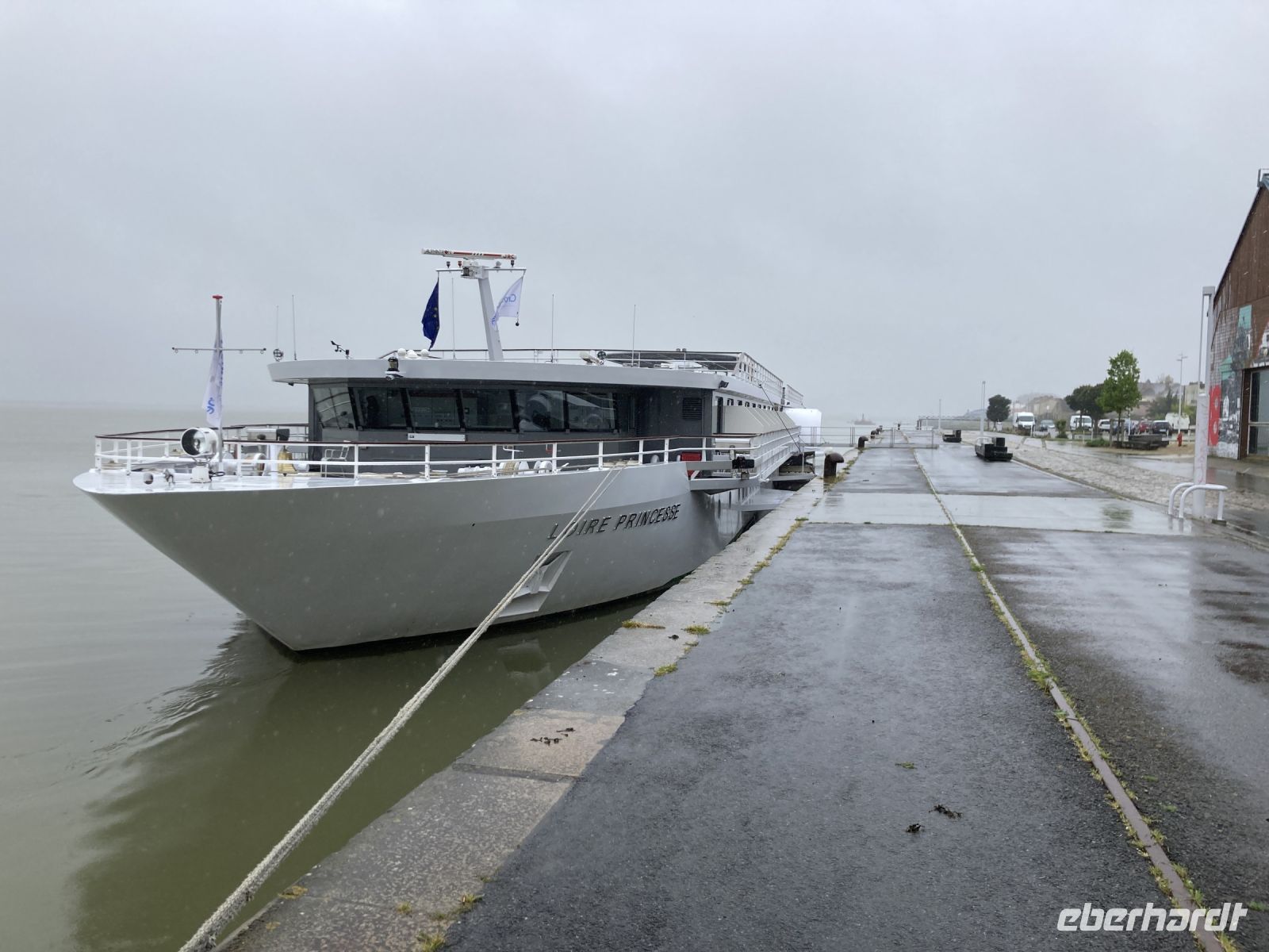 Ein Rundgang durch die kleine Stadt Guérande, deren einstiger Reichtum tatsächlich mit dem Salz kam, schließt sich an. Da dies im Laufe der Geschichte viele Neider auf den Plan rief, wurde die Stadt mit einer mächtigen Mauer umgeben, die noch vollständig erhalten ist. Uns bleibt noch ein wenig Zeit, so können auf dem dem Rückweg einen Abstecher nach St.Nazaire machen. Die Stadt wurde im Zweiten Weltkrieg durch die Alliierten stark zerstört. Grund hierfür war vor allem der U-Boothafen, den die Deutschen hier als einen Teil des sogenannten Atlantikwalls unterhielten. Ironie der Geschichte, die Stadt lag danieder, der U-Bootbunker blieb. Lange haderte die Stadt mit diesem Erbe. Heute wird der Bunker als Kulturzentrum, Mediathek und Museum genutzt. Aber nun wieder zurück zum Schiff, schließlich erwartet uns das Mittagessen und eine Flussfahrt in Richtung Nantes - tatsächlich fast ohne Regen.
