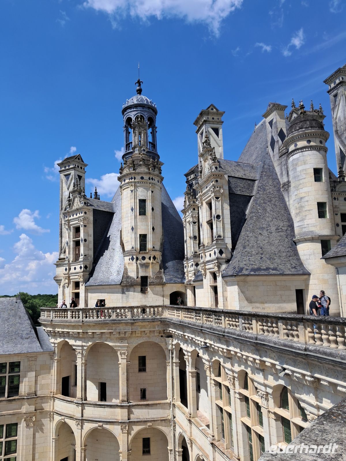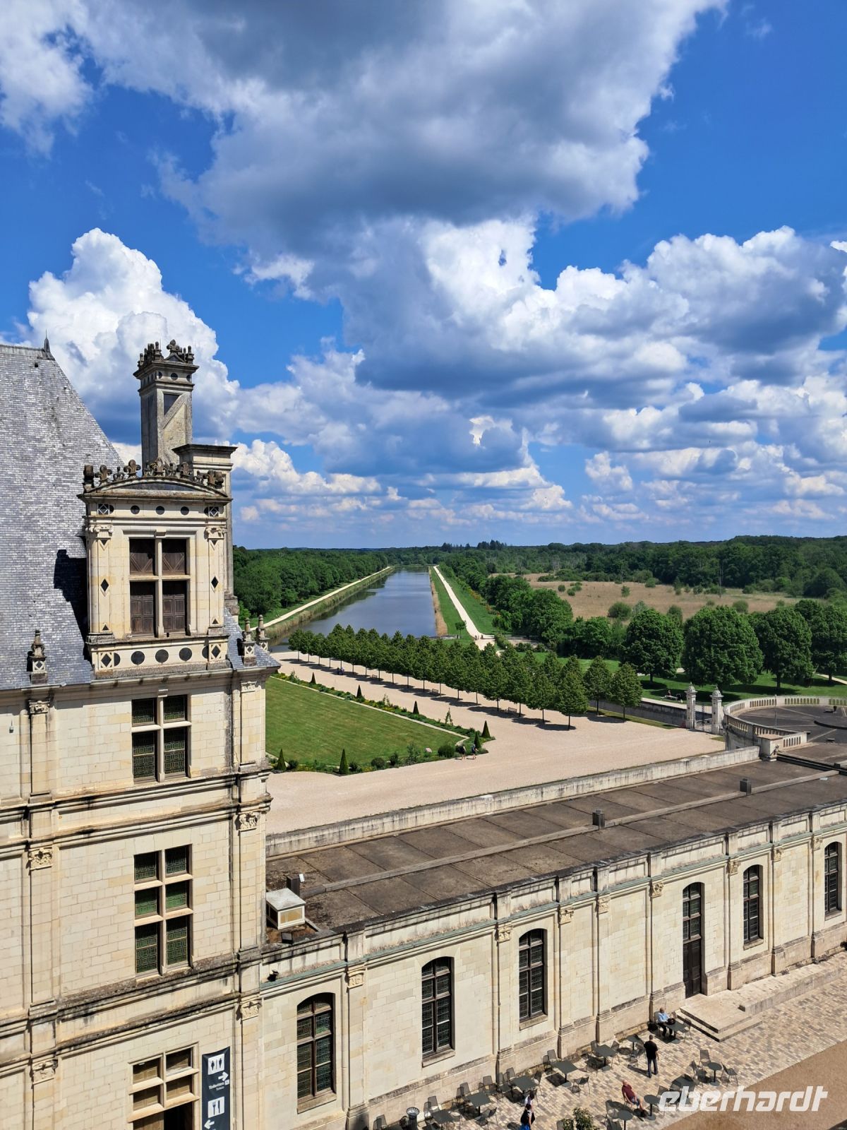 Wir setzen unsere Fahrt fort, vorbei am Großraum Paris weiter in ländliches Gefilde, so ländlich, dass noch vor der ersten auf dem Plan stehenden Sehenswürdigkeit vor dem plötzlichen Auftauchen von Wildschweinen, Hirschen und sonstigen Waldbewohnern gewarnt wird. Ja, wir sind schon angekommen, im riesigen Areal um das Schloss Chambord herum, das gerade wegen dieser Vielfalt an Tieren eigens gebaut wurde als Jagdschloss für Franz I und seine illustren höfischen Gäste. Es ist ein Wunder, dass dieses Schloss überhaupt noch steht, sollte es nach der Französischen Revolution abgerissen werden. Denn zum Wohnen taugte es damals nicht und tut es nicht bis heute. Es diente nur der Repräsentation. Heute ist es das größte Schloss unter den 400 Schlössern und königlichen Residenzen an der Loire.