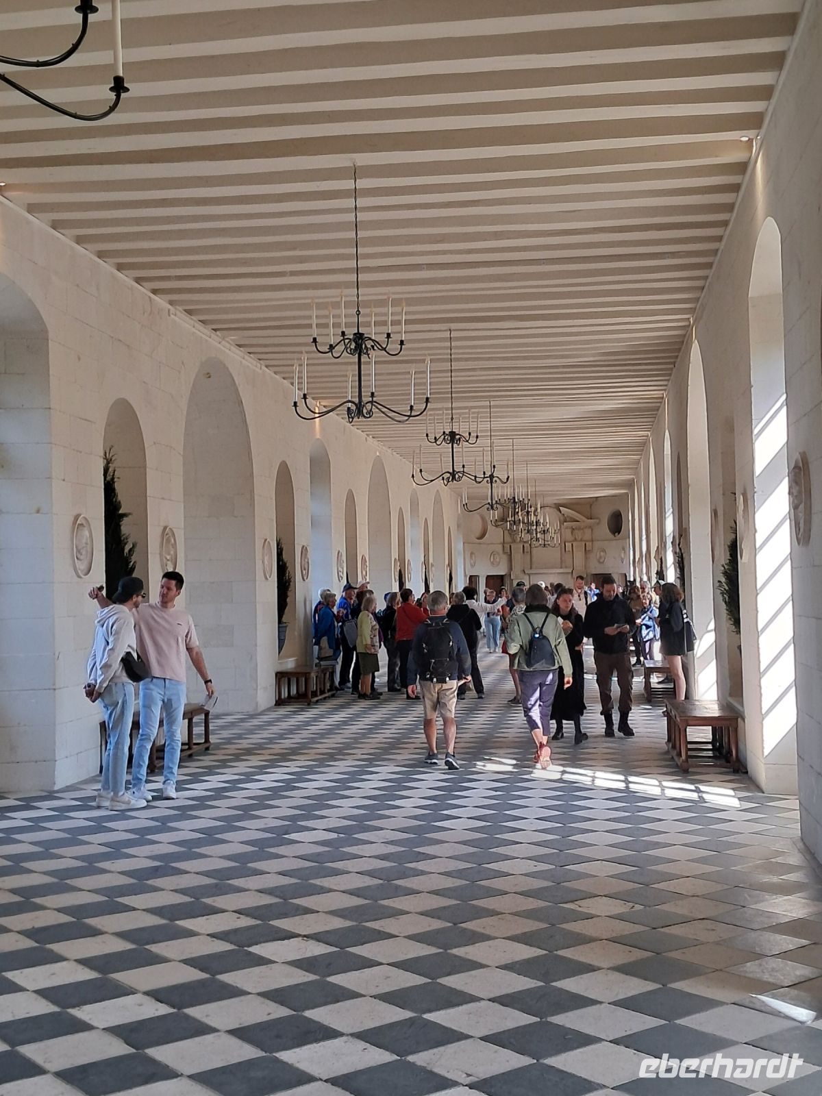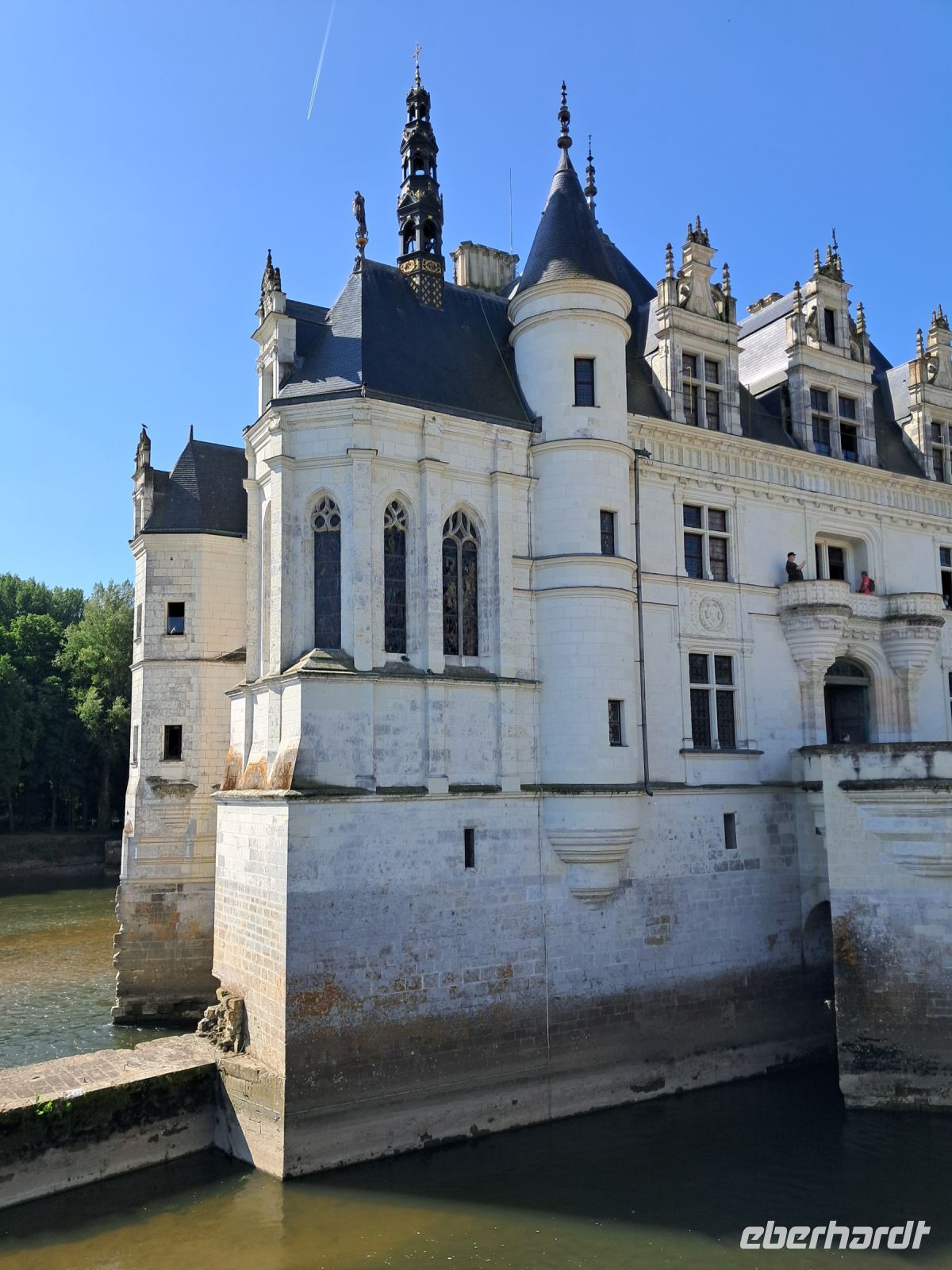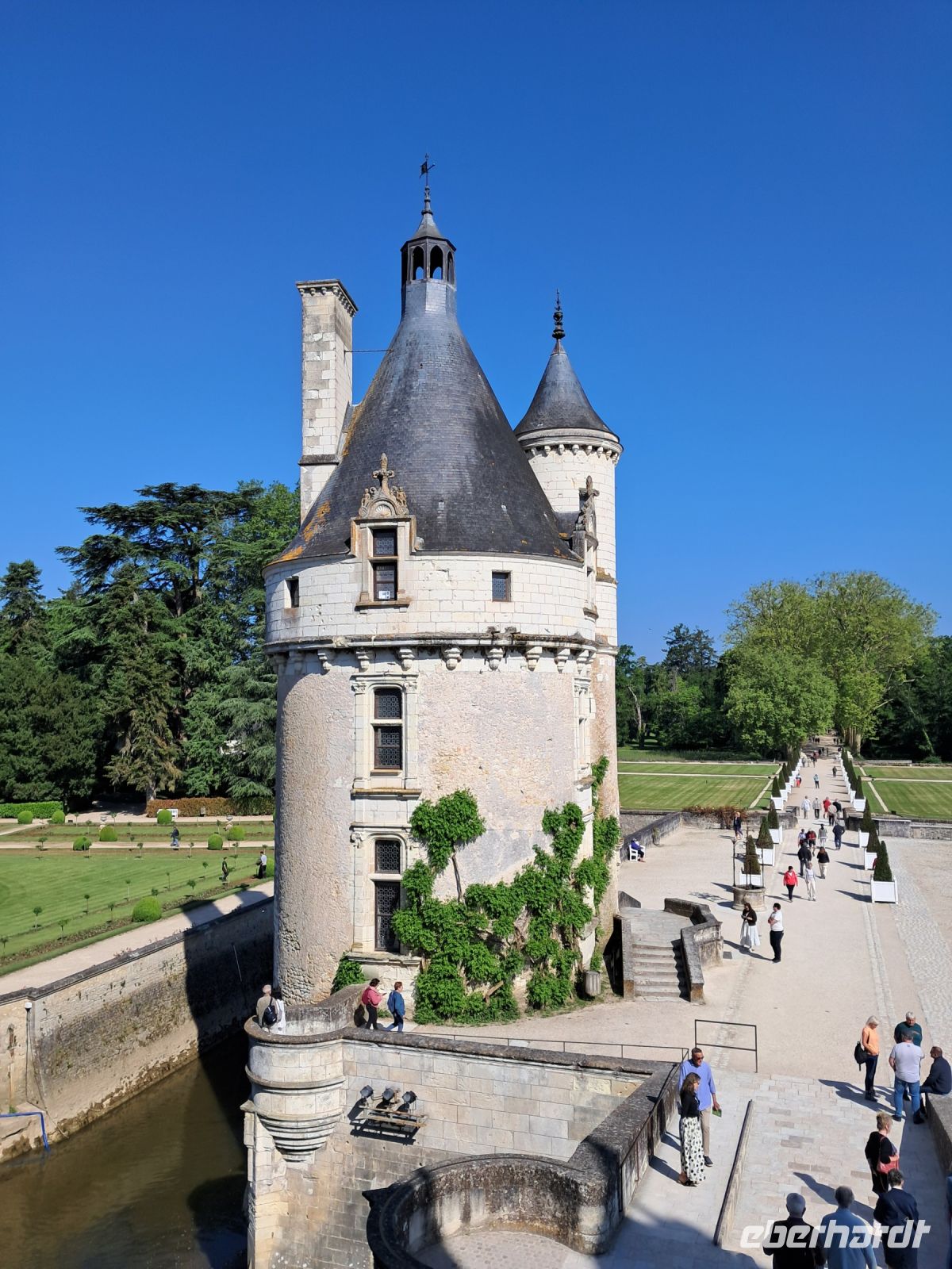 Schloss Chenonceau, vielleicht das einzige Schloss an der Loire, dass über Jahrhunderte immer im Besitz von Frauen geblieben ist, sollte der erste Besuch des Tages sein. Es ist der Inbegriff eines romantischen Schlosses, das sich aus einem Wohnteil und einer Galerie zusammensetzt, die über den Fluss Cher, übrigens männlich, gebaut ist. Dazu gehört ein wunderschöner Park auf der einen Flussseite und ein Wald auf der anderen.