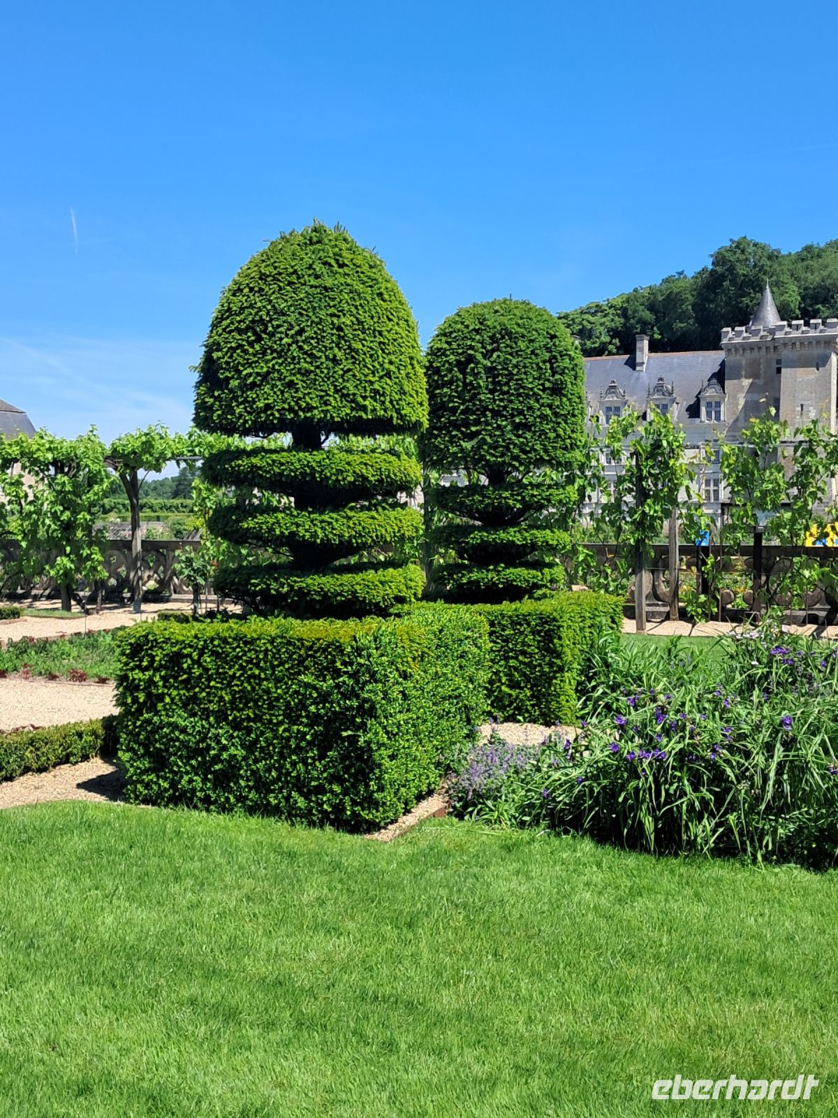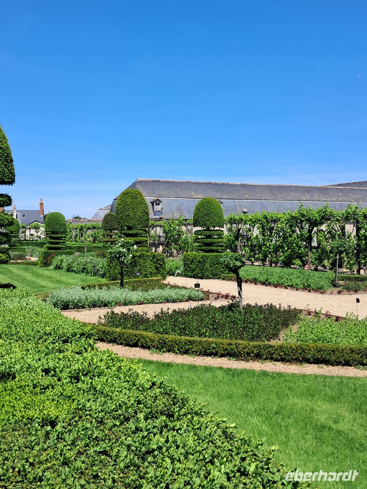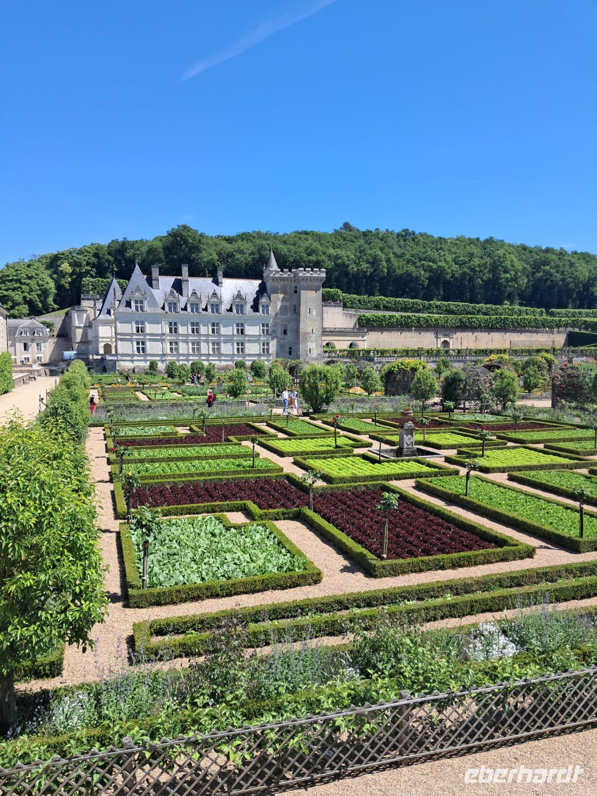 Von hier aus ist es nicht mehr weit bis nach Villandry. Der Höhepunkt dieser Schlossanlage ist der riesige Garten, geteilt in Sommergarten, Terassenanlagen und Wassergarten.Während im oberen Bereich hauptsächlich Buchsbäume wachsen, gedeiht im unteren Bereich alles, was in der Küche gebraucht wird. Und wo könnte man wohl besser picknicken als hier? Das haben wir gemacht und wir hätten es hier sicherlich mit mehr Rosewein noch lange ausgehalten.