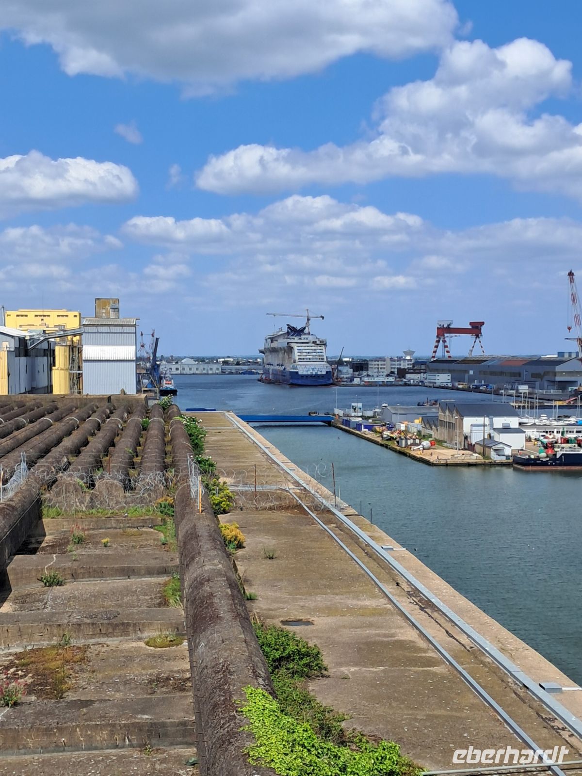 Früh am Morgen kommt die Prinzessin mit uns in Saint-Nazaire an und wir ankern direkt neben dem U-Boot-Bunker St. Nazaire (Base sous-marine), der während des Zweiten Weltkriegs durch die Deutsche Kriegsmarine erbaut wurde. Einige von uns nehmen sich später die Zeit, einen Spaziergang auf das Dach des Bunkers zu unternehmen. Für die gesamte Gruppe steht aber zunächst der Bus bereit, der zu einem Ausflug entlang der Atlantikküste über La Baule bis nach Guerande einlädt. Wir dürfen uns bei einem Halt an der zerklüfteten Küste an der Meeresluft erfreuen und später erfahren wir noch, wo das kostbare Fleur du Sel geerntet wird.