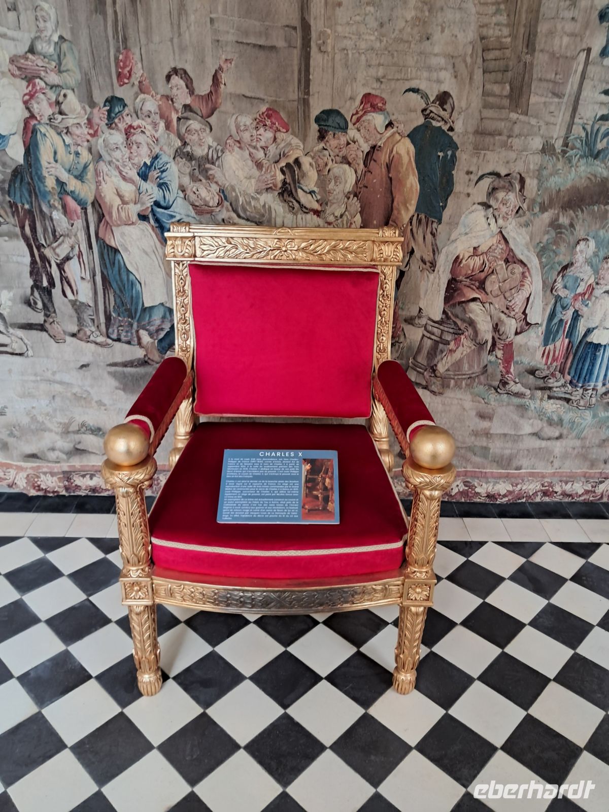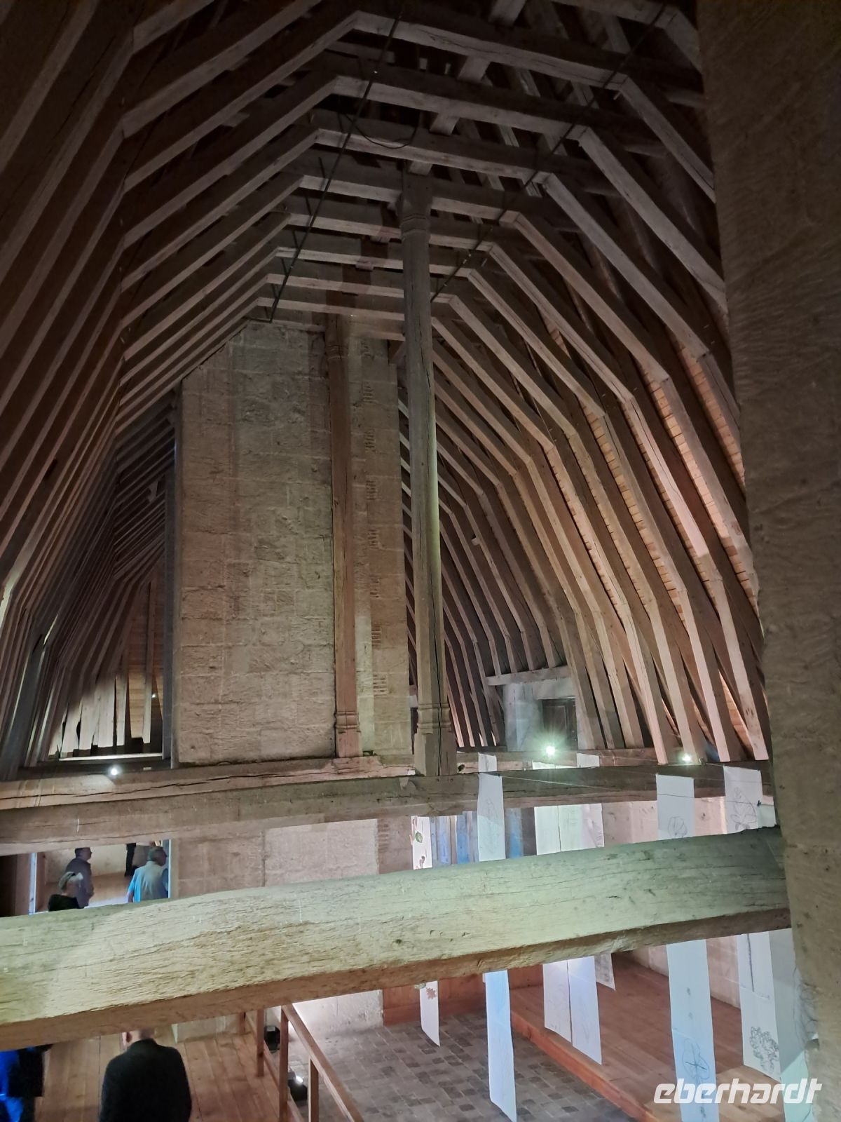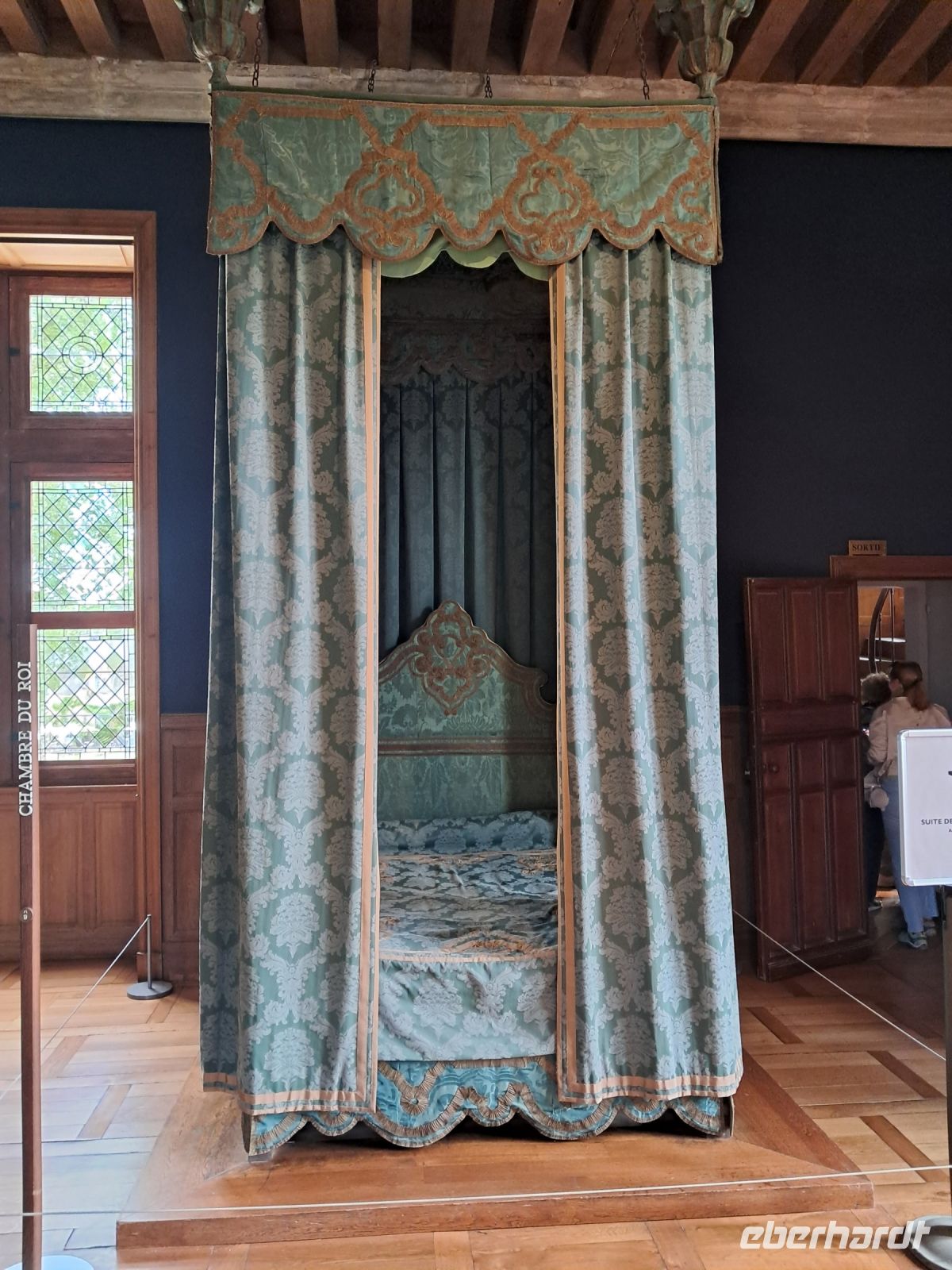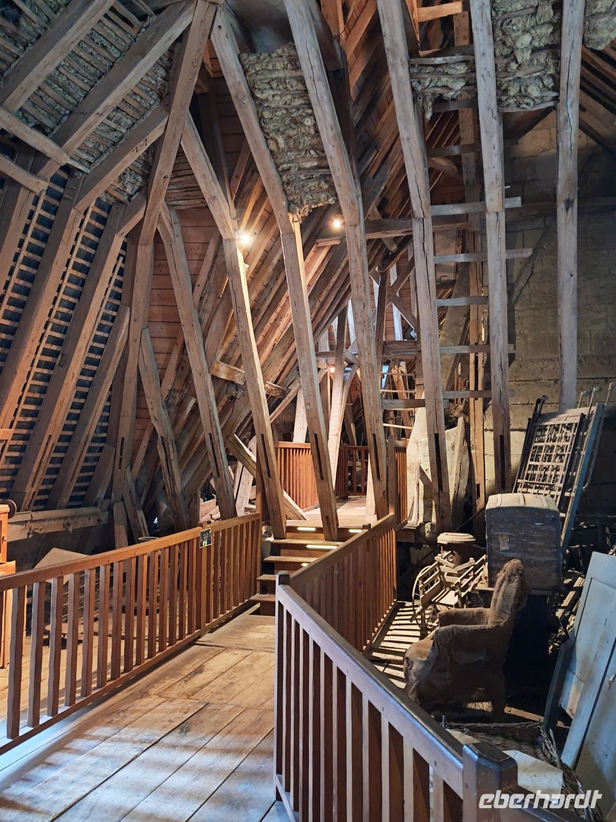 Azay-le-Rideau ist der Inbegriff eines Wasserschlosses mit quakenden Fröschen, von Schilf gesäumten Bächen mit der ein oder anderen schnellen Forelle. Man sagte uns, wir sollen im Dachgeschoss mit der Besichtigung des Schlosses beginnen. Schauen Sie sich mal diesen prächtigen Dachstuhl an.