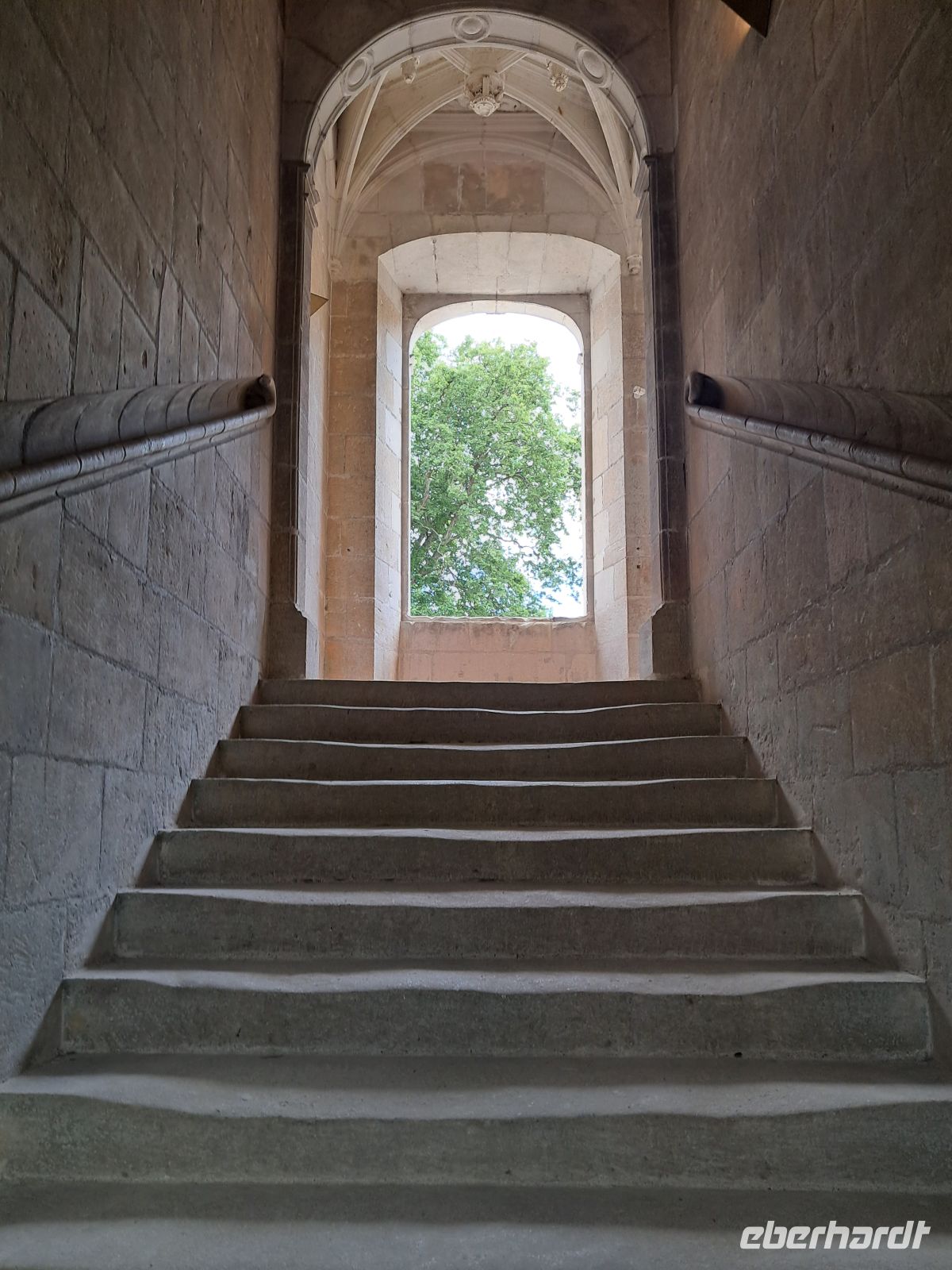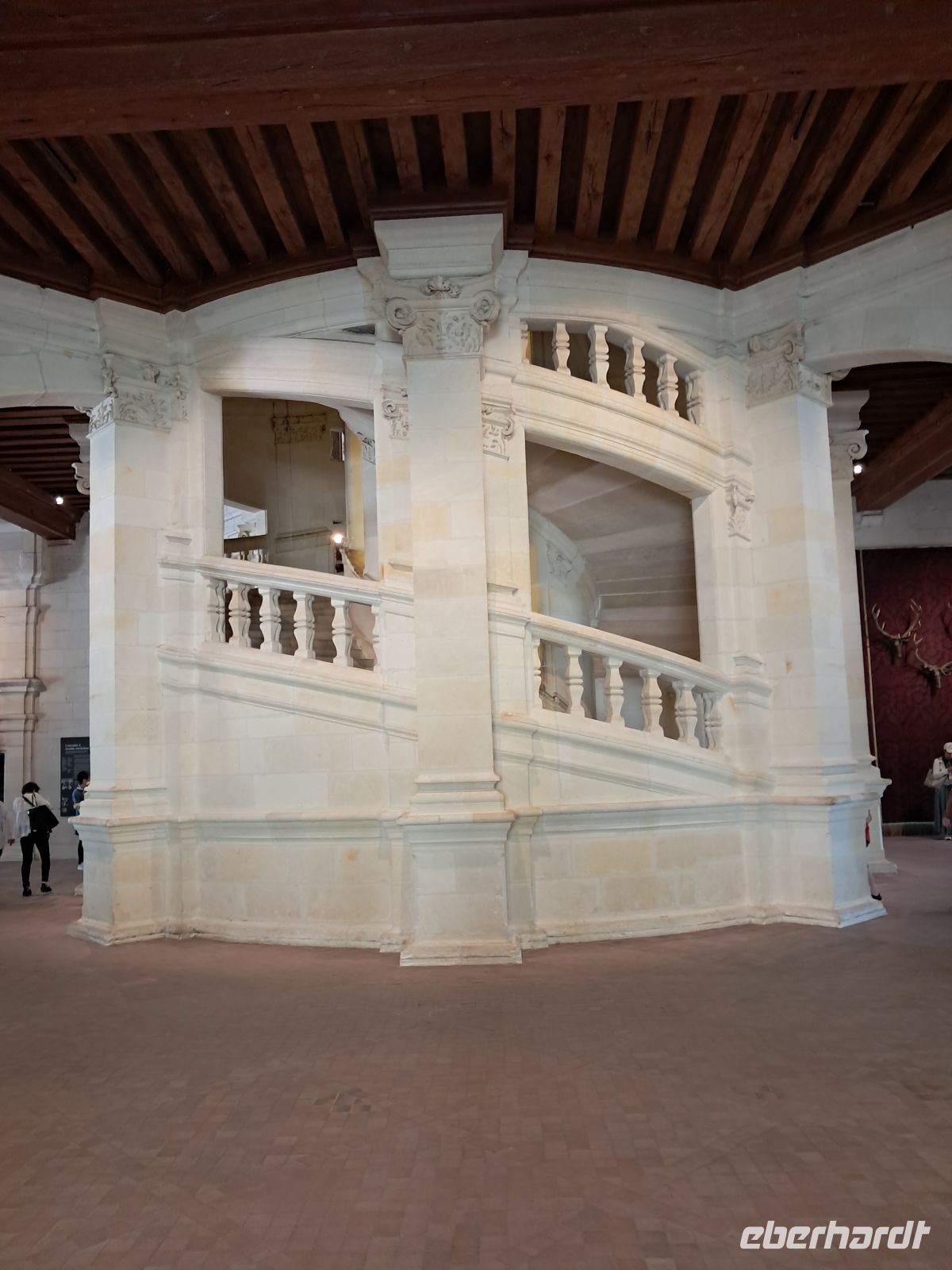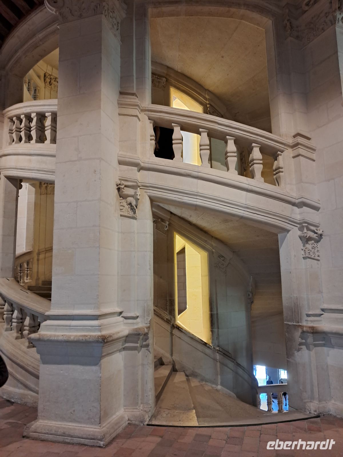 Wenn heute das Auto das Statussymbol ist, dann war das im 15. Jahrhundert für den Mann von Welt oder der es sein wollte das Schloss. Es musste natürlich prächtiger, größer und innovativer sein als alles was es schon gab. Und so ließ sich Franz I ein Jagdschloss der Superlative bauen. Eine doppelte Wendeltreppe war das Mindeste, was es für den Eingangsbereich sein musste. Wahrscheinlich hat ihn Leonardo da Vinci dazu inspiriert. Immerhin gewährte er ihm freie Kost und Logis im nicht weit entfernten Amboise. Franz I wusste zu wissen, mit wem er sich umgeben musste, um sich zu damaliger Zeit richtig in Szene zu setzen. Technikfeindlich darf man allerdings nicht sein bei einem Besuch von Chambord, bis das Histopad richtig läuft, da müssen ein paar Hürden genommen werden. Ansonsten kann man über die vielen Türmchen, Balkone, Treppen und Kamine nur staunen.