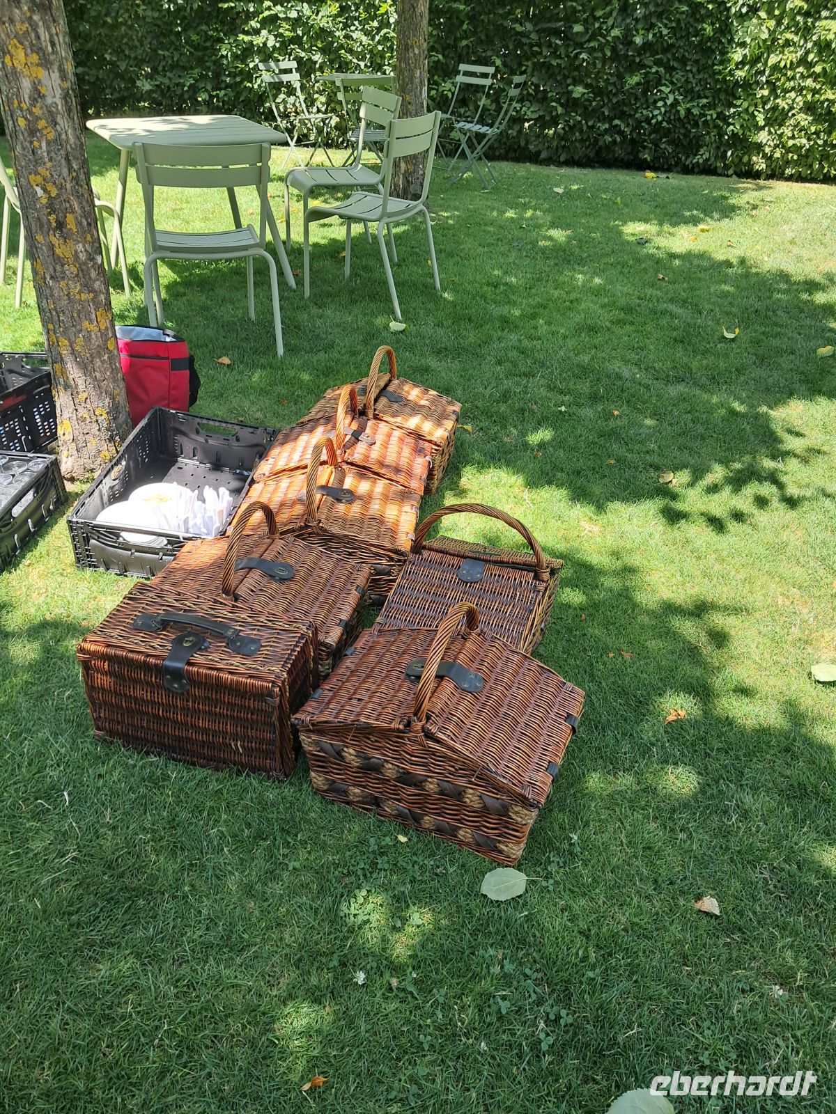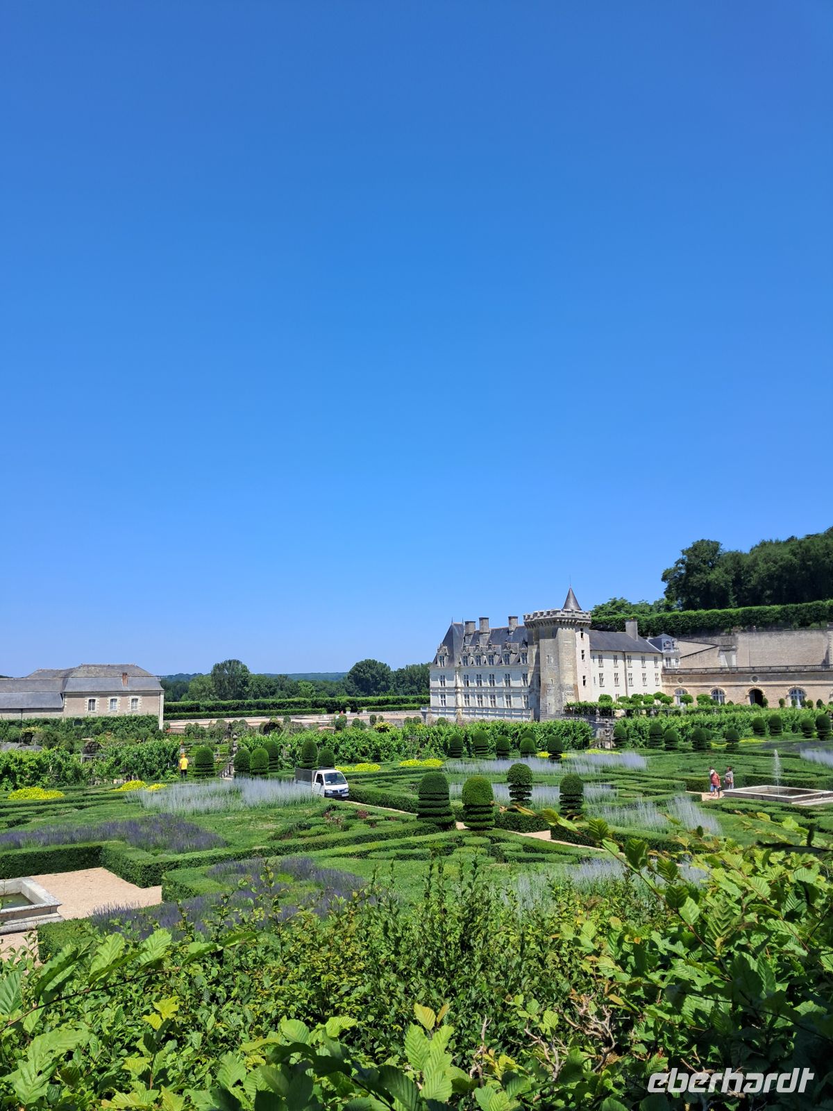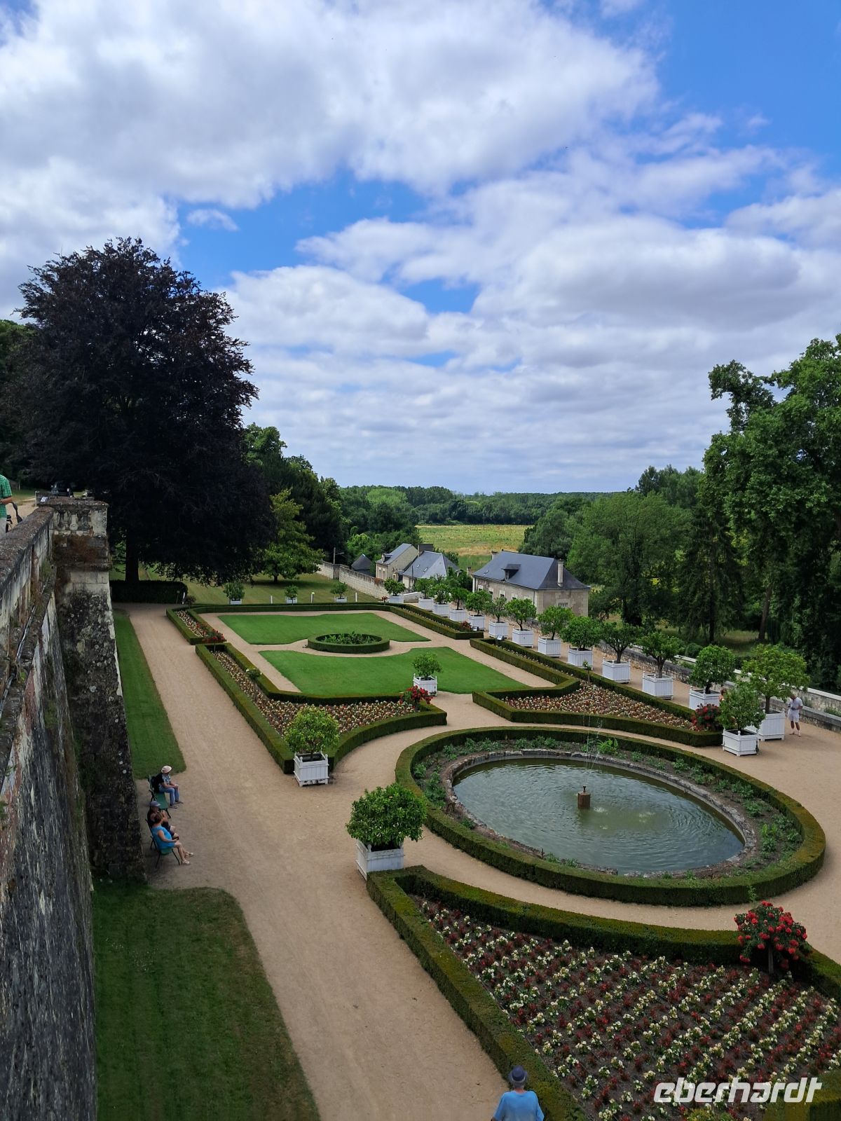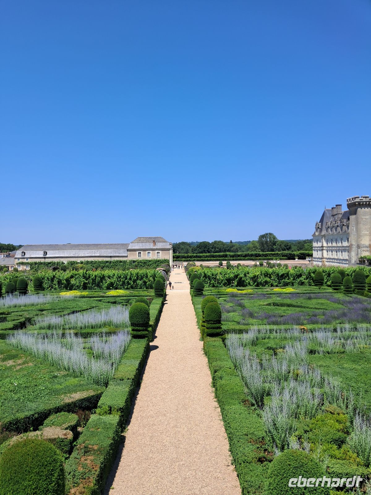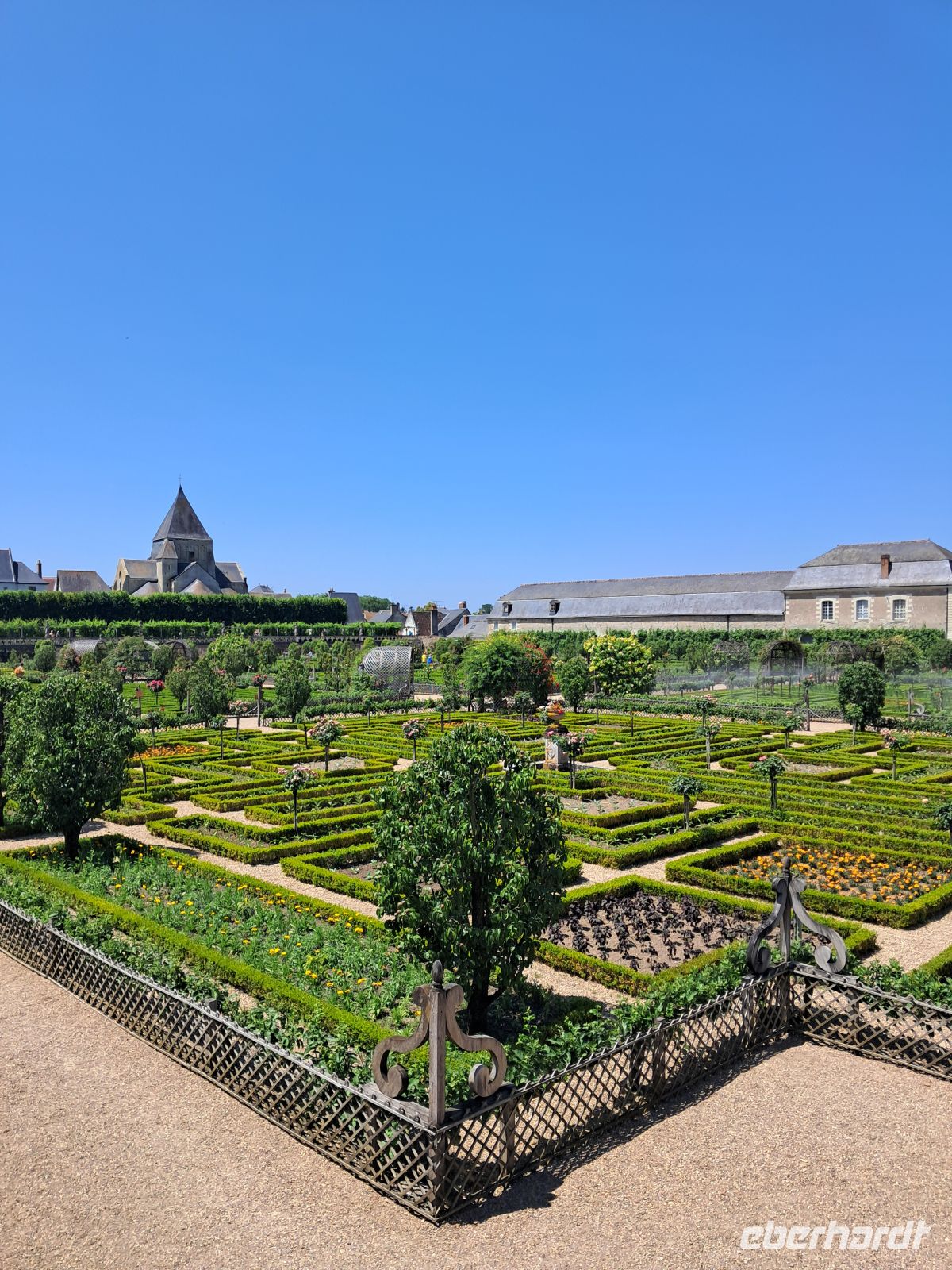 Danach ging es weiter zu unserem nächsten Programmpunkt, den Gärten des Schlosses Villandry, ein Terrassengarten mit einem oberen Teil an Zierpflanzen, insbesondere Buchsbäumen und einem unteren Teil, der alles hervorbringt, was in der Küche gebraucht wird. Apropos Küche, ein Picknick im Sonnengarten sollte der Höhepunkt des Besuchs werden mit richtigen Picknickkörben und Tischdecken. Ein solches Schloss mit diesem Garten erfordern ein bisschen Stil.