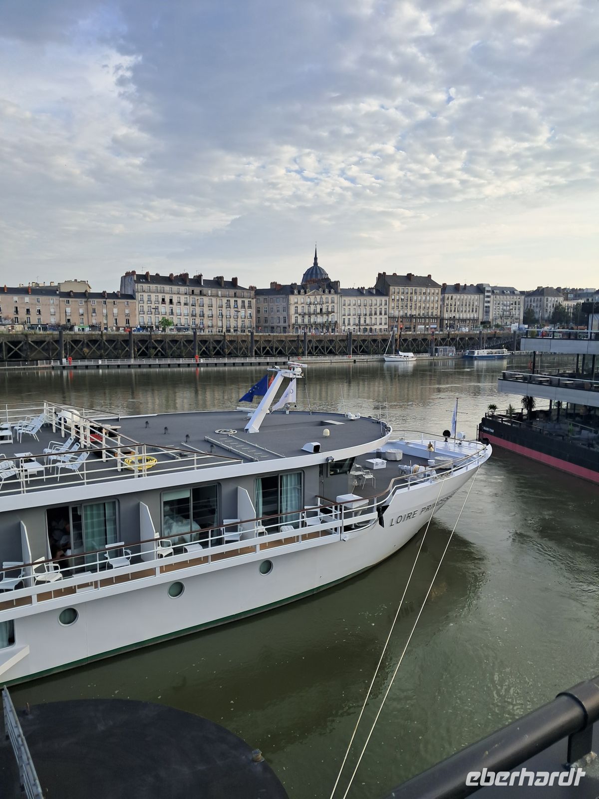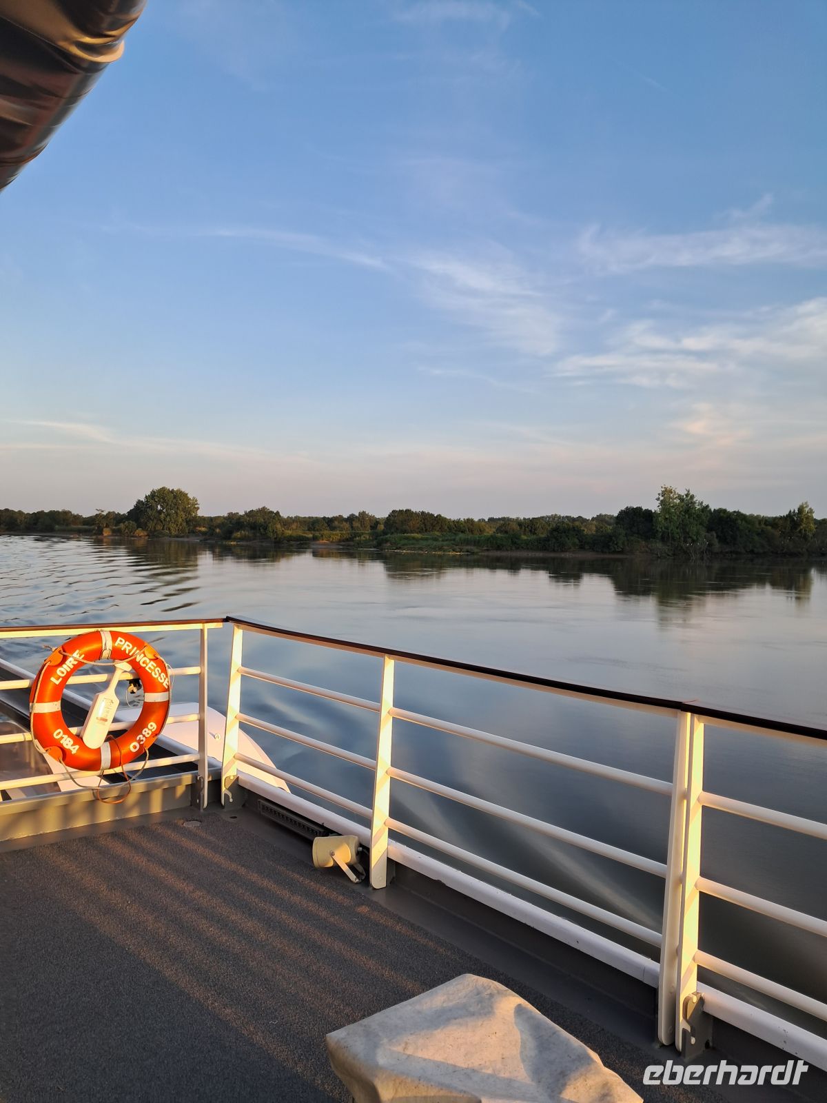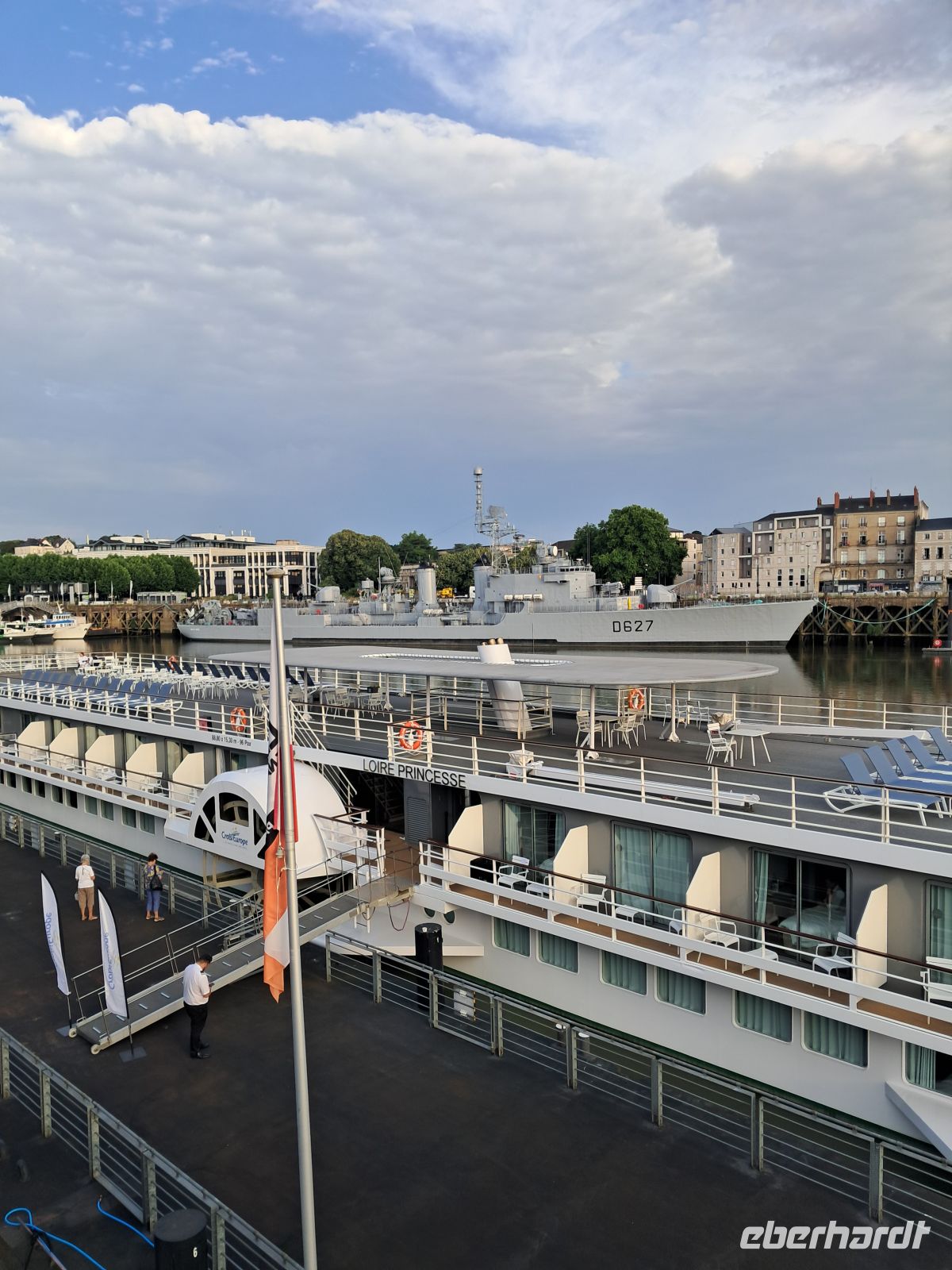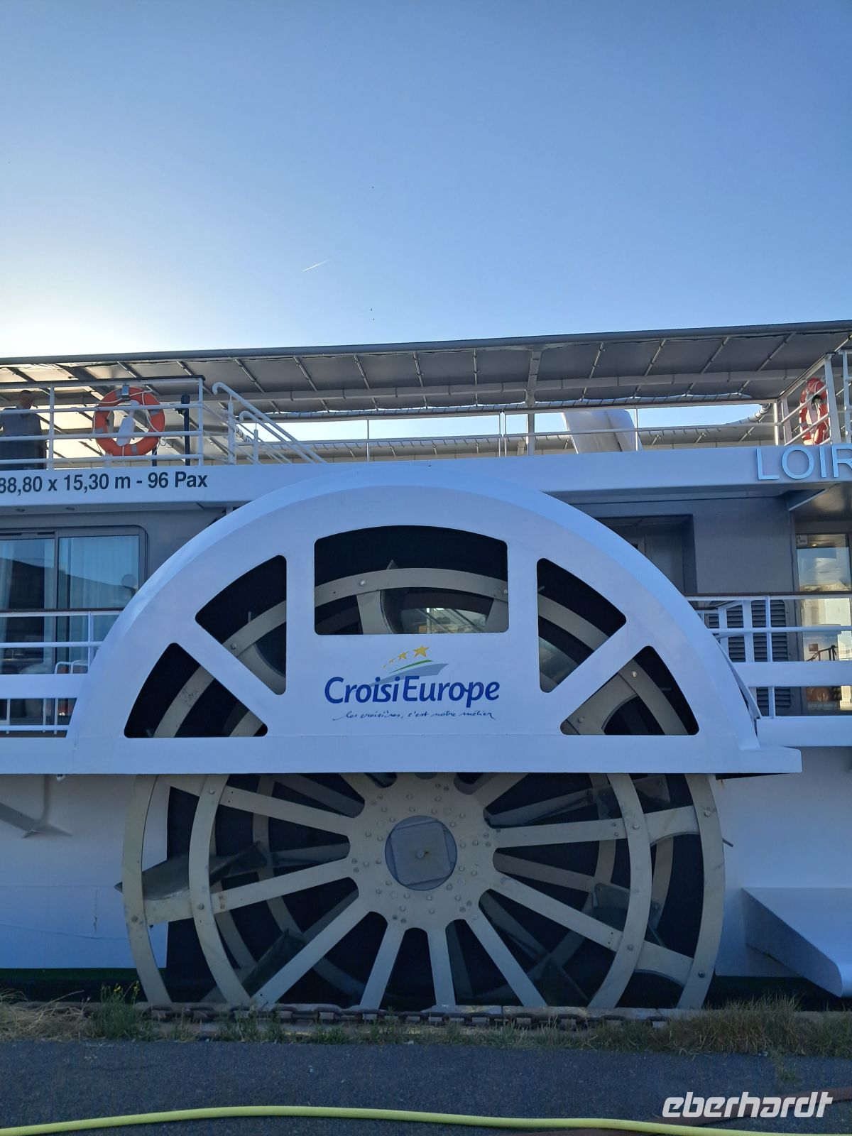 Von Villandry ging es schnurstracks über die Autobahn nach Nantes, wo die Princesse mit ihren beiden Schaufelrädern auf uns wartete. Willkommen an Bord und Leinen los Richtung Saint-Nazaire. Schauen Sie sich unbedingt das Bild mit dem Sonnenuntergang an, das ist absolut echt!