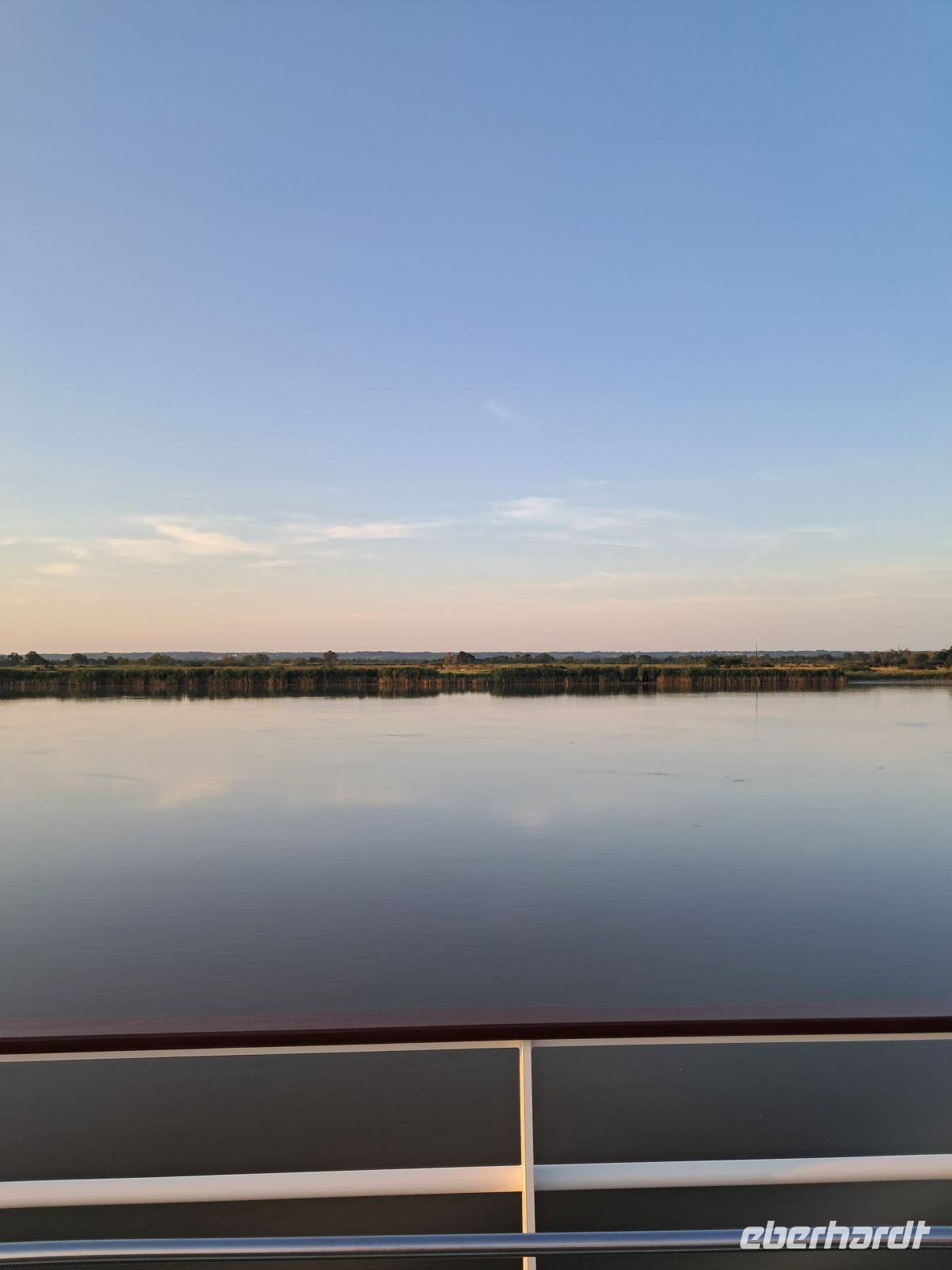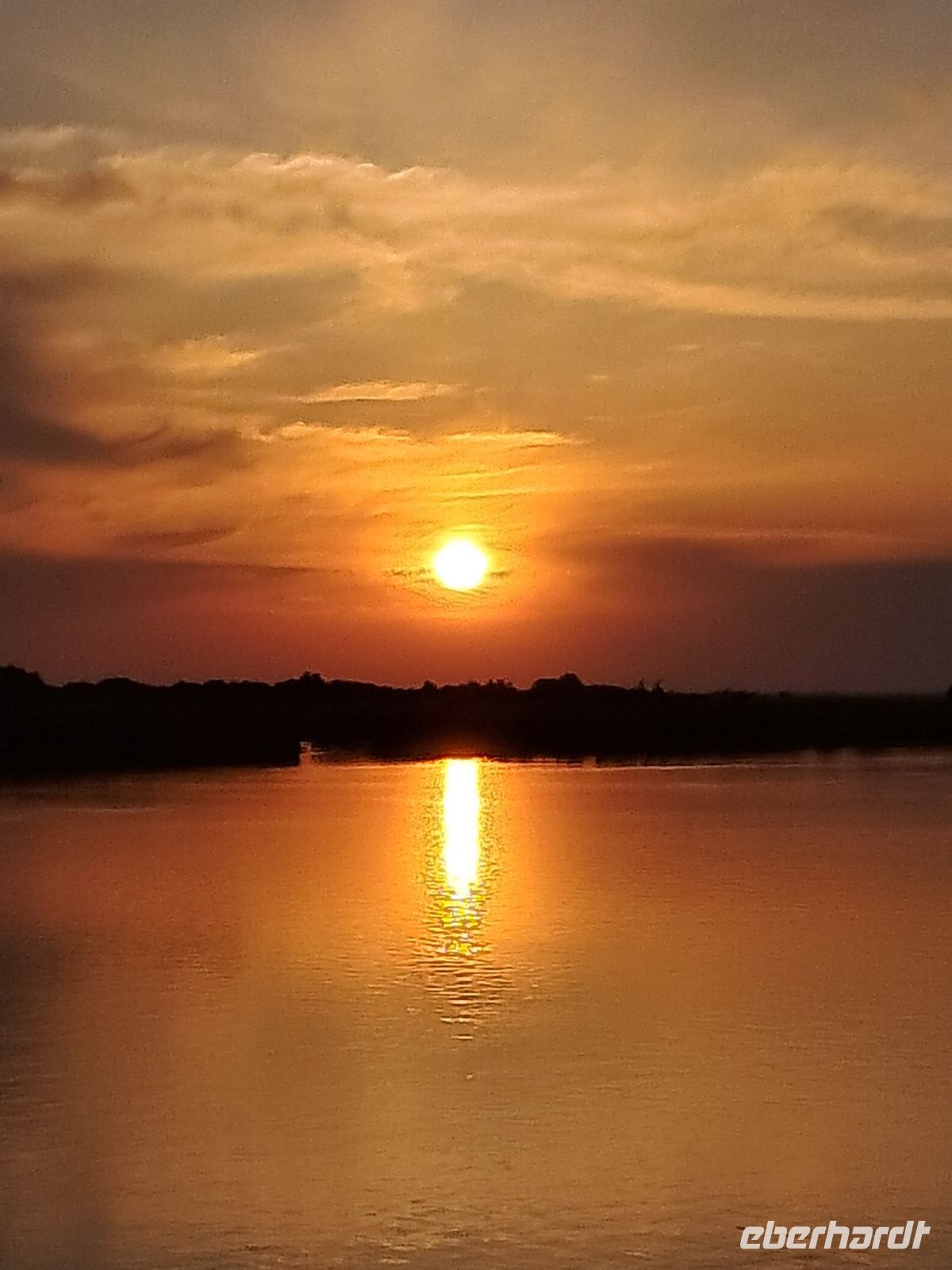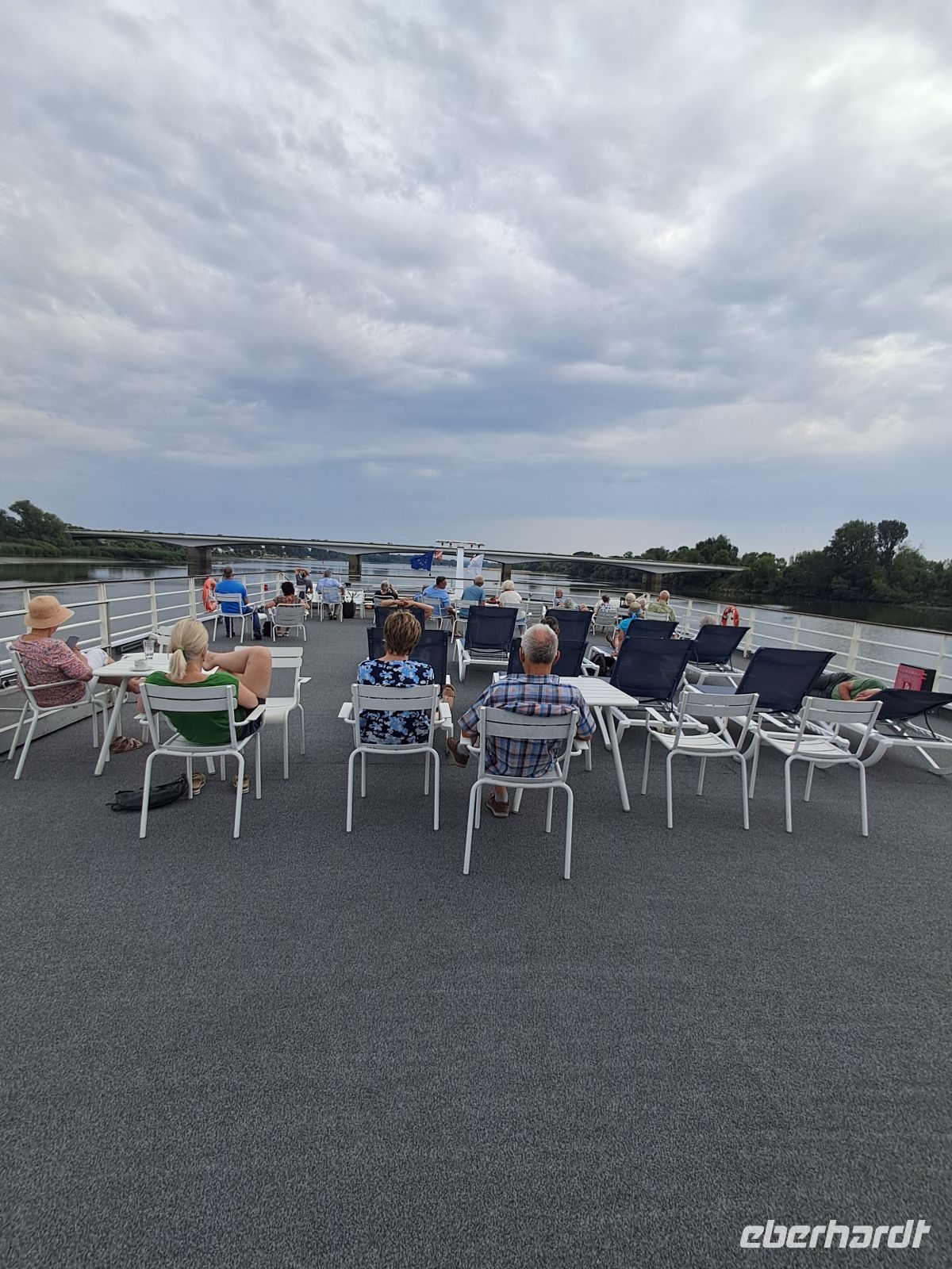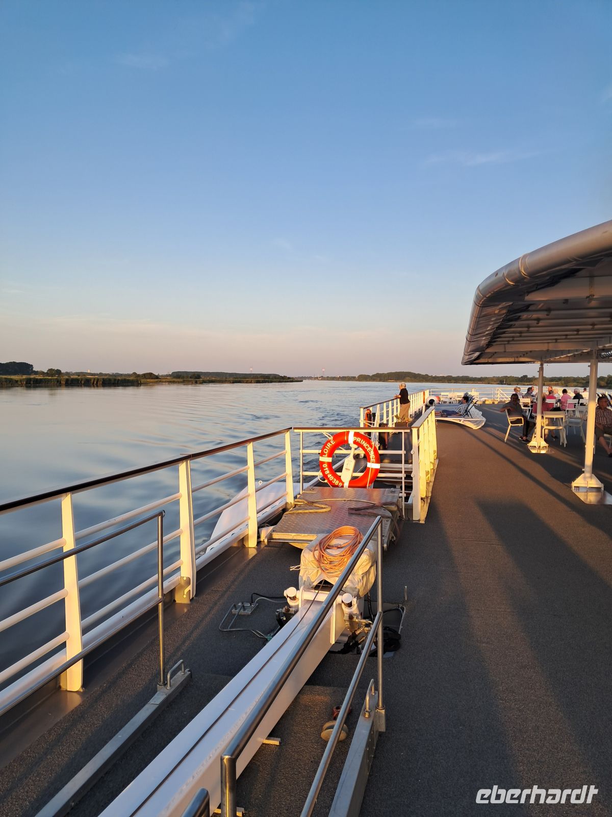 Von Villandry ging es schnurstracks über die Autobahn nach Nantes, wo die Princesse mit ihren beiden Schaufelrädern auf uns wartete. Willkommen an Bord und Leinen los Richtung Saint-Nazaire. Schauen Sie sich unbedingt das Bild mit dem Sonnenuntergang an, das ist absolut echt!