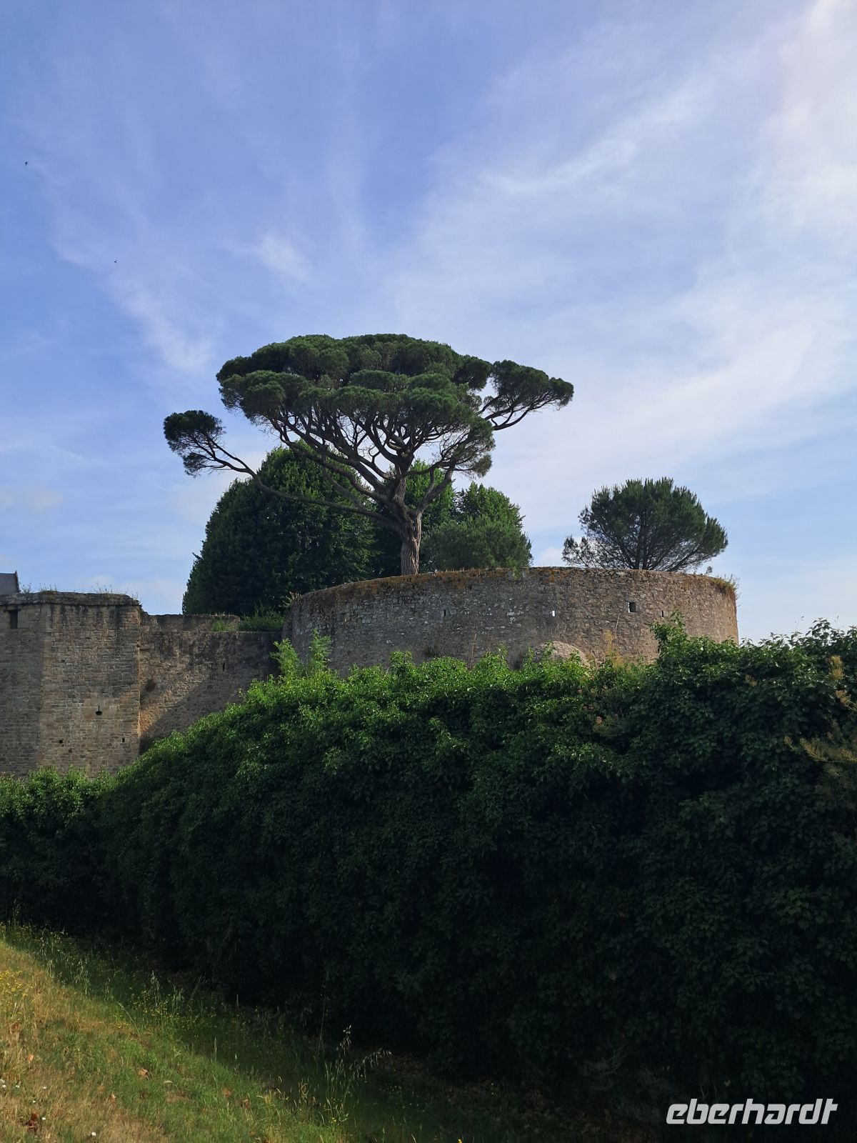 Der erste Blick aus dem Boot heraus in Saint-Nazaire ist nicht unbedingt der Hit. Ein schmuckloser Parkplatz und daneben der riesige U-Boot-Bunker aus dem Zweiten Weltkrieg. Nein, wir hatten keine Zeit ihn zu erkunden. Denn an diesem Morgen stand der Besuch der mittelalterlichen Städtchens Guerande an, das mit Salzgewinnung in seinem Umland damals so reich wurde, dass es sich eine befestigte Stadtmauer leisten konnte, die bis heute so im Original vorhanden ist.