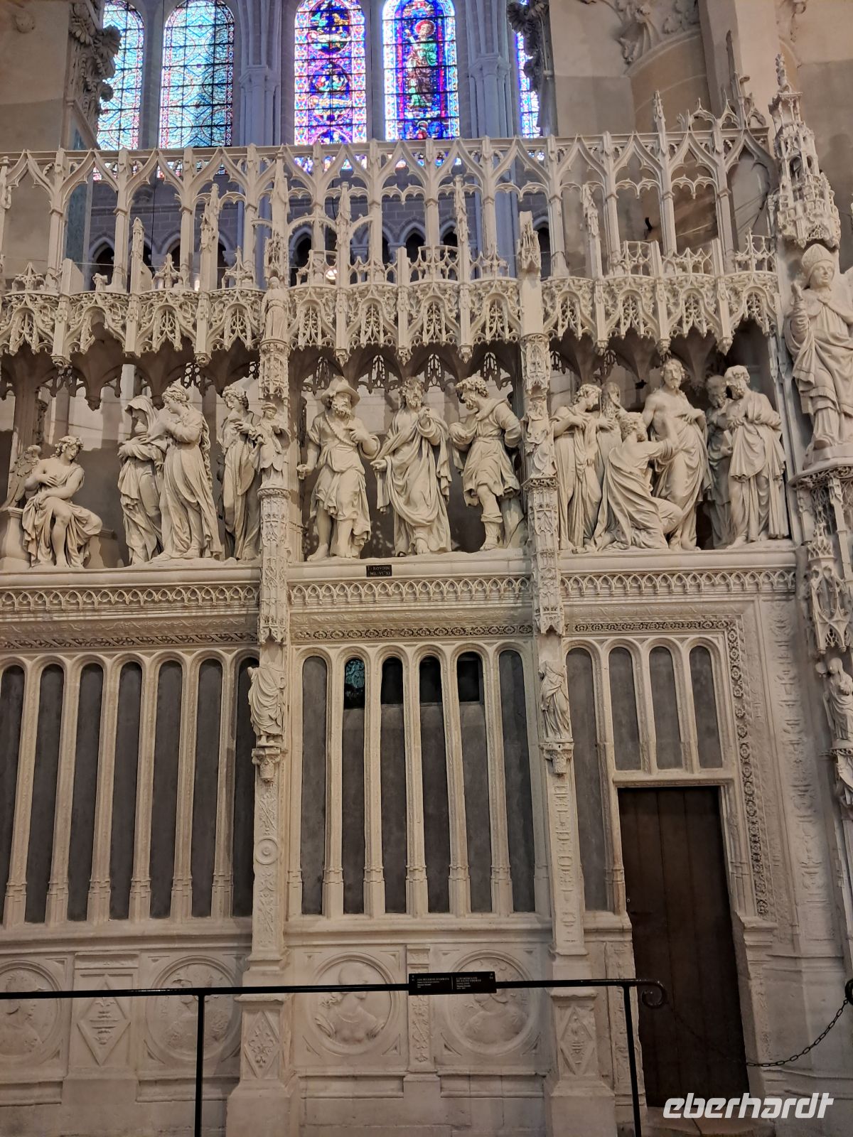 Die Kathedrale von Chartes, da liegt sie auf halbem Weg zwischen Nantes und Paris. Der Blick auf dieses Kunstwerk der Superlative ist wie seit dem 13. Jahrhundert unversperrt und unverbaut. So gut wie alles ist noch im Original erhalten, insbesondere die Fenster mit dem berühmten Chartres-Blau. Auguste Rodin nannte sie die Akropolis von Frankreich, zurecht, man muss die Kathedrale von Chartres einmal im Leben gesehen haben.
