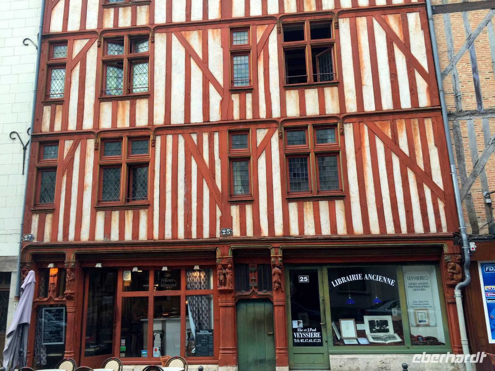 In der Rue de Commerce sehen wir das Haus, wo Jeanne d'Arc (die Jungfrau von Orléans) ihre Rüstung bekam, um das demoralisierte französische Heer für die Schlacht gegen die Engländer im Hundertjährigen Krieg zu motivieren. Die Westfassade der Kathedrale Saint Gatien wurde im 13. Jahrhundert begonnen und in der Spätgotik beendet. Sie gilt mit ihrem reichen Schmuckwerk sowie den zahlreichen Fialen als eines der prächtigsten und reichsten Beispiele des Flamboyant-Stils. Ihre wundervollen Fenster, immer wieder zu Kriegszeiten rechtzeitig ausgebaut und eingelagert, sind Zeugnis der Bleiglaskunst des Mittelalters.