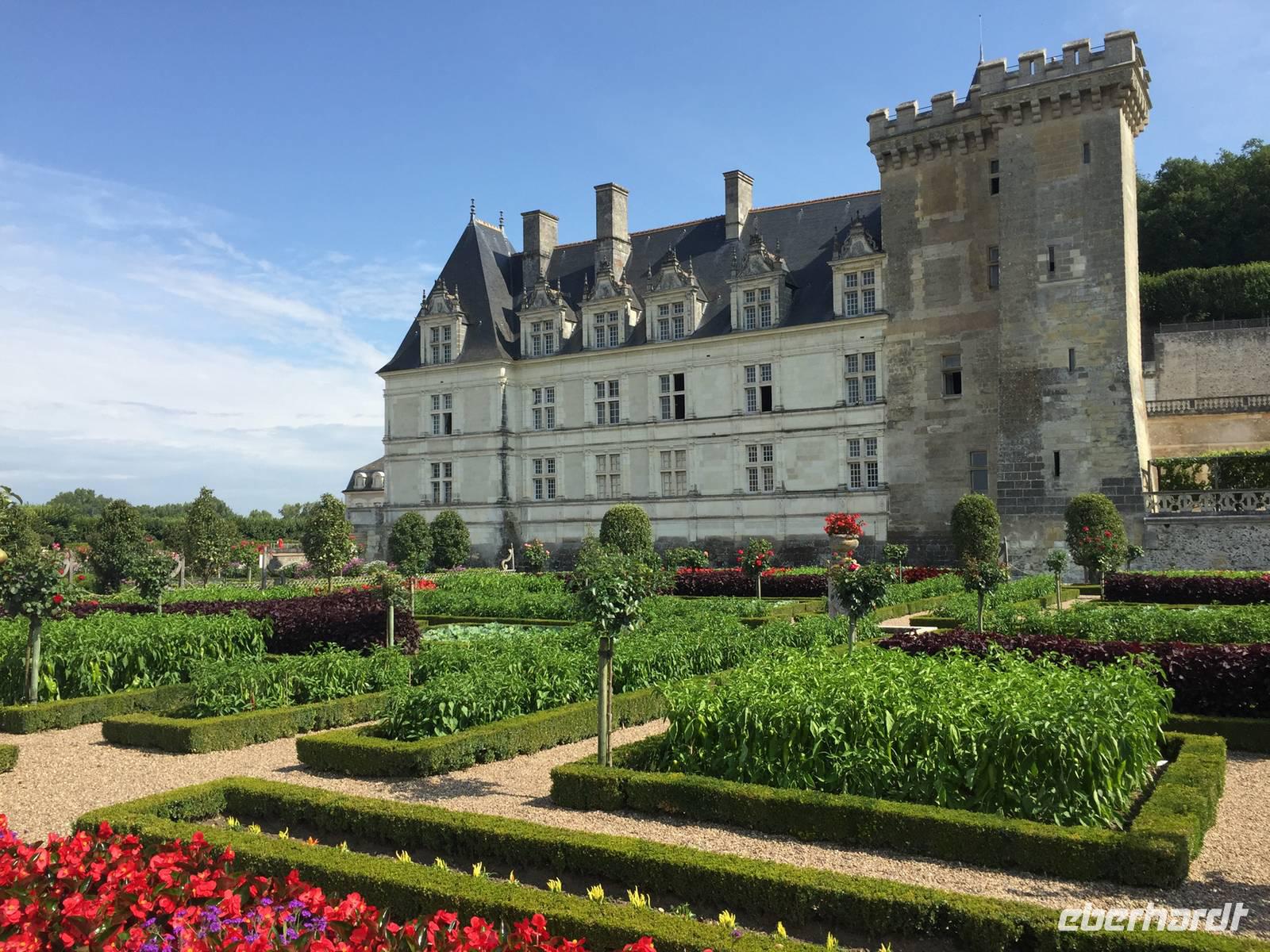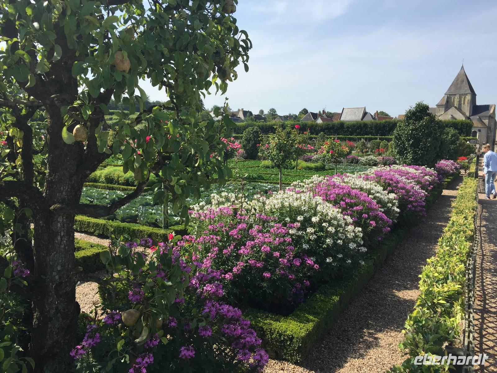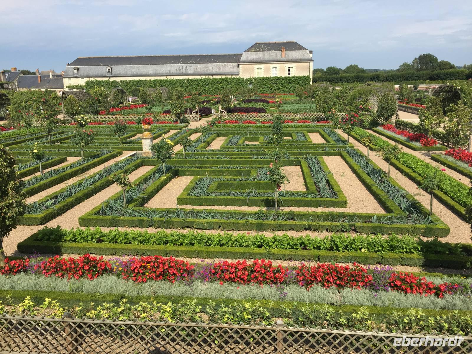 Den Zauber der Renaissance-Gärten kennen wir aus alten Stichen, keine der ursprünglichen Anlagen ist erhalten geblieben. Um so bedeutsamer ist der zu Beginn des 20. Jahrhunderts nachgeschaffene Garten von Villandry. Wir staunen über die weitläufige Garten- und Parkanlage, die sich über drei Ebenen erstreckt: Küchengarten, Ziergarten und Wassergarten.