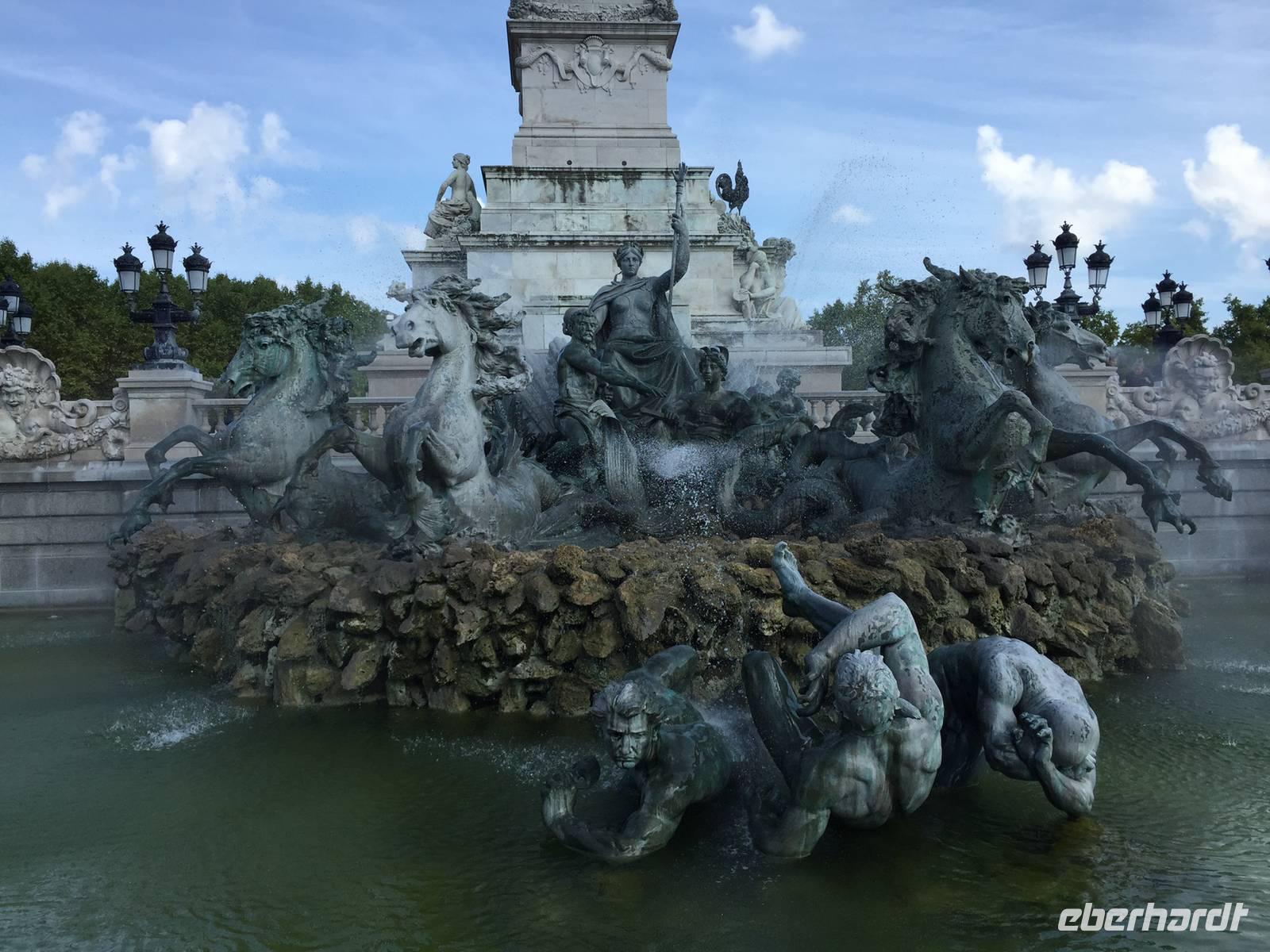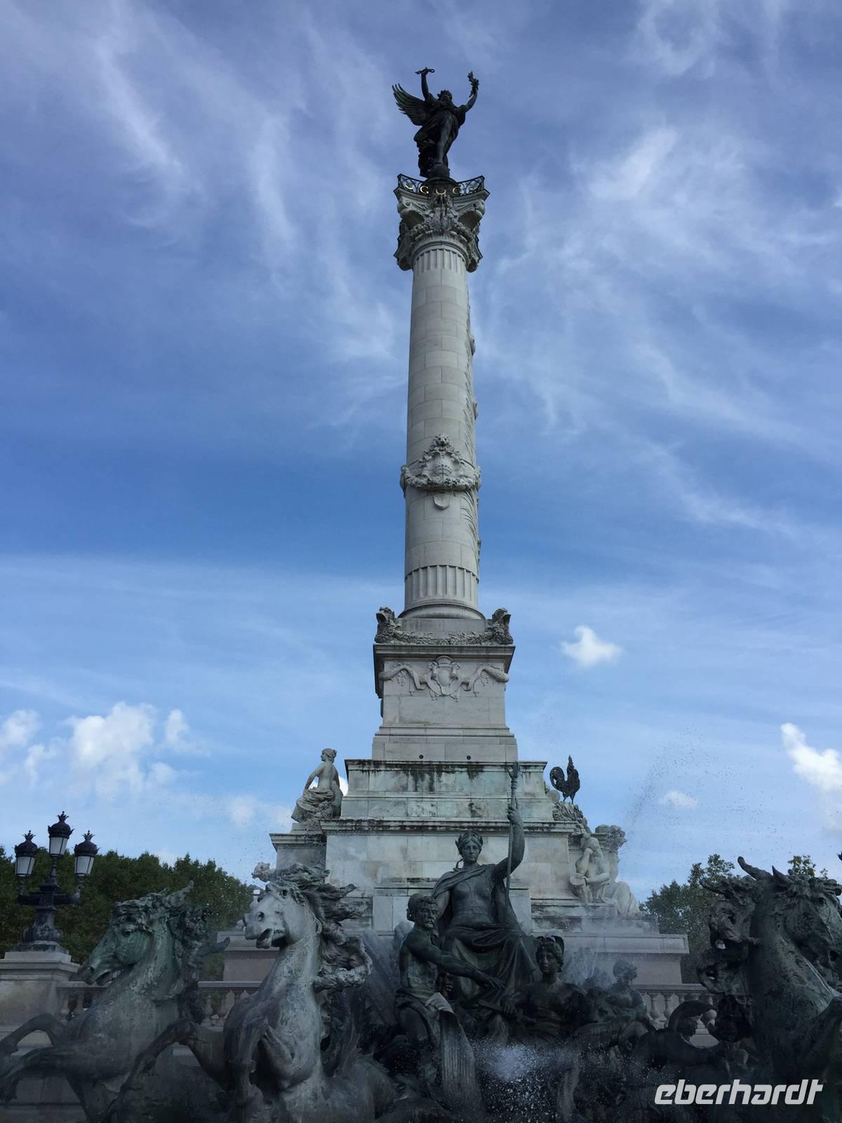 An der über vierzig Meter hohen Denkmalssäule der Girondisten endet unser Stadtrundgang. Das Mahnmal erinnert an die unter Robespierres Terrorregime enthaupteten Mitglieder der Gruppierung, die vergebens versucht hatte, das Blutvergießen der Revolution zu beenden. Der Freiheitsengel auf der Spitze sprengt seine Ketten mit der linken Hand. Die rechte hält die Palmzweige der Freiheit.