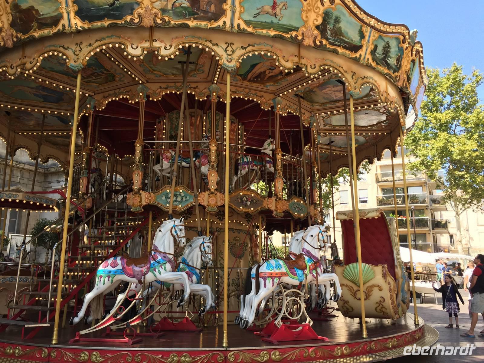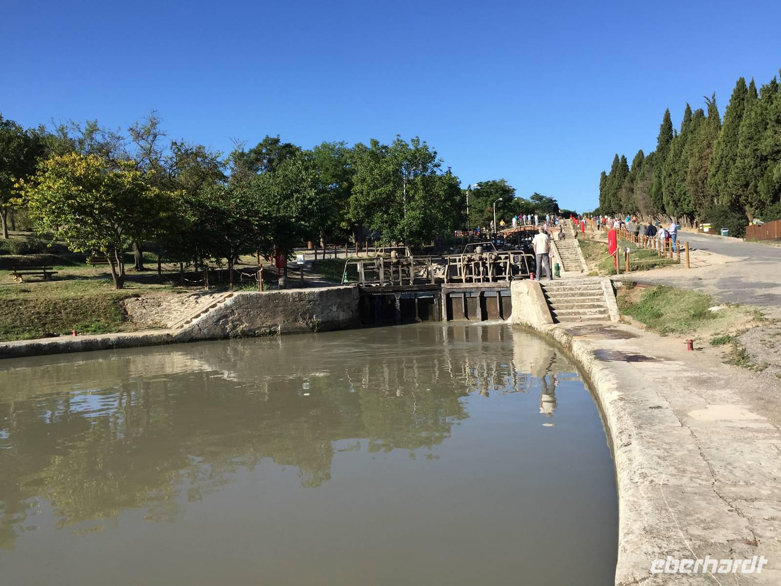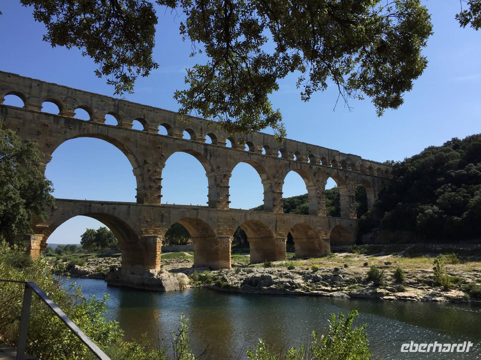 Wir setzen unsere Fahrt fort und erreichen etwa 25 Kilometer nordöstlich von Nîmes den Pont du Gard - den beeindruckenden römischen Aquädukt mit fünfzig Metern Höhe, welcher um die Zeitenwende aus massivem Felsgestein ohne Mörtel errichtet wurde und bis heute im Original erhalten ist. Er war Teil einer etwa fünfzig Kilometer langen Wasserleitung, die mit einem Gefälle von nur 0,03 Grad Wasser nach Nîmes transportierte.