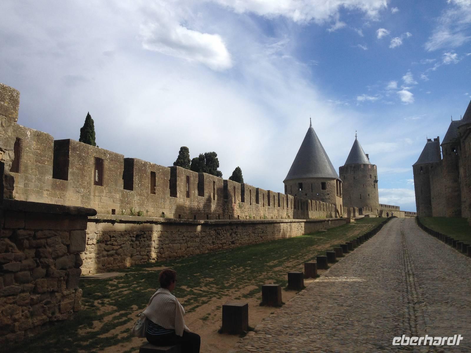 Schon als wir uns Carcassonne nähern, sind wir von der markanten Silhouette der mittelalterlichen Festungsstadt beeindruckt - auch wenn sich Violet-Le-Duc bei der Restaurierung nicht an die ursprüngliche Architektur gehalten hat. Der befestigte Teil von Carcassonne liegt am Steilufer der oberhalb der Aude und ist ein großartiges Beispiel mittelalterlicher Festungsbaukunst. Die strategische Lage zwischen Atlantik und Mittelmeer, am Übergang der iberischen Halbinsel zum übrigen Europa, führte zur ersten Besiedelung. Die Stadtburg ist von einer doppelten Ringmauer mit 54 Türmen umgeben. Aufgrund der Restaurierung im 19.Jahrhundert ist die Anlage in sehr gutem baulichem Zustand, zahlreiche Läden und Cafés laden ein, in den mittelalterlichen Gassen zu verweilen.