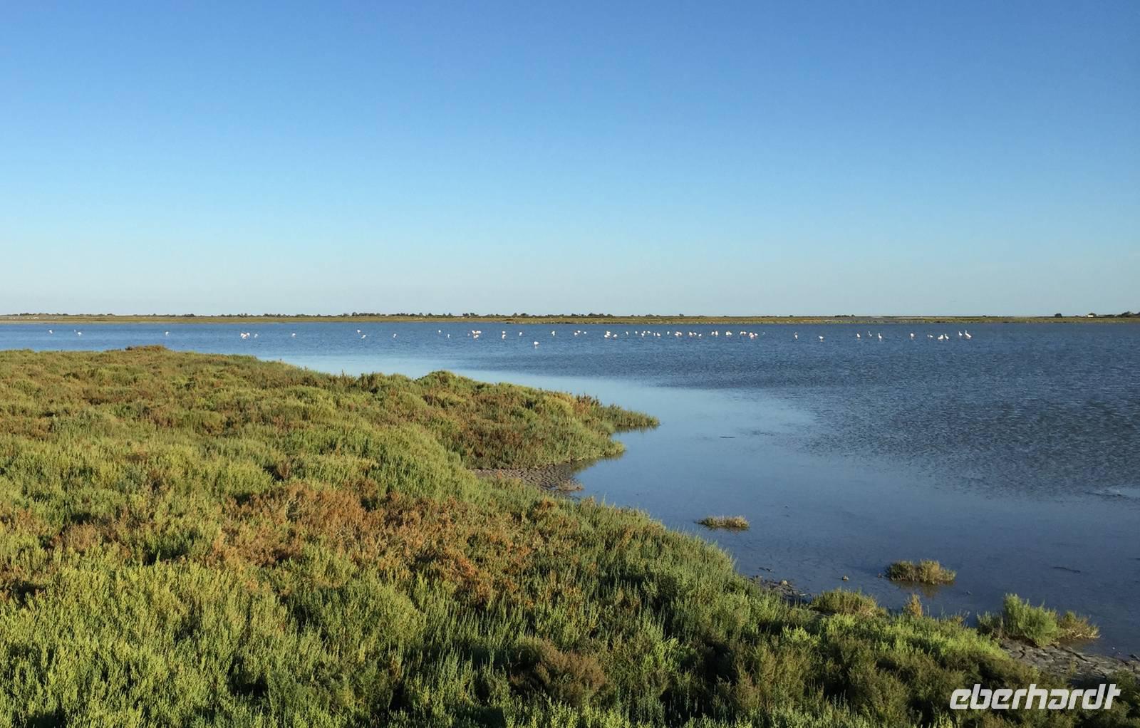 Am frühen Morgen setzen wir unsere Reise durch das Roussillon über enge Regionalstraßen durch verschlafene Dörfer zur Abbaye de Valmagne fort. Das in der ersten Hälfte des 12. Jahrhundert als Benediktinerabtei gegründete Kloster liegt mitten in den Weinbergen des Languedoc. Bereits wenige Jahre nach der Gründung bemühte sich der zweite Abt um den Anschluss an Citeuax, da dieser sehr junge Orden bereits einen ungeheuren Aufschwung erlebte. Frommes Ziel der Zisterzienser war die Rückkehr zu den ursprünglichen Regeln des Gründers: Armut, Buße und Zurückgezogenheit - gar nicht so weit entfernt von den Dogmen der Katharer. Trotzdem unterstützte Valmagne ab dem Jahr 1208 die katholische Kirche in ihrem Kampf gegen die Katharer. Die zahlreichen Burrgen im Roussillion geben heute noch beeindruckend Zeugnis dieser Geschichtsepoche. Nun befindet sich das Kloster bereits seit 150 Jahren in Familienbesitz. Es wurde in der zweiten Hälfte des 19. Jahrhunderts restauriert und seit mehr als zwanzig Jahren wird der dazugehörige Weinberg ökologisch bewirtschaftet. Im Anschluss an die Führung probieren wir einige Jahrgänge und Cuvées.Die Fahrt geht weiter in Richtung Camargue, vorbei an Montpellier und der futuristischen Ferienstadt La Grande Motte, welche in den sechziger Jahren gebaut wurde. Das Delta zwischen den beiden Hauptmündungsarmen der Rhône besteht aus Sumpf, Wiesen, Marschland, Dünen und Salzfeldern. Wir haben Glück und sehen alle Symbole der Camargue: die rosafarbenen Flamingos, die schwarzen Stiere und die weißen Pferde. Die Salzgewinnung und der Reisanbau spielten früher eine wichtige wirtschaftliche Rolle. Die Cabane ist das die typischen Wohnhaus mit einer speziellen Dachkonstruktion, die dem Mistral standhält.