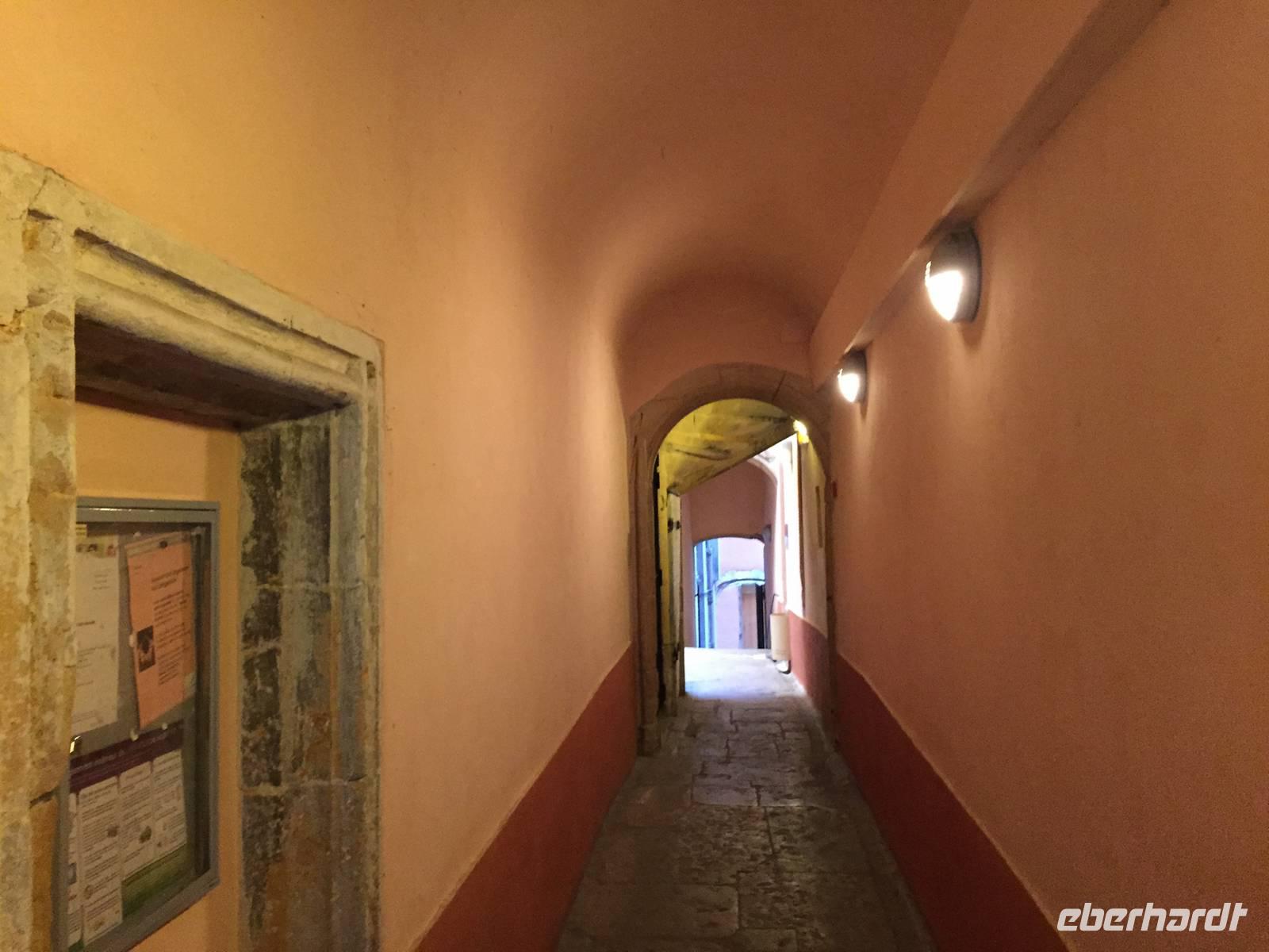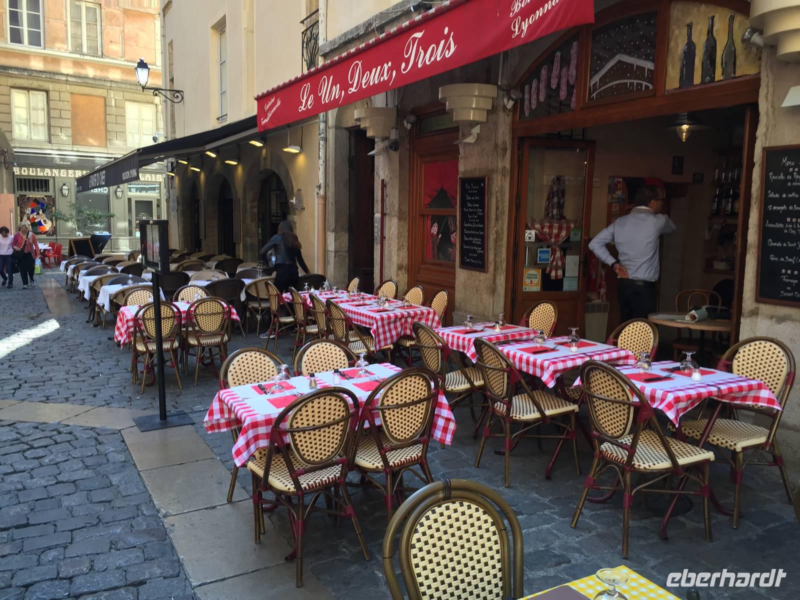 An der Place Bellecour treffen wir unsere Stadtführerin, die uns mit ihrem französischen Charme Lyon zeigt. Zunächst genießen wir vom Hügel Fouvriere einen schönen Blick auf die Hauptstadt der Region Rhône-Alpes am Zusammenfluss von Saône und Rhone - an besonders klaren Tagen kann man sogar den Mont-Blanc sehen! Die Basilika Notre-Dame-de-la-Fourvière (1896) ist im Inneren reich mit Mosaiken und Malereien geschmückt. Sie stellt eines der schönsten Beispiele des romanisch-byzantinischen Stils dar. Anschließend bummeln wir durch die Gassen und Traboules. Letzteres ist typisch für Lyon: Durch diese schmalen Durchgänge konnten die Tuchballen im Trockenen befördert werden, später dienten sie auch als Fluchtwege. Insgesamt gibt es über 300 solche private Gänge mit insgesamt 50 Kilometern Länge.