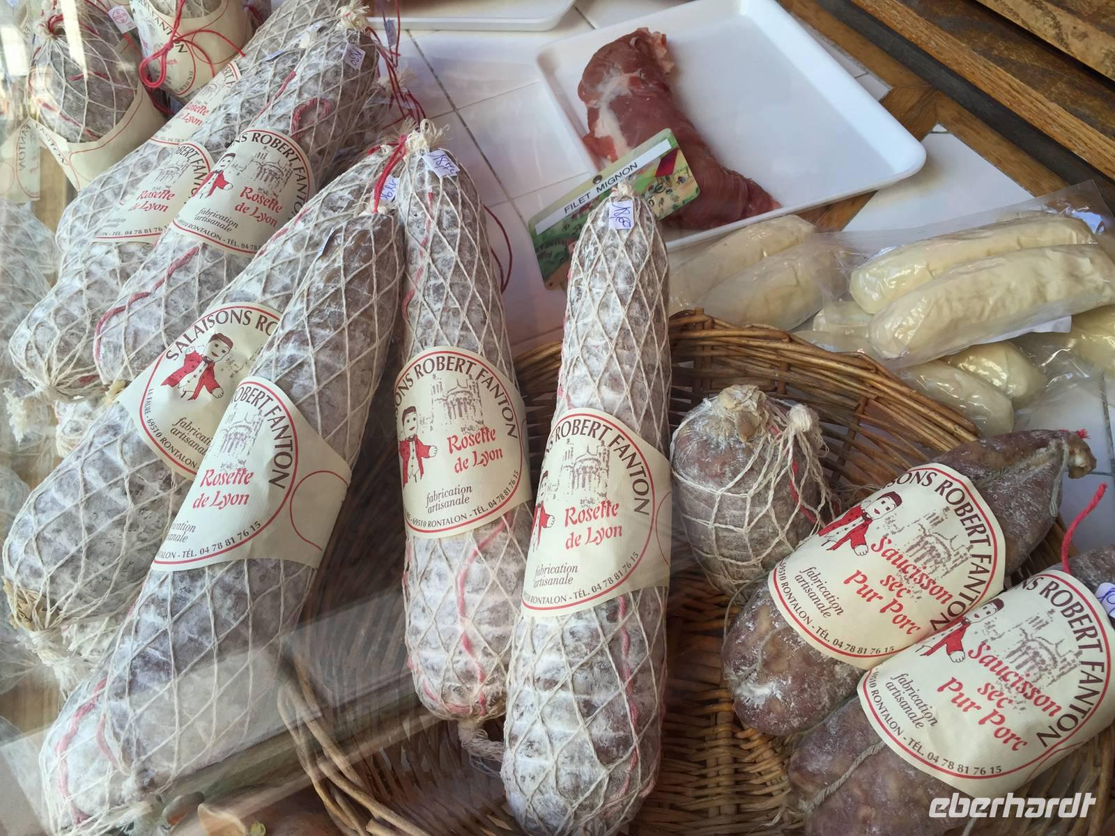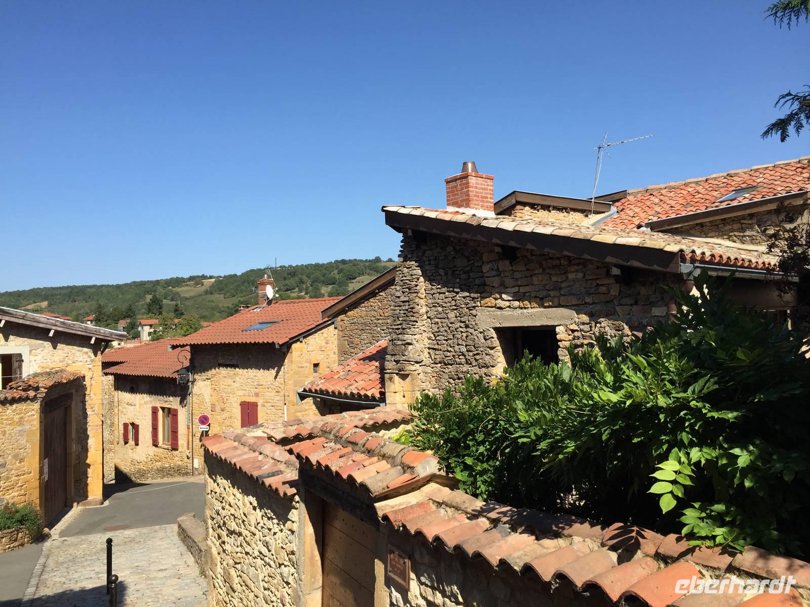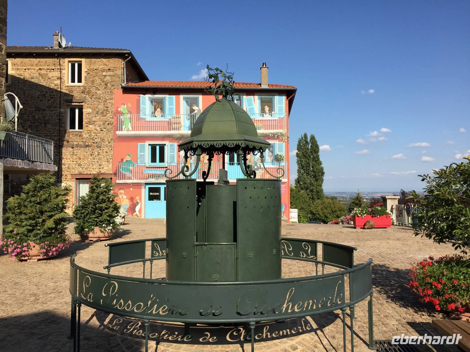 Nach dem Mittagessen in einem der gemütlichen und für ihre Qualität bekannten Bistros, die in Lyon "Bouchons" genannt werden, starten wir eine Rundfahrt durch das berühmte Weinanbaugebiet des Beaujolais. Wir besichtigen den kleinen Ort Oingt, von dessen Kirchplatz wir einen wunderschönen Blick auf die Hügellandschaft mit Weinbergen und Feldern haben. An besonders exponierter Stelle steht die Wallfahrtskapelle der Winzer. Durch das waldreiche Hinterland erreichen wir in der schönen Nachmittagssonne Vaux en Beaujolais. Dieses Winzerdorf hat Gabriel Chevallier zu seinem unvergesslichen Roman Clochemerle inspiriert.?Im Schatten einer Pergola mit Blick über die Hügel und auf das bekannteste "Bauwerk" von Clochmerle probieren wir den gleichnamigen Wein, Ziegenkäse aus Rocamadour sowie "Rosette de Lyon", die bekannteste Lyoner Salami, welche aus Schweineschinken hergestellt und traditionell in dicken Scheiben serviert wird.