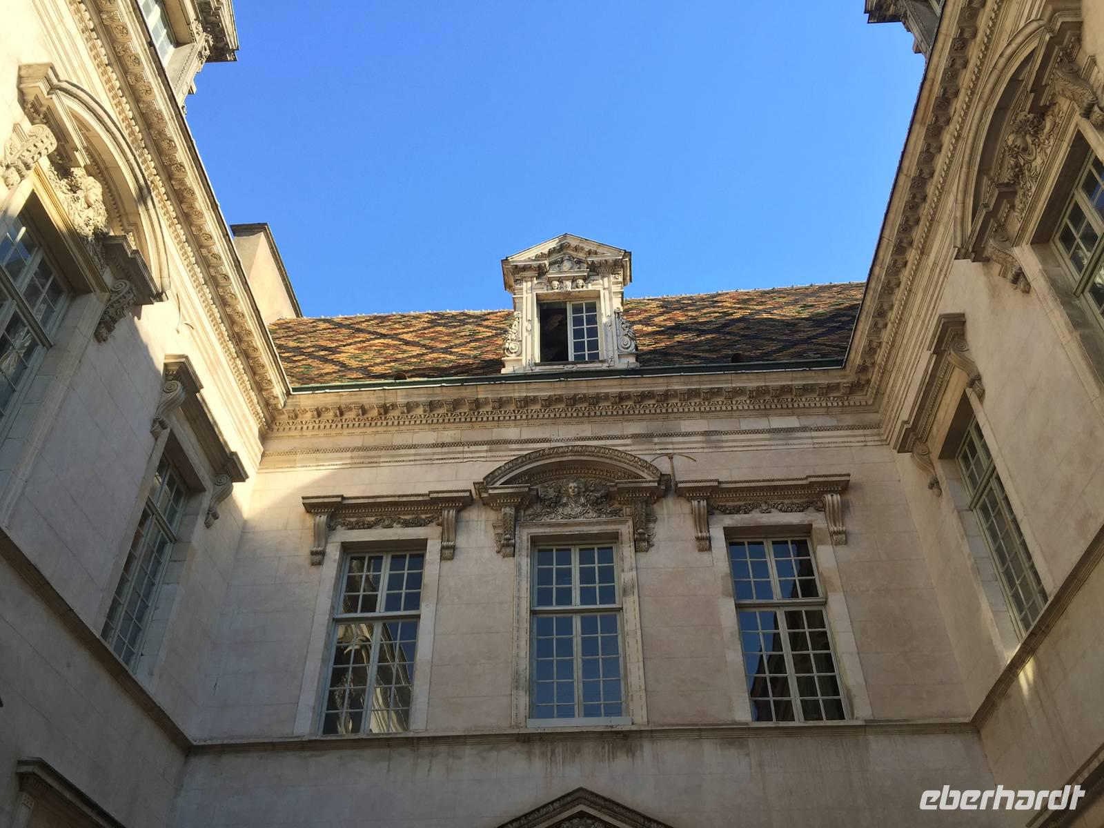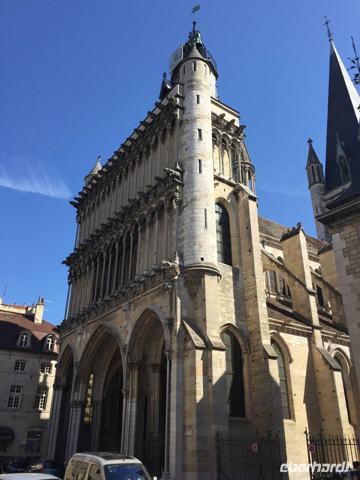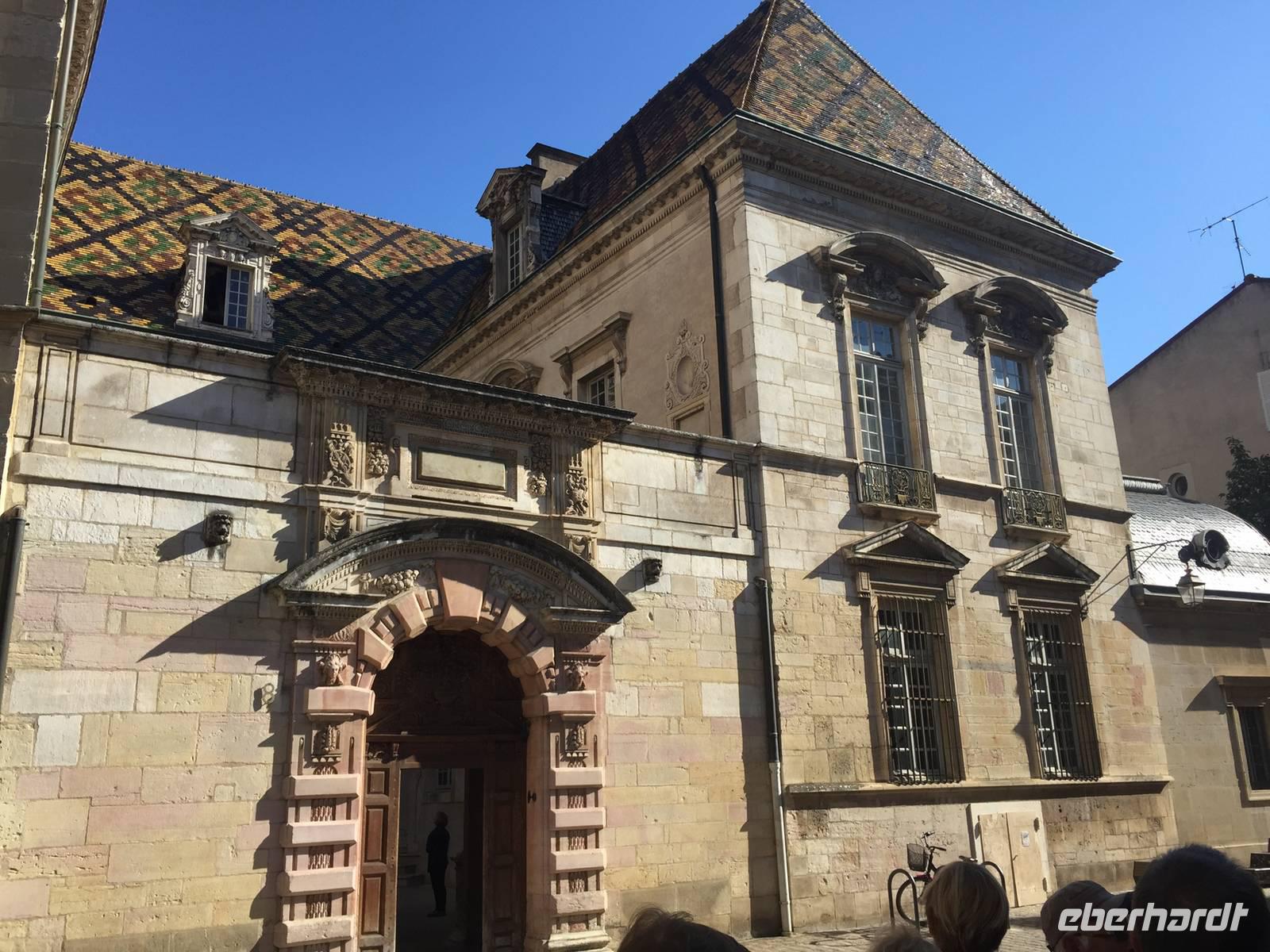 Anschließend geht die Reise weiter nach Beaune. Südlich von Dijon gelegen, gehört die Stadt wegen ihrer mittelalterlichen Bauten zu den schönsten Zielen im Burgund. Das Hotel-Dieu ist die bekannteste Sehenswürdigkeit: Ein im burgundisch-flämischen Stil erbautes Hospiz, gestiftet vom burgundischen Kanzler Nicolas Rolin. Die schlichte Außenfassade verrät wenig von der Pracht, die sich im Innenhof entfaltet: Hohe, mit farbig glasierten Ziegeln gedeckte Dächer mit geometrischen Mustern umgeben einen malerischen Innenhof. In den Innenräumen beeindruckt der große Krankensaal mit seinen Holzeinbauten sowie der berühmte Flügelaltar (1443) mit der Darstellung des Jüngsten Gerichts von Rogier van der Weyden.