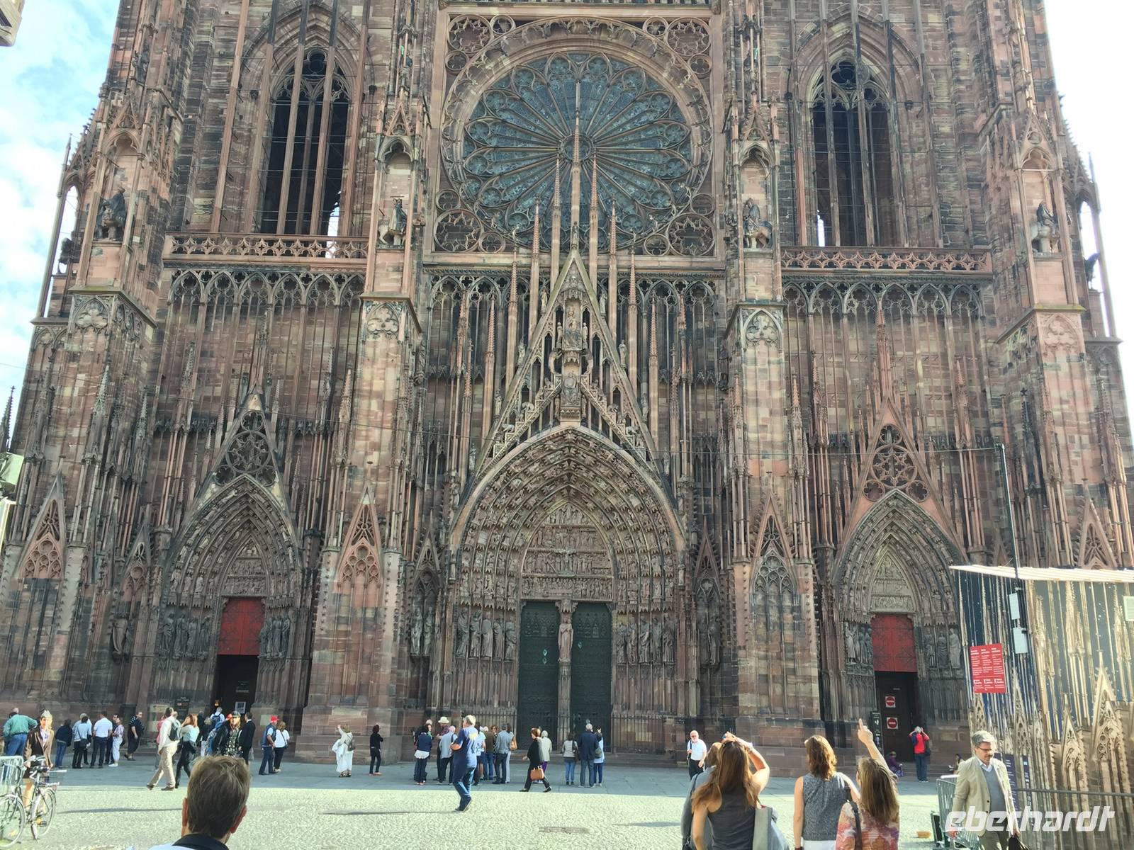 Der kulturelle und wirtschaftliche Mittelpunkt des Elsass empfängt uns bei wunderschönem Wetter. Zunächst sehen wir vom Bus aus einige Gebäude des Europäischen Parlamentes und den Europarat.Goethe hat über das Münster geschrieben: „ Je mehr ich die Fassade desselben betrachte, desto mehr bestärkte und entwickelte sich jener erste Eindruck, dass hier das Erhabene mit dem Gefälligen in Bund getreten sei." Der rote Sandstein der Vogesen prägt das äußere Bild in der von Goethe beschriebenen Art. Wir besichtigen auch die Astronomische Uhr, welche eine äußerst beliebte Sehenswürdigkeit des Münsters ist.