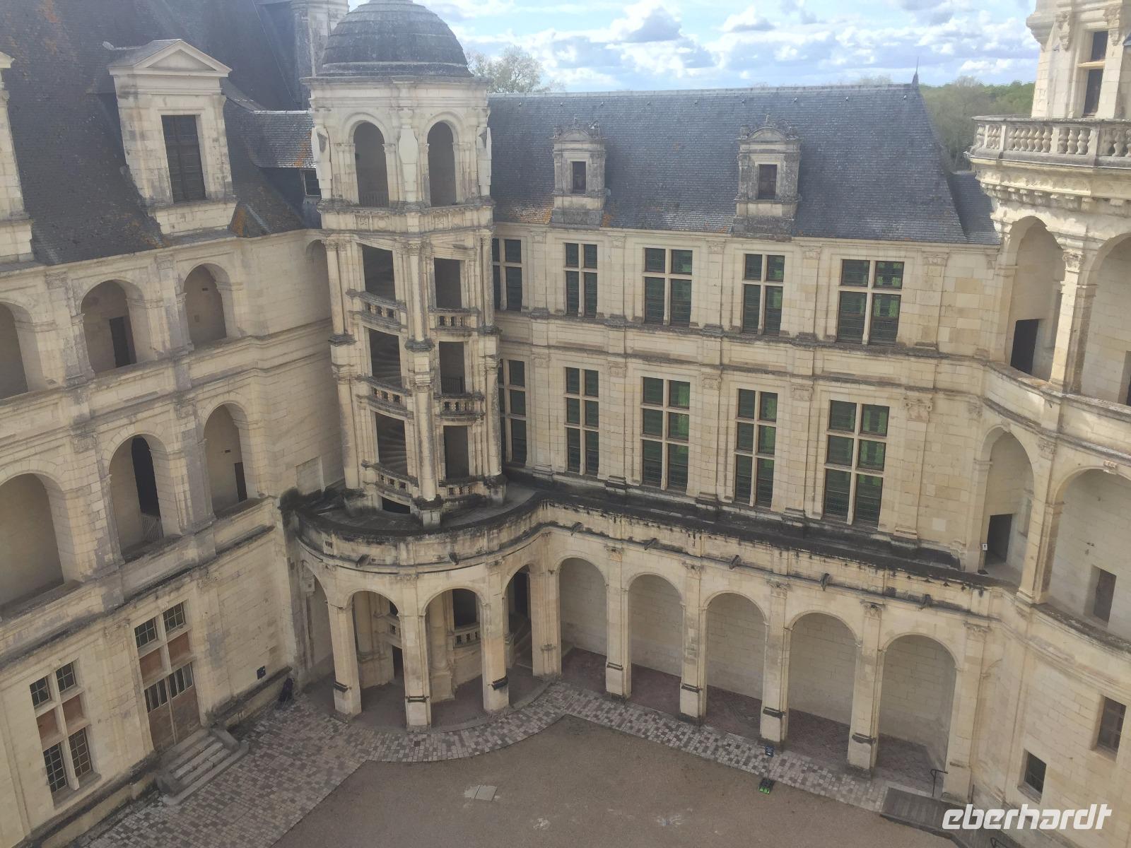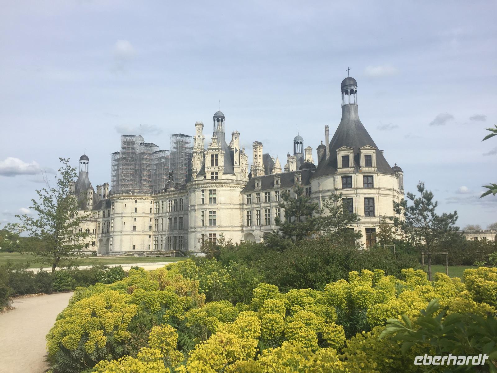Das Schloss Chambord, die größte Königsresidenz an der Loire, liegt gar nicht direkt an der Loire, sondern an einem kleinen Nebenfluss, dem Cosson. Inmitten eines riesigen Jagdgebiets war es als Vergnügungs- und Lustschloss ideal gelegen und sollte höchste repräsentative Zwecke für Franc¸ois I erfüllen - welcher aber letztendlich nur etwa 80 Tage in dem riesigen Komplex verbrachte - er hatte einfach zu viele andere Termine!