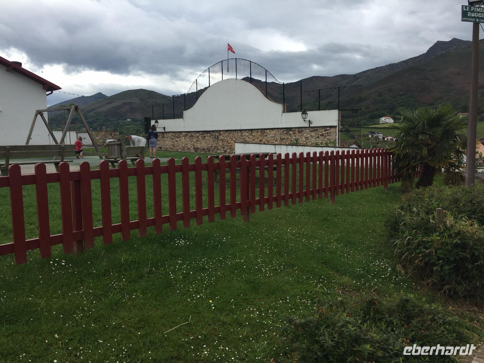 Die Hinweisschilder sind gespickt mit Zungenbrechern und selbst die Schrift weist einige eigenwillige Varianten des lateinischen Alphabets auf: Die baskische Sprache müssen wir zum Glück nicht beherrschen, wir haben einen lokalen Busfahrer, da unser Fahrer Maik auch heute einen Ruhetag einlegen muss und darf. Nach einer kurzen Anfahrt gelangen wir mit der nostalgischen Zahnradbahn von 1924 auf den 900 Meter hohen Pyrenäengipfel La Rhune, welcher das Wahrzeichen des französischen Teils des Baskenlandes ist. Der Name "Iarrun" bedeutet "gutes Weideland" und auf den sogenannten „Touyas", der Heidelandschaft mit Steckginster und Farnen, welche wir bei der Zugfahrt passieren, grasen die Pottok-Ponys. Ein herrlicher, leider nicht ganz regenfreier Rundblick über das Meer, die baskischen Pyrenäen und im Süden in das Tal der Bidassoa erwartet uns auf dem Gipfel .