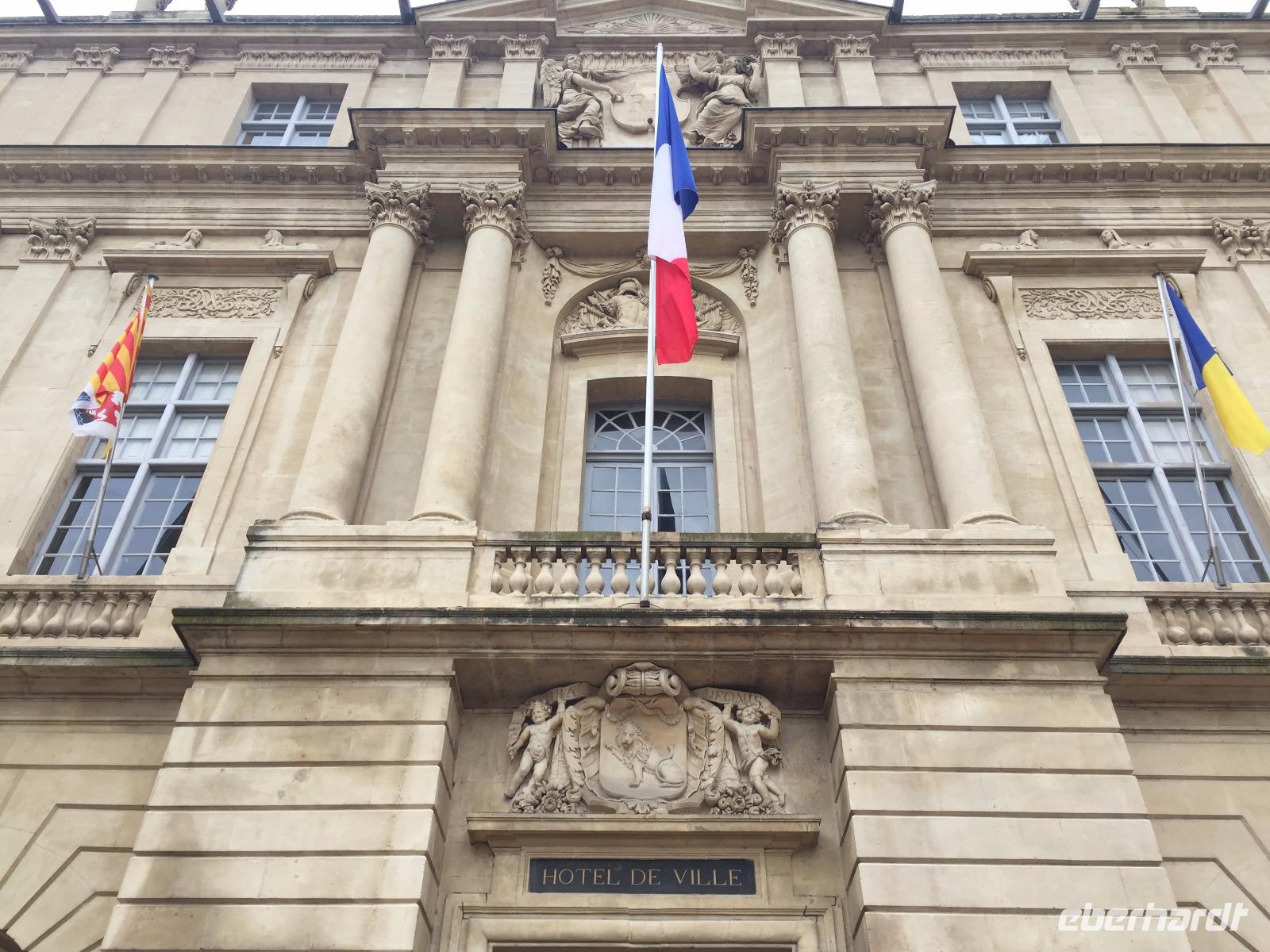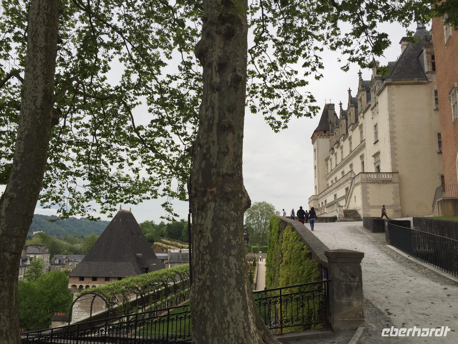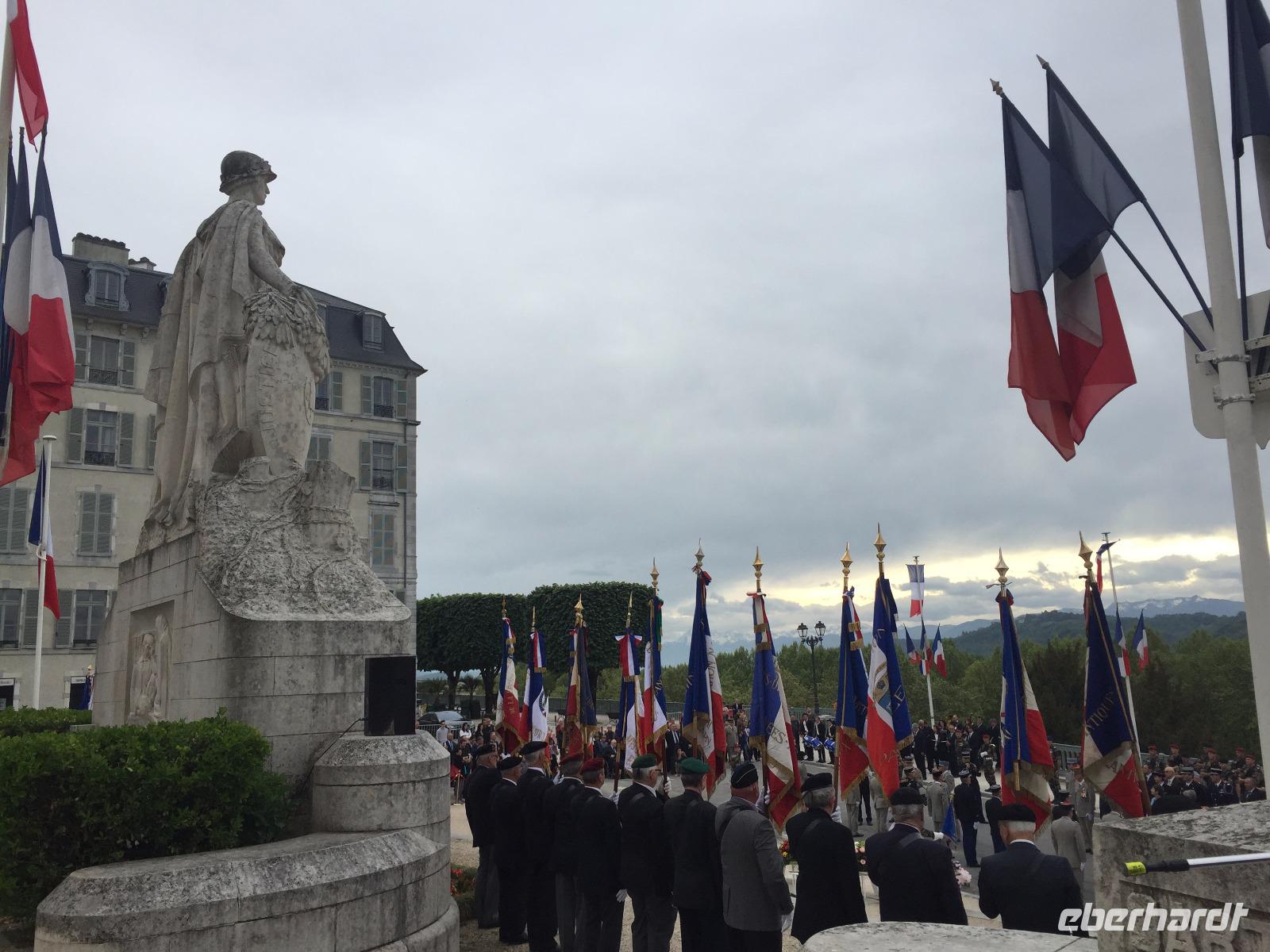 Vor allem ist Pau als Geburtsort von Heinrich IV. von Frankreich und Navarra bekannt. Die größte bauliche Attraktion ist das Schloss, welches im 14. Jahrhundert begonnen, aber 400 Jahre später komplett umgebaut wurde, sodass es eine eklektische Silhouette erhielt. Heute ist der 8.Mai, an welchem in allen Städten Frankreichs -selbst in den kleinsten- mit Militärparaden an das Kriegende erinnert wird. Vor dem Rathaus von Pau können wir eine imposante Veranstaltung mit Militärkapelle und dem Überreichen zahlreicher Orden im Angesicht der nahen Pyrenäenengipfel erleben.