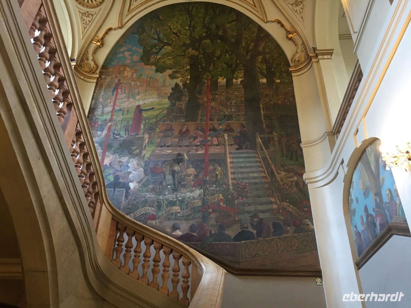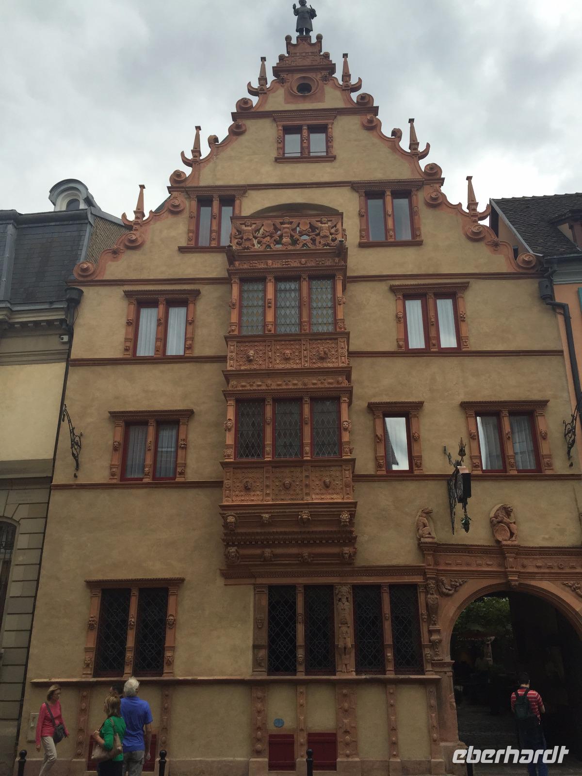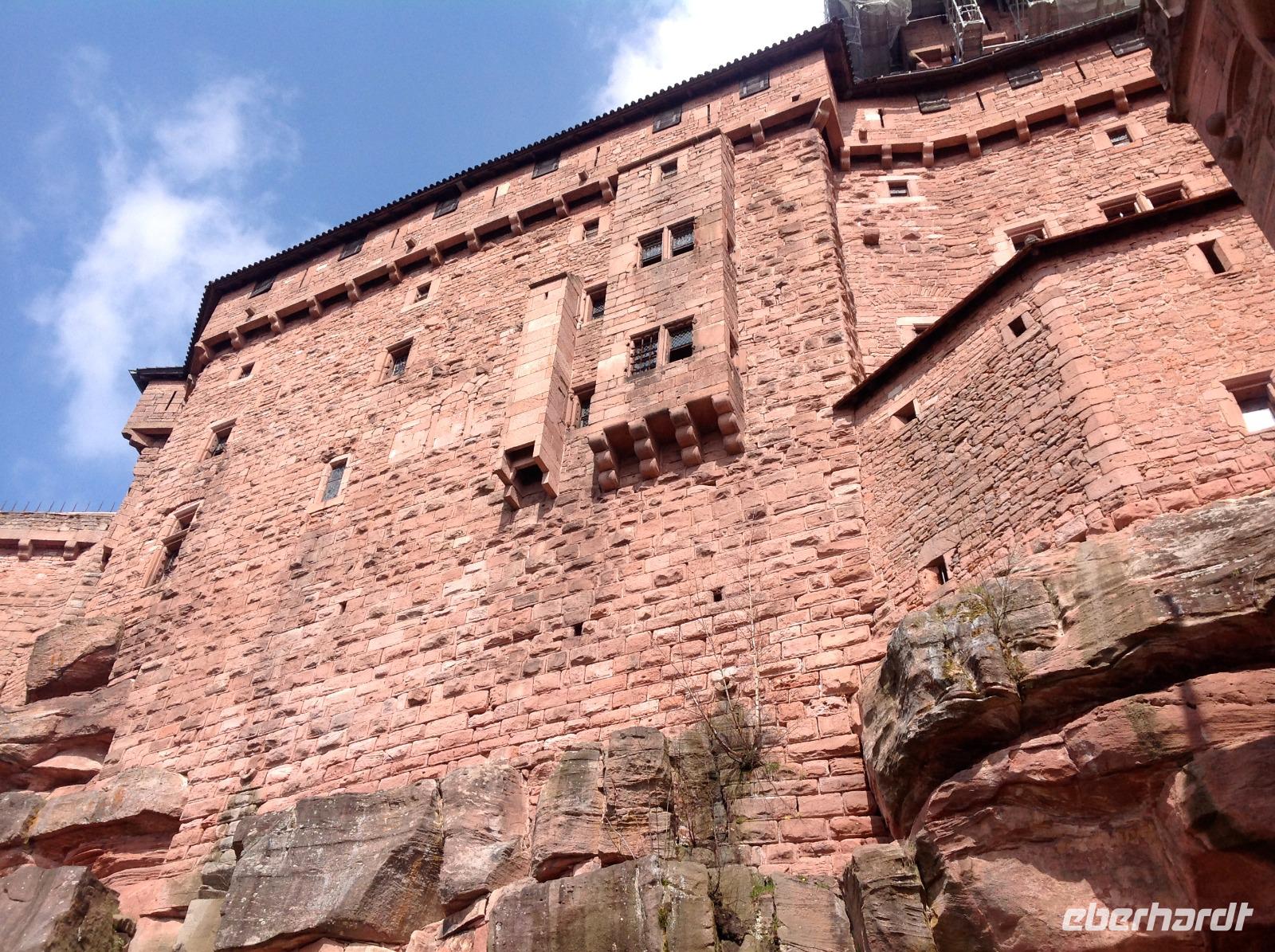 Zum Mittagessen und einem anschließenden Spaziergang wartet eine weitere Perle des Elsass auf uns: Colmar. Die Stadt ist ein Museum der Fachwerkbauten und auch eine Stadt bedeutender Künstler. Der Maler Martin Schongauer hat im Mittelalter hier einen Teil seiner Werke geschaffen und Frédéric-Auguste Bartholdy, der Schöpfer der Freiheitsstatue, eine Reihe verschiedener Statuen. Aber am bekanntesten ist der Isenheimer Altar von Matthias Grünewald, welcher seit weinigen Wochen im neu eröffneten und erweiterten Unterlindenmuseum ausgestellt ist. Die Schlange an der Kasse ist entsprechend lang - schließlich ist Pfingsten und viele Kunstinteressierte warten schon lange darauf, das berühmteste und vielleicht schönste Museum des Elsass wieder besichtigen zu können.Vorbei an den Weinbergen des Elsass und durch malerische Städtchen mit farbenfrohen Fachwerkhäusern gelangen wir zur größten Burg des Elsass, der Hoch-Königsburg. Sie war schon fast verfallen, als Kaiser Wilhelm II die Ruine von Schlettstadt als Geschenk erhielt. Der letzte Deutsche Kaiser ließ den Komplex wieder aufbauen, wobei er dem Berliner Architekten Bodo Ebhardt die Federführung übergab. Den Apéritif müssen wir leider unter Regenschirmen einnehmen, was jedoch niemanden stört, denn es sind die ersten und einzigen Tropfen auf der gesamten Reise.