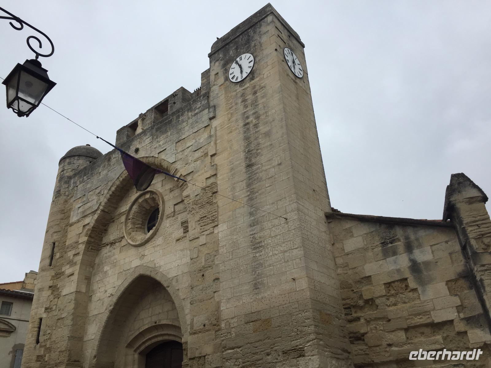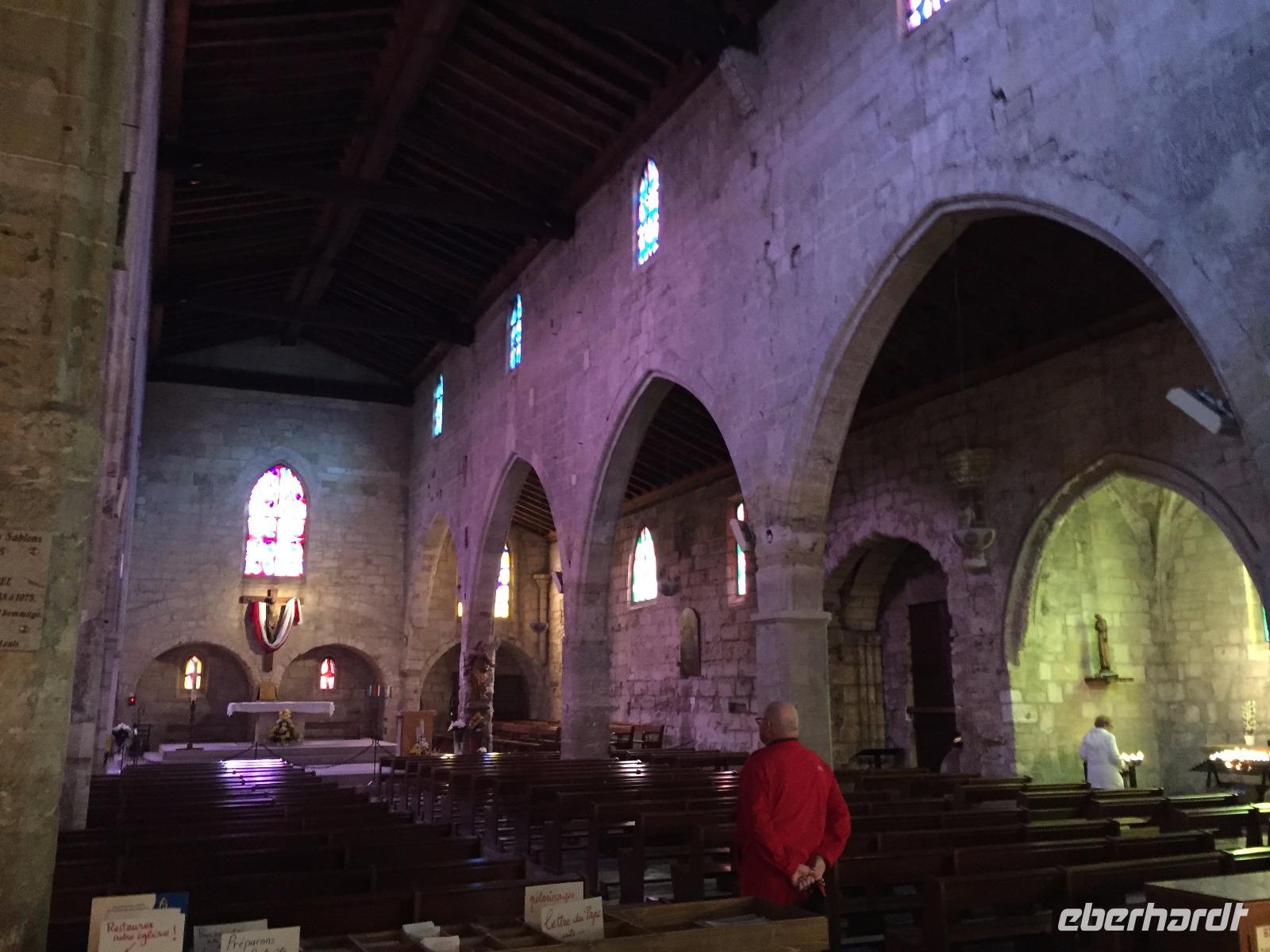 Von der 1006 geweihten Kirche der Festung ist nur noch das Hauptschiff im Stil der südfranzösischen Romanik erhalten. Der Chor und das Querschiff stammt aus der Gotik und seine Glasfenster aus dem 13. und 14. Jahrhundert gelten als die interessantesten Südfrankreichs. Bemerkenswerte Statuen, die uns an die der Kathedrale von Reims erinnern, schmücken den Chor.