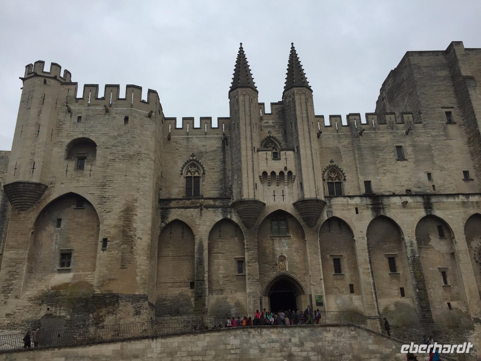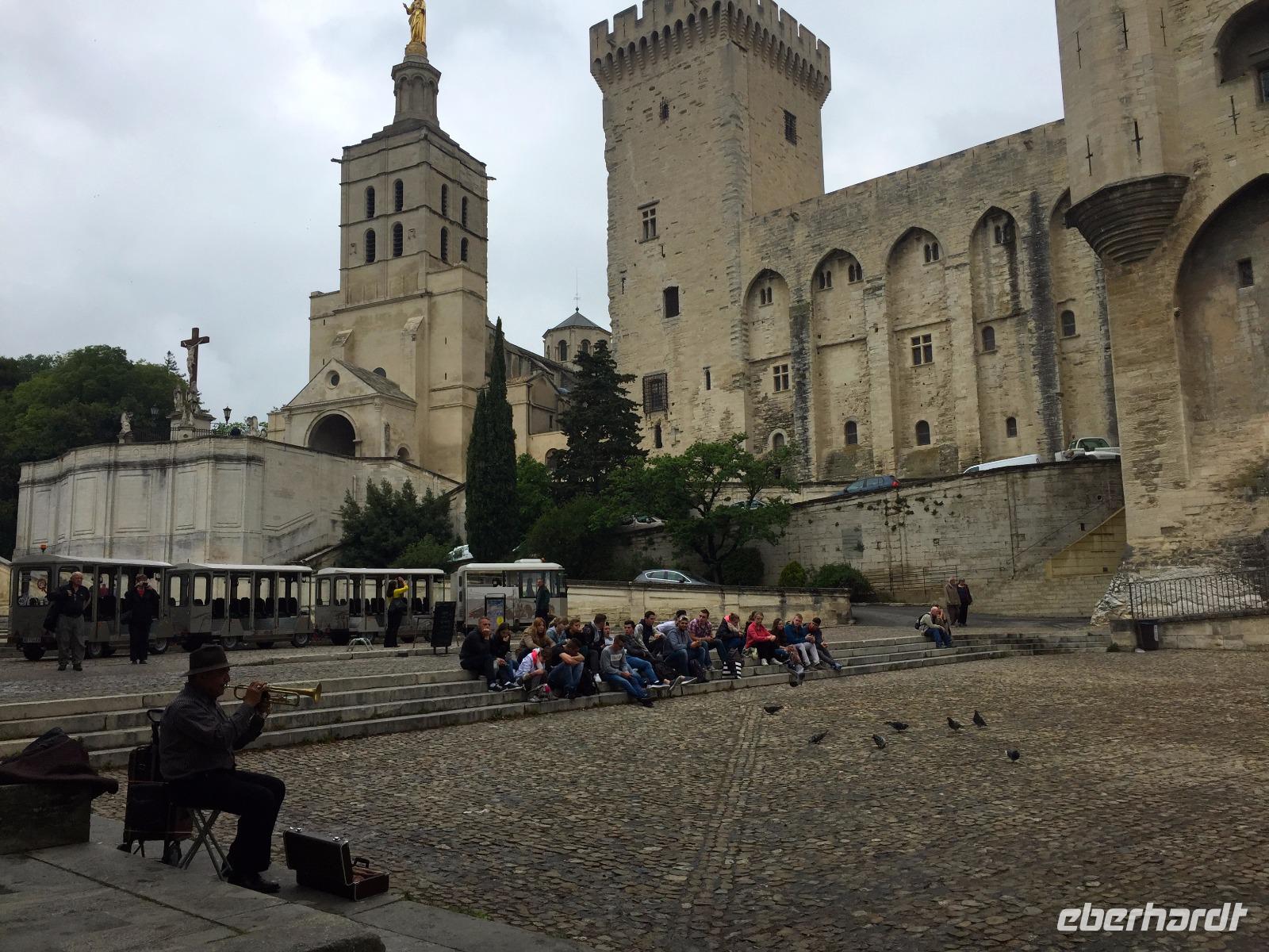 Beeindruckt von diesem Bauwerk erreichten wir Avignon. Im 14. Jahrhundert war die Stadt Mittelpunkt der Christenheit, neun Päpste residierten hier und brachten der Stadt einerseits unermesslichen Reichtum andererseits auch unerträgliches Leid. Während die Päpste im Überfluss im monumentalen Papstpalast residierten, litt das Volk unter Hunger, Pest und Plünderungen