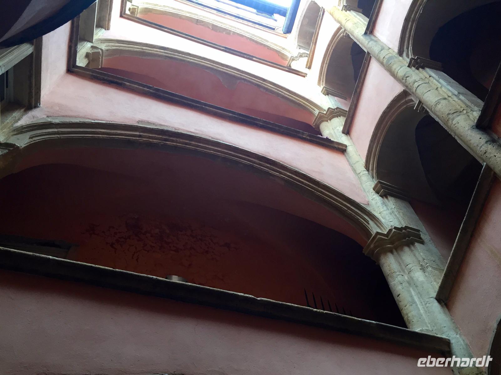 Am Entwurf des gigantischen neuen Schlosses war übrigens vermutlich auch Leonardo da Vinci beteiligt, vor allem die Treppe in Form einer Doppelhelix wird ihm zugeschrieben. Auf- und absteigende Personen können sich über das Treppenauge hinweg zwar sehen, begegnen sich aber nicht. Ein Kunstgriff, welcher damals eine absolute Neuheit darstellte. Der erfolgreichste aller französischen Könige erlebte aber offensichtlich auch deprimierte Stunden: In seinem Schlafgemach findet sich die von Ihm eingeritzte Notiz: „Gar oft schwanken die Launen der Frau, ein Narr ist, wer ihr traut."Abends erreichen wir unser Hotel in Tours, wo wir beim Stadtspaziergang am nächsten Tag auf eine Mischung von bürgerlichem Wohlstand, intelligenter Restaurierung und munterer Studentenszene treffen. Die Sankt-Martins-Basilika wurde am Ende des 19. Jahrhunderts über dem Grab des Heiligen Martin von Tours errichtet - seine Reliquien sind in der Krypta zu sehen. Da ihn Gänse mit ihrem Geschnatter verrieten, als er sich der Wahl zum Bischof entziehen wollte, serviert man am 11.November, dem Sankt-Martins-Tag, traditionellerweise Gänsebraten. (Wie gut, dass es nicht etwa Hunde oder Katzen waren, die seine Anhänger auf sein Versteck aufmerksam machten!). An der quirligen Place Plumereau im stimmungsvollen, mittelalterlichen Kern der Stadt bestaunen wir die Fachwerkhäuser, welche ihre Restaurierung André Malraux in seiner Funktion als Kulturminister und seiner zukunftsweisenden Idee von Denkmalschutz verdanken.