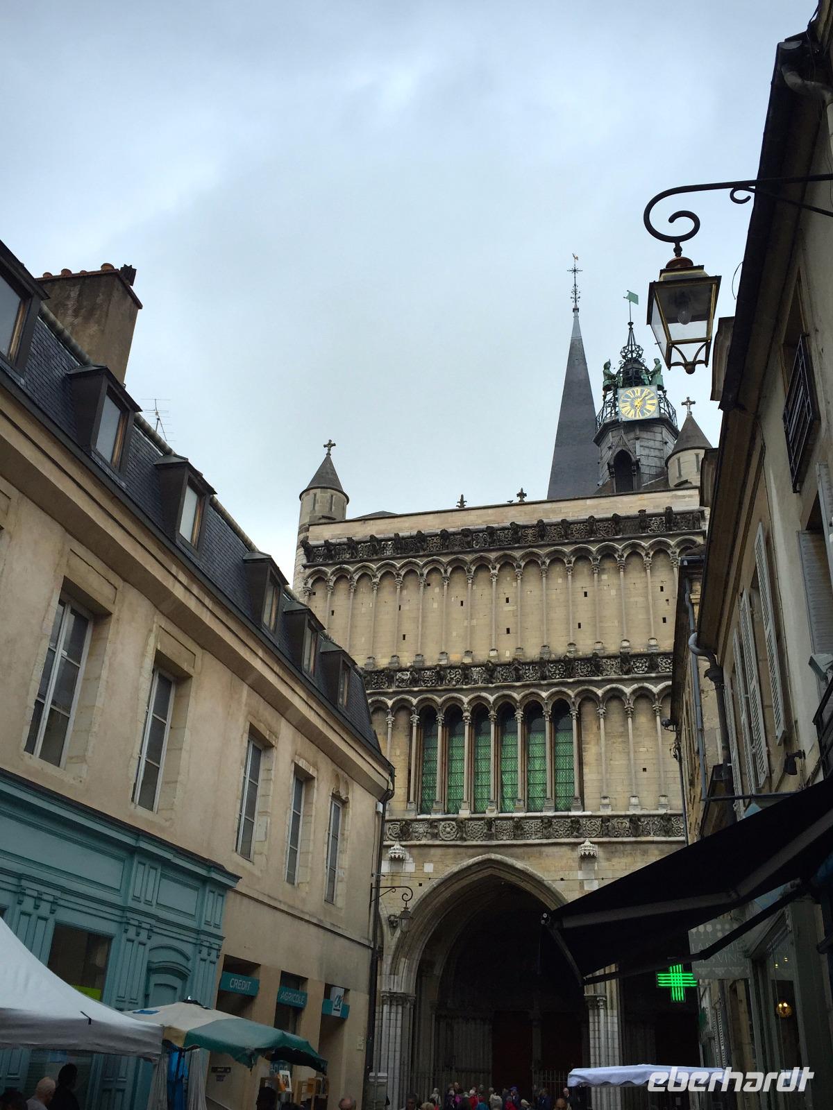 In der 2000 Jahre alten Hauptstadt des Burgund haben wir mit Nicole eine Stadtführerin, die sich von ganzem Herzen ihrer Aufgabe widmet. Bereits früh konnte sich die Stadt zum wichtigen Verkehrsknotenpunkt zwischen Nordeuropa und dem Mittelmeerraum entwickeln und ist bis heute eine reiche, elegante Stadt, deren prachtvolle Vergangenheit uns in ihren Bann zieht. Herzogspalast, Kirchen, Kathedrale und zahlreiche Museen laden besonders Kunstfreunde zum Verweilen ein. Im Jahr 2008 wurde die Stadt als „Ville d'art et d'histoire" ausgezeichnet. Aber auch die leiblichen Genüsse spielen in Dijon eine große Rolle: Die Markthallen mit ihrem eindrucksvollen Angebot sind Beweis dafür! Senf aus Dijon und der Johannisbeerlikör Cassis sind weit über die Grenzen Frankreichs berühmt.