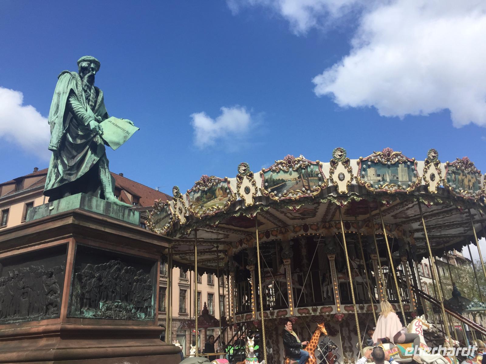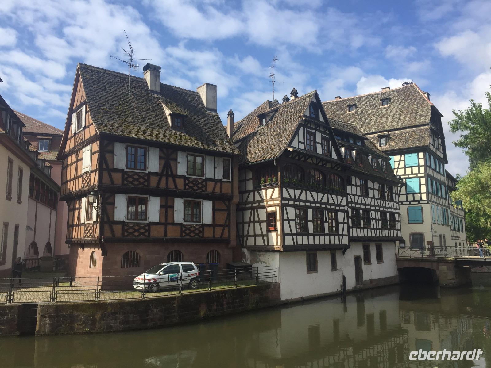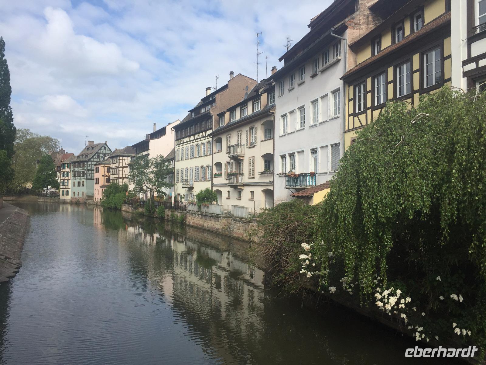 Der kulturelle und wirtschaftliche Mittelpunkt des Elsass empfängt uns bei wunderschönem Wetter mit einem Marathonlauf - welcher uns einige Improvisation abverlangt, da viele Straßen heute für den Verkehr gesperrt sind.