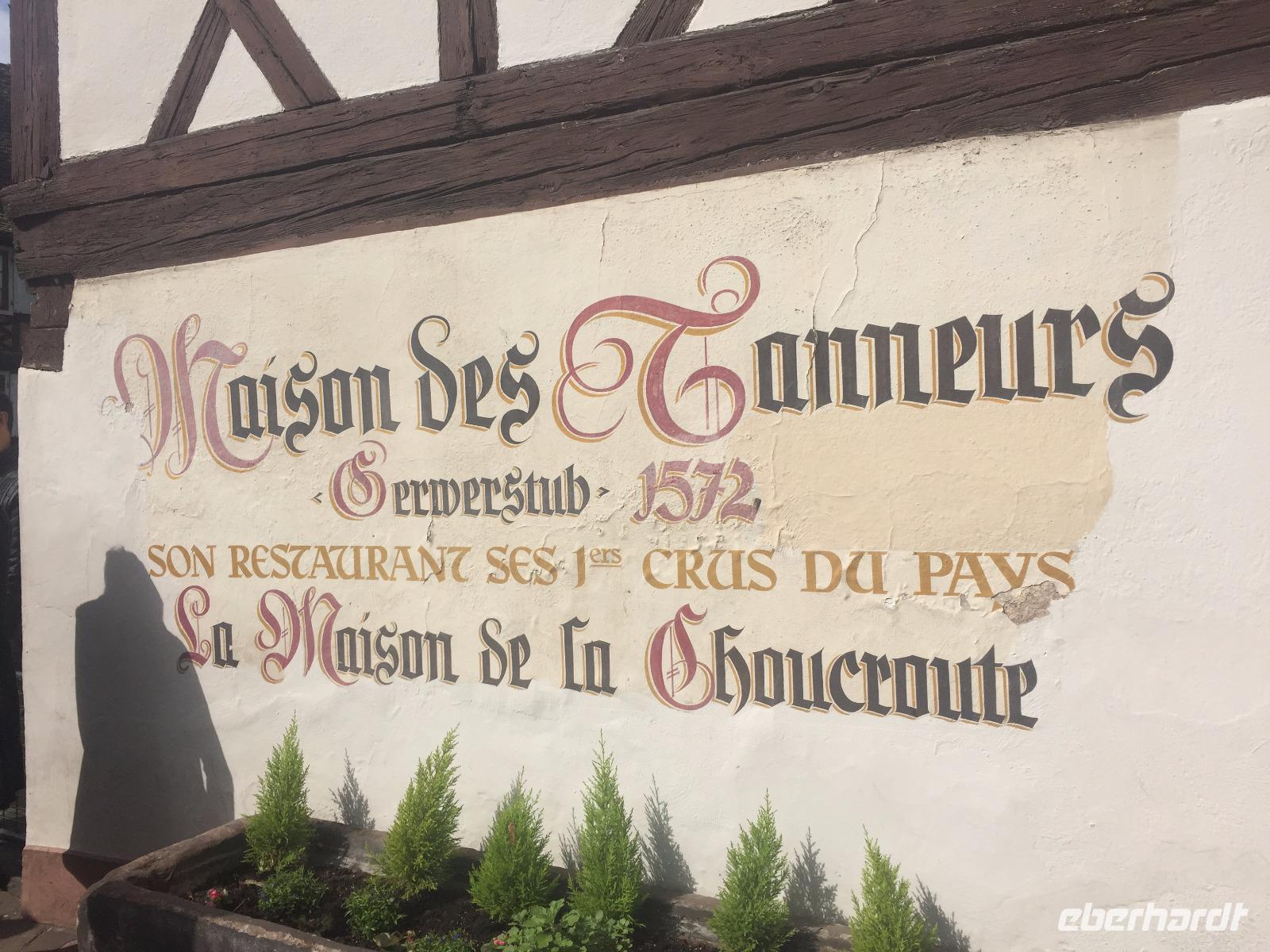 Das beschauliche Städtchen Kinzheim ist das Abschlussziel der Reise. Noch einmal gibt es eine elsässische Spezialität: "Flammekueche" - ein sehr dünn ausgerollter Brotteig, bestrichen mit Crème Fraîche und belegt mit Speck und Zwiebeln, aber auch mit kräftigem "Munster" - Münsterkäse. Im Holzofen gebacken erhält die Spezialität erst den richtigen Geschmack! Zum Dessert gibt es ebenfalls Flammkuchen - mit Äpfeln und Calvados flambiert - köstlich! Mit einem Glas Edelzwicker beschließen wir unsere sehr schöne und umfangreiche Reise durch unser Nachbarland.